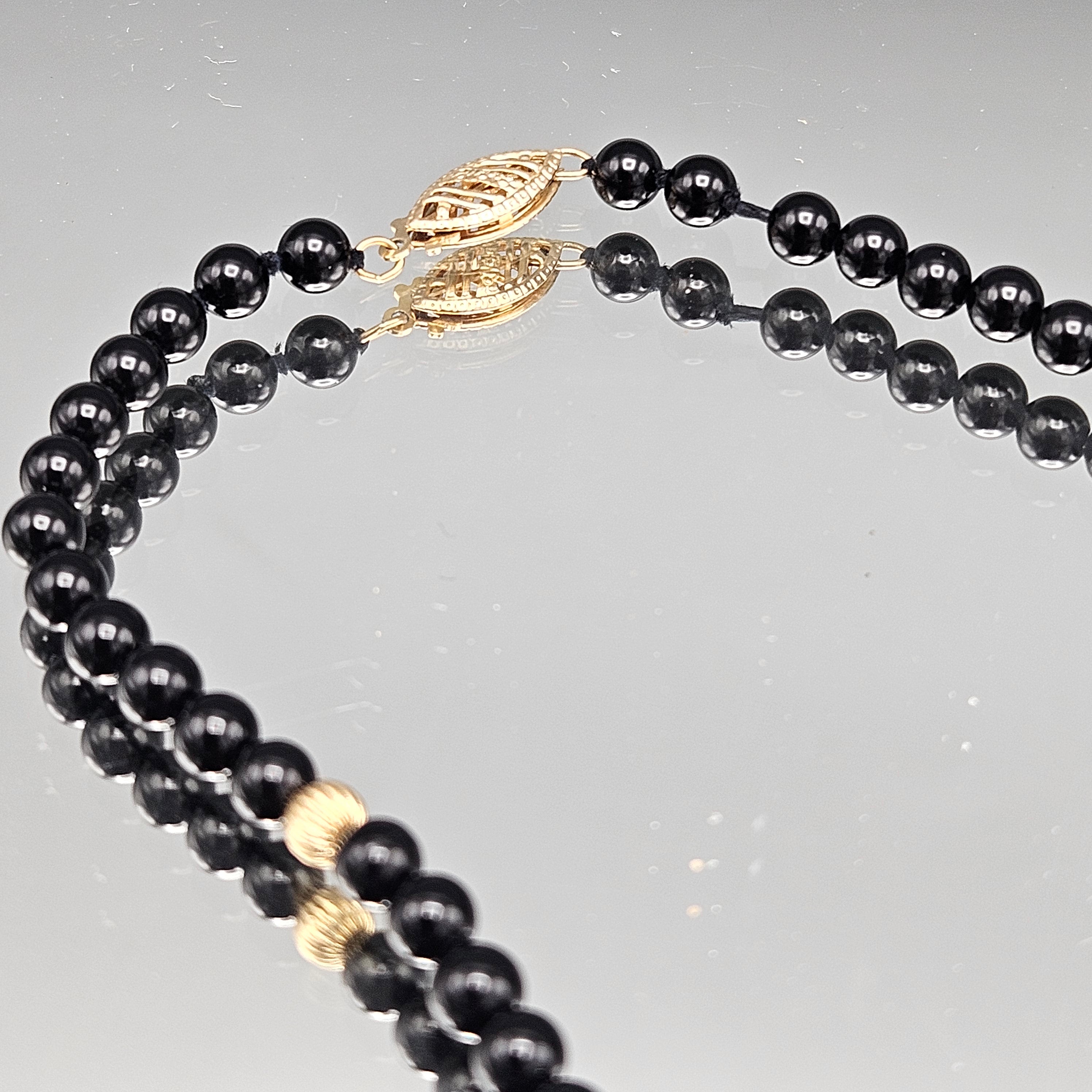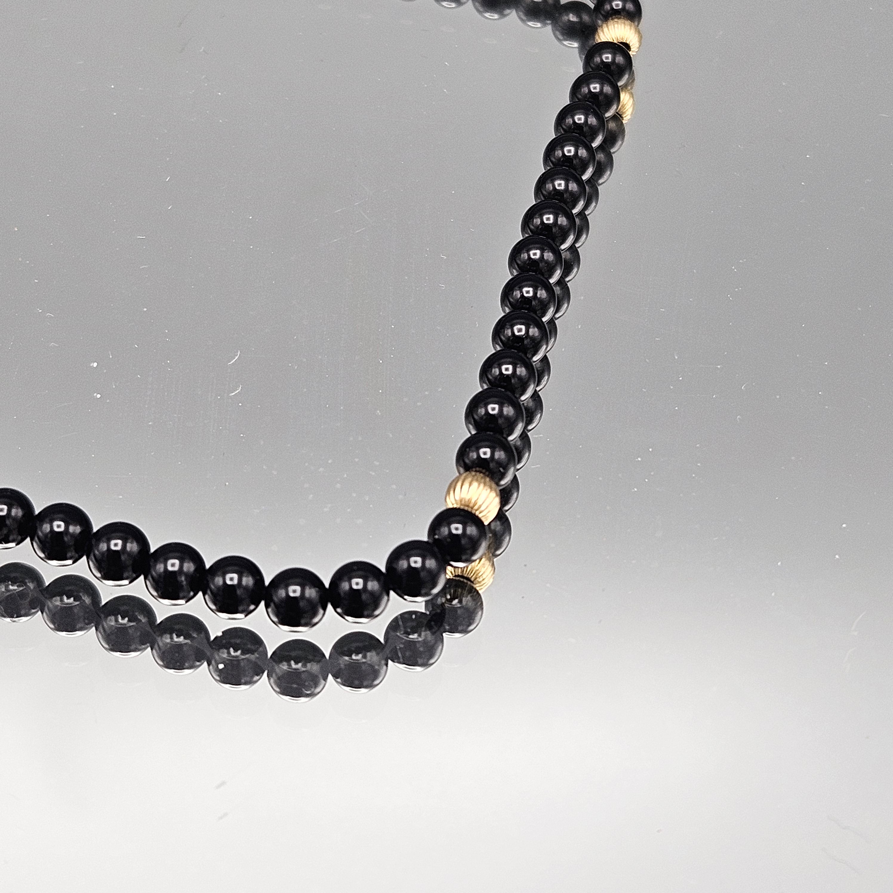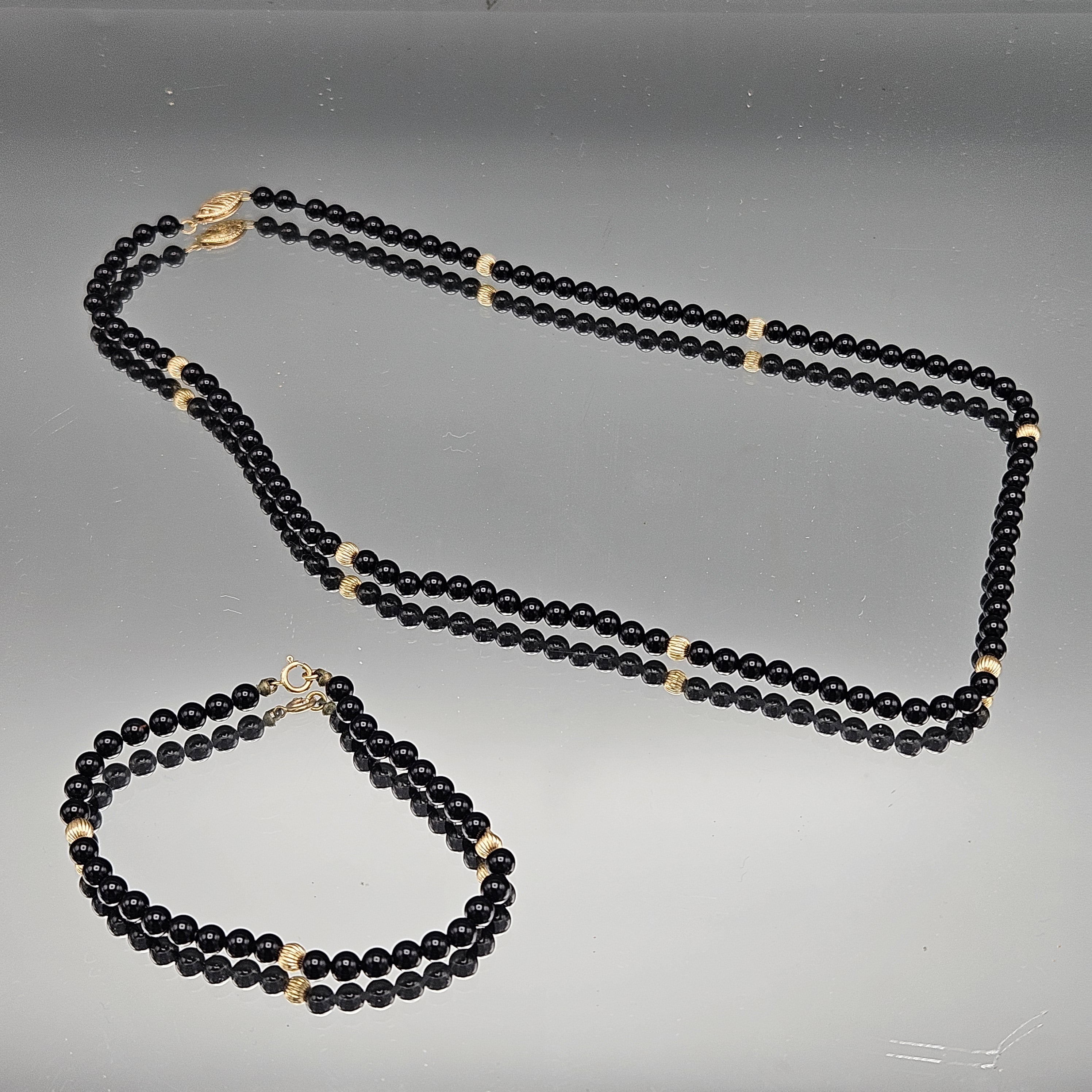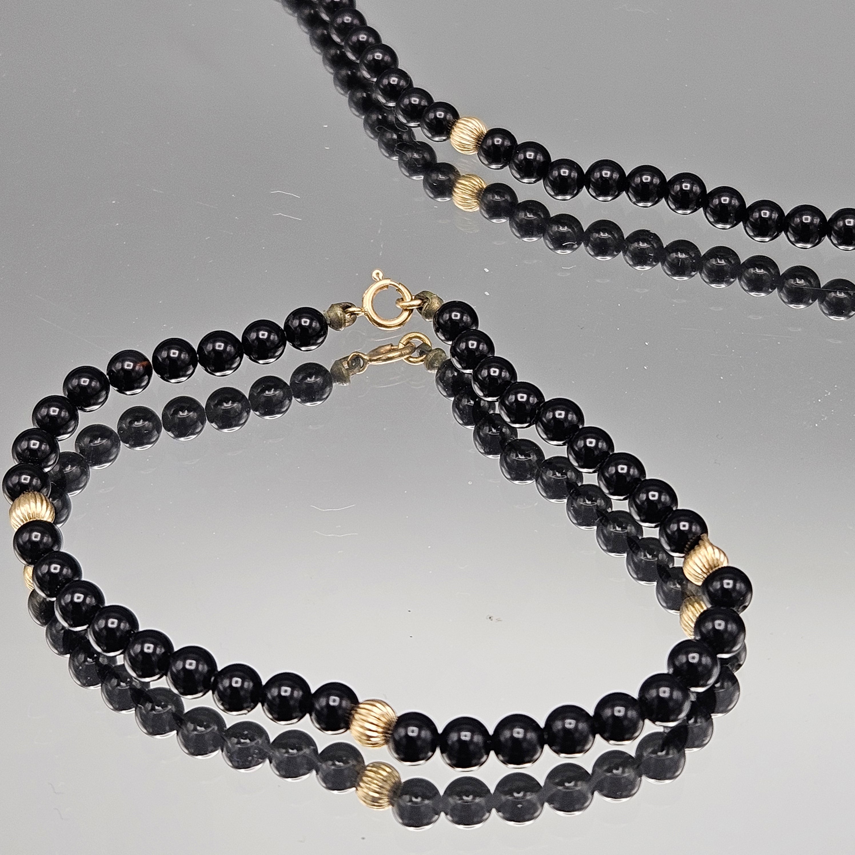Polished Black Onyx Necklace & Bracelet Set with 14K Clasp