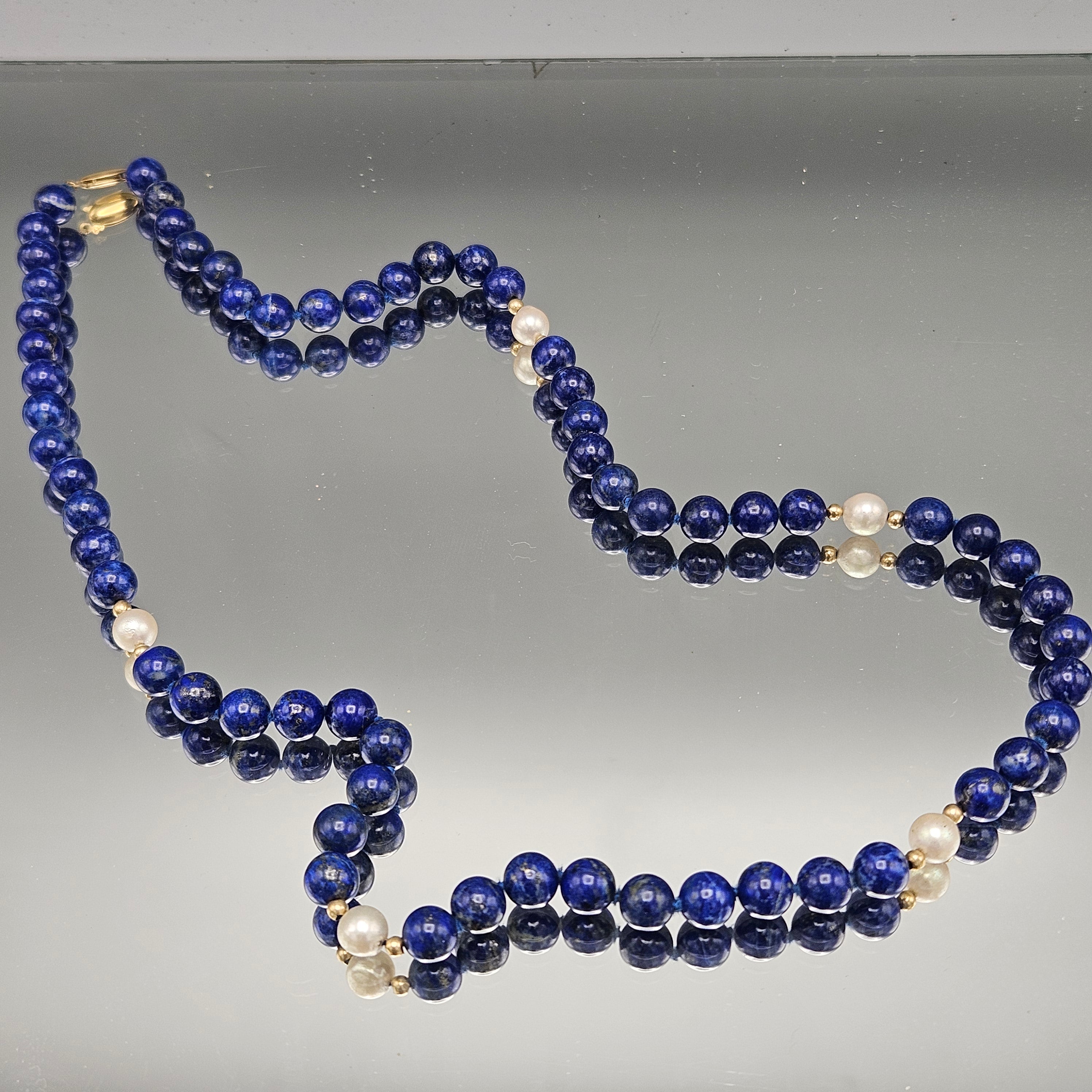Polished Lapis Lazuli Necklace with 14K Gold Clasp