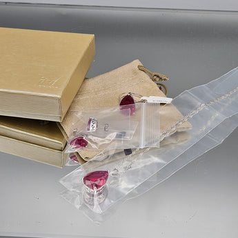 Sterling Silver Necklace, Earrings & Size 8 Pink Stone Jewelry Set