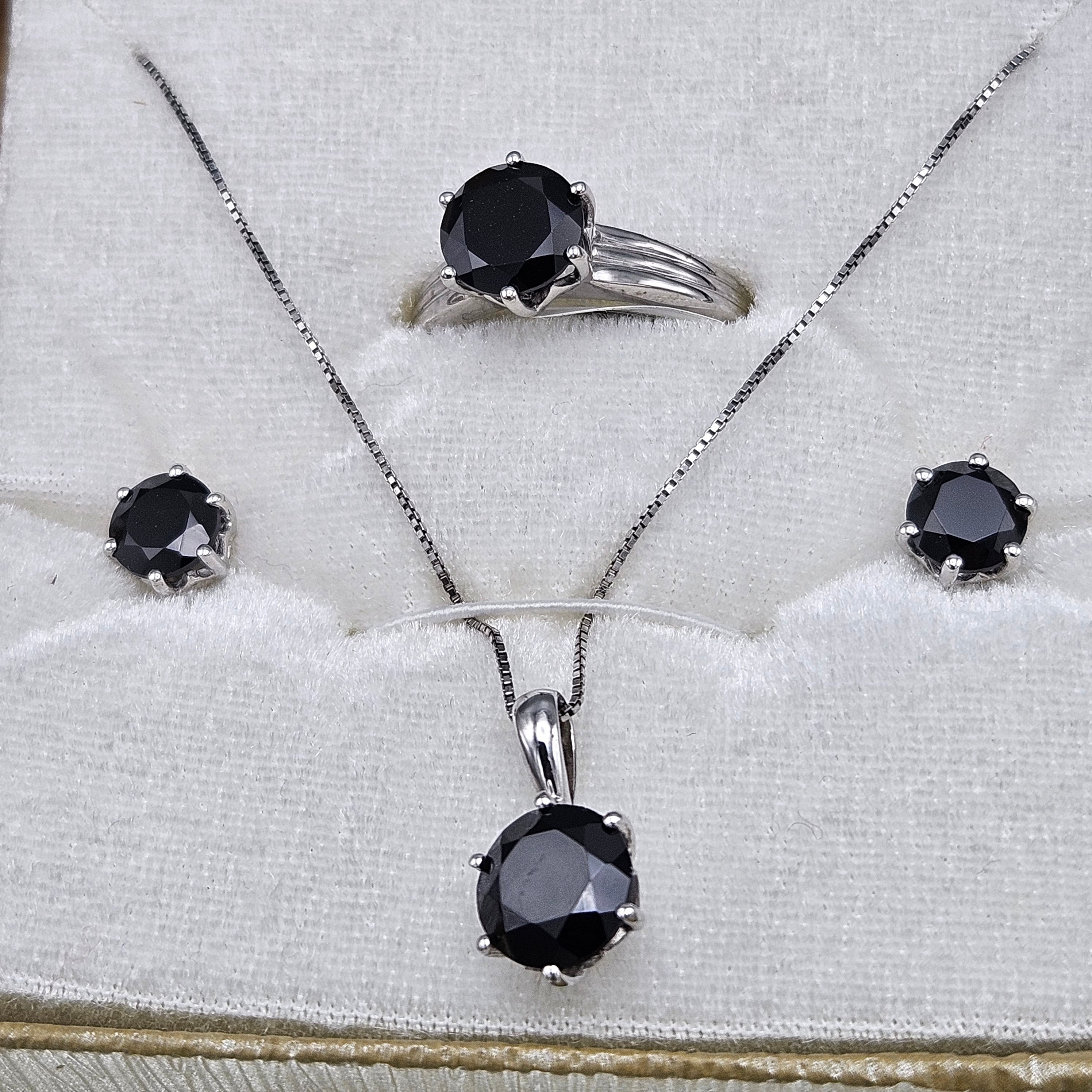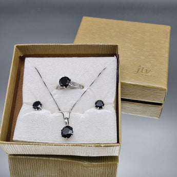 Sterling Silver Necklace, Earrings & Size 9 Black Stone Jewelry Set