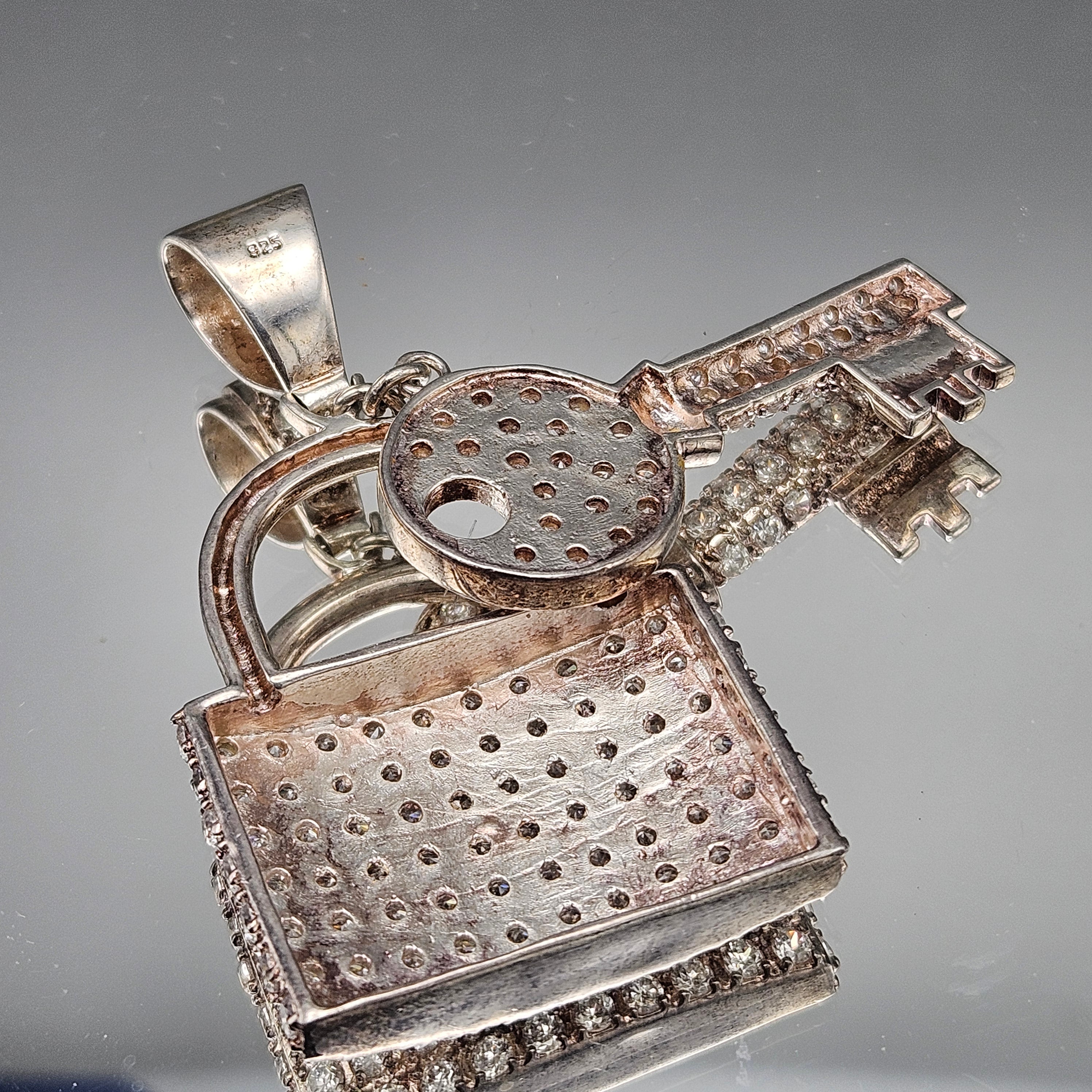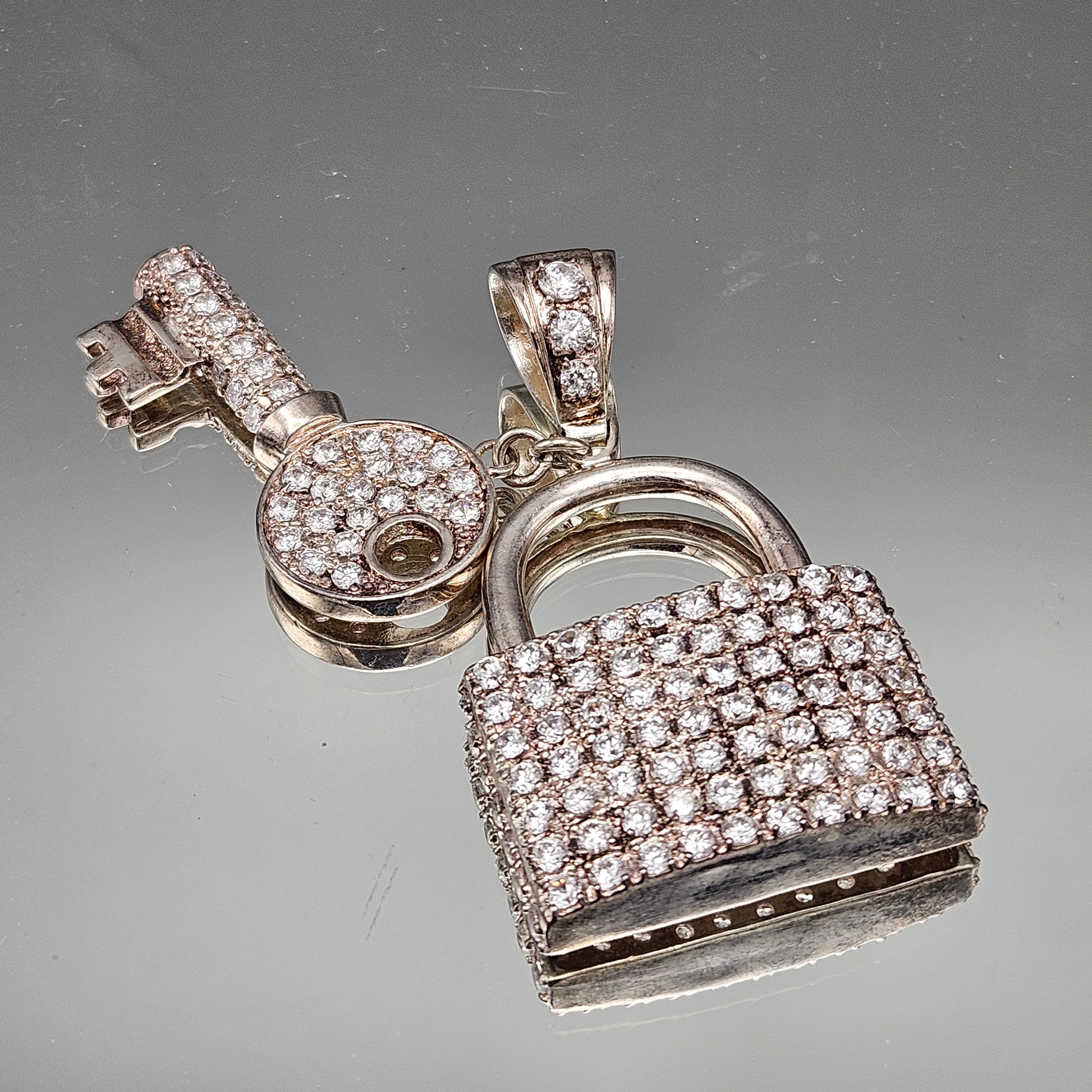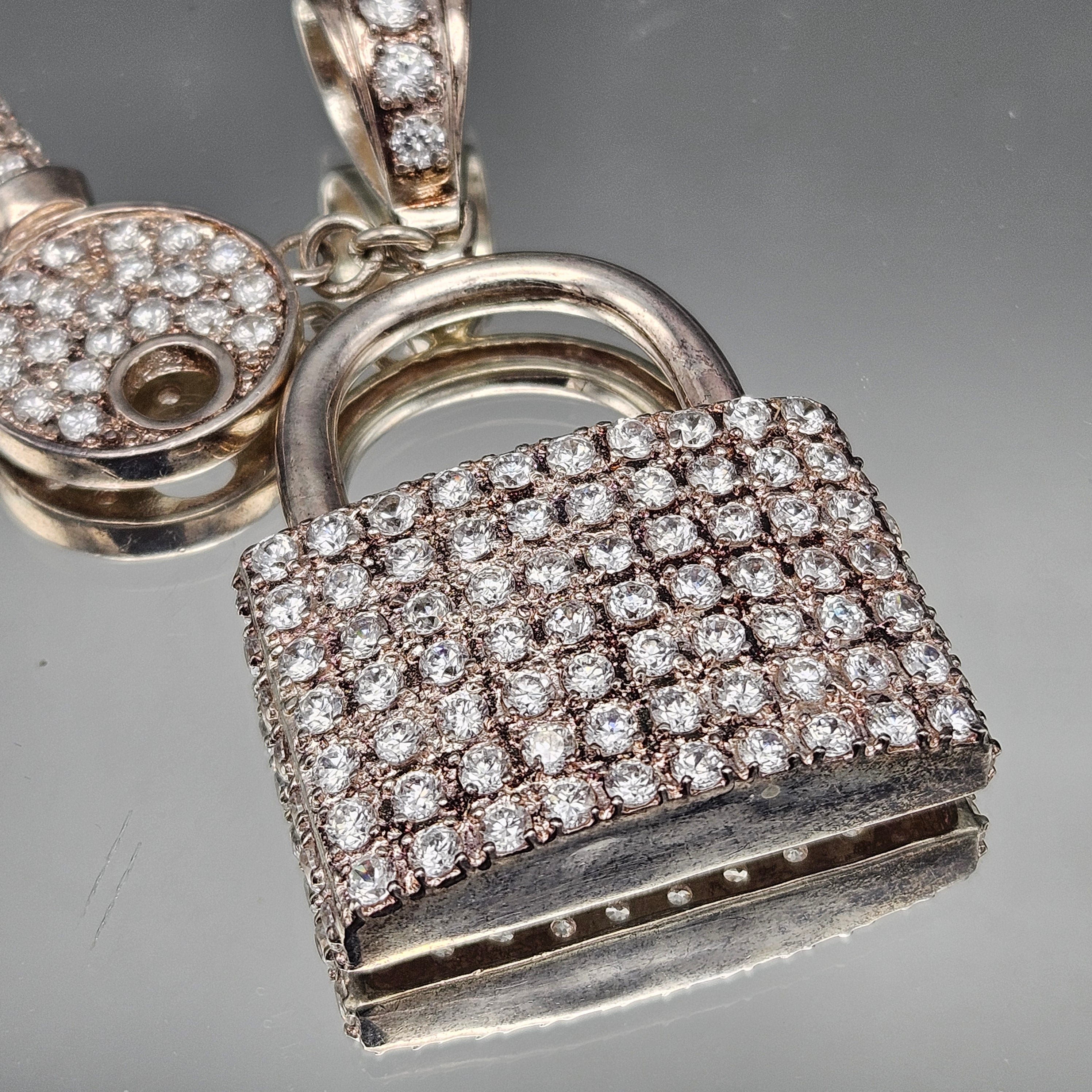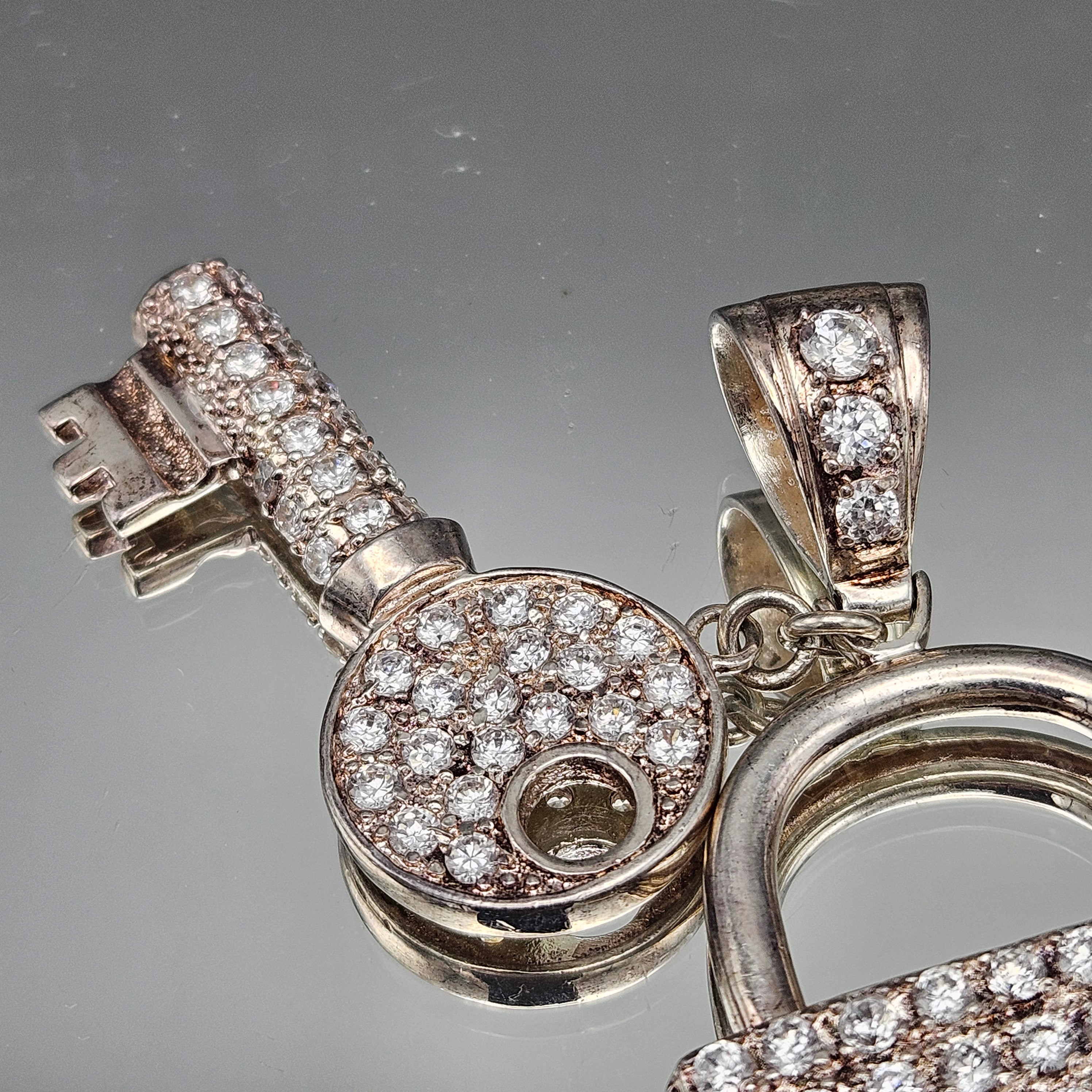Sterling Silver Sparkling Lock & Key Crystal Necklace Pendant