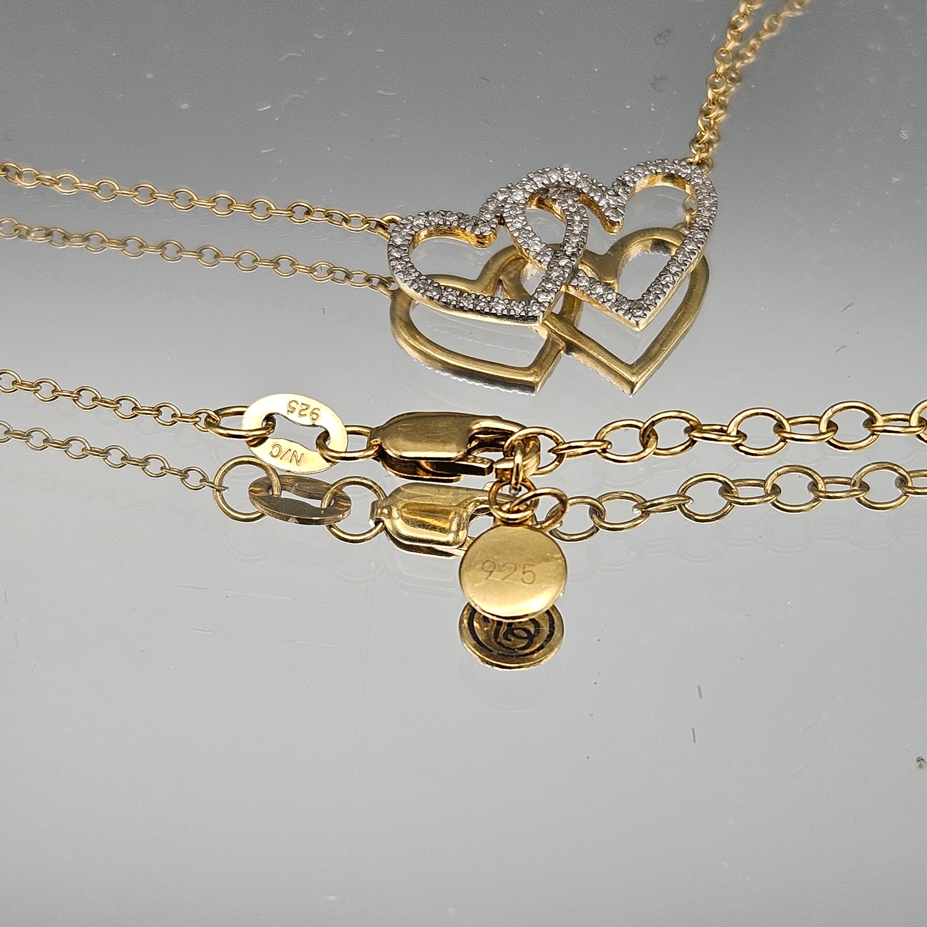 Vermeil Sterling Silver Necklace with Crystal Double Heart Pendant