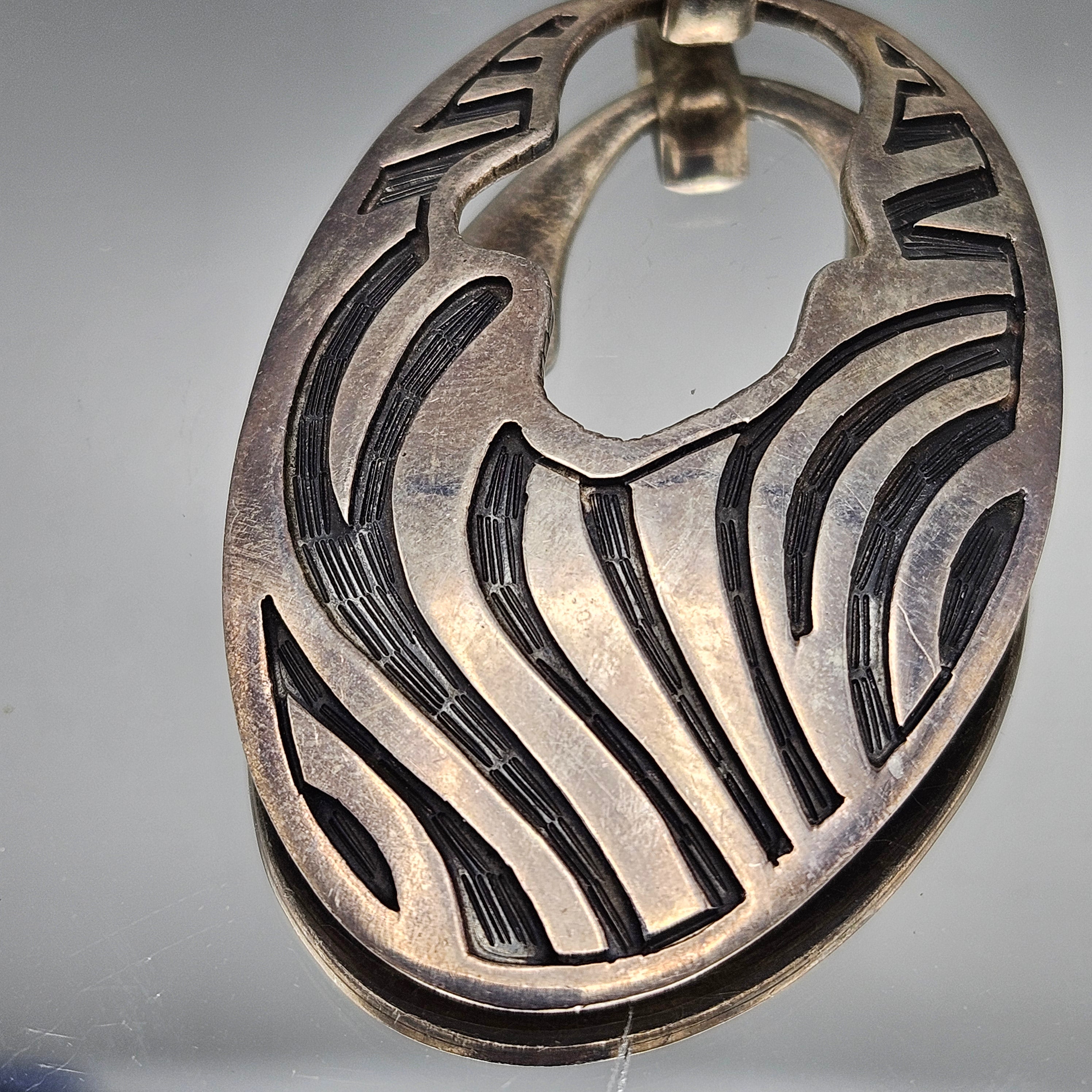 Vintage JRI Sterling Silver Oval Pendant with Stripes