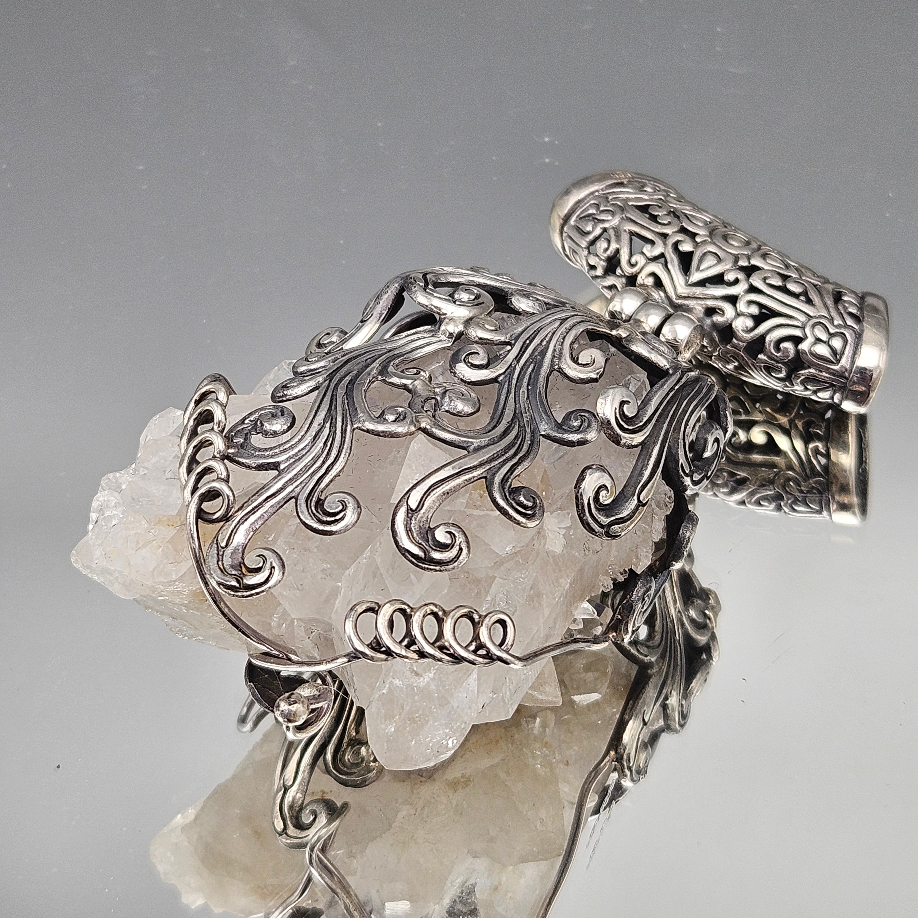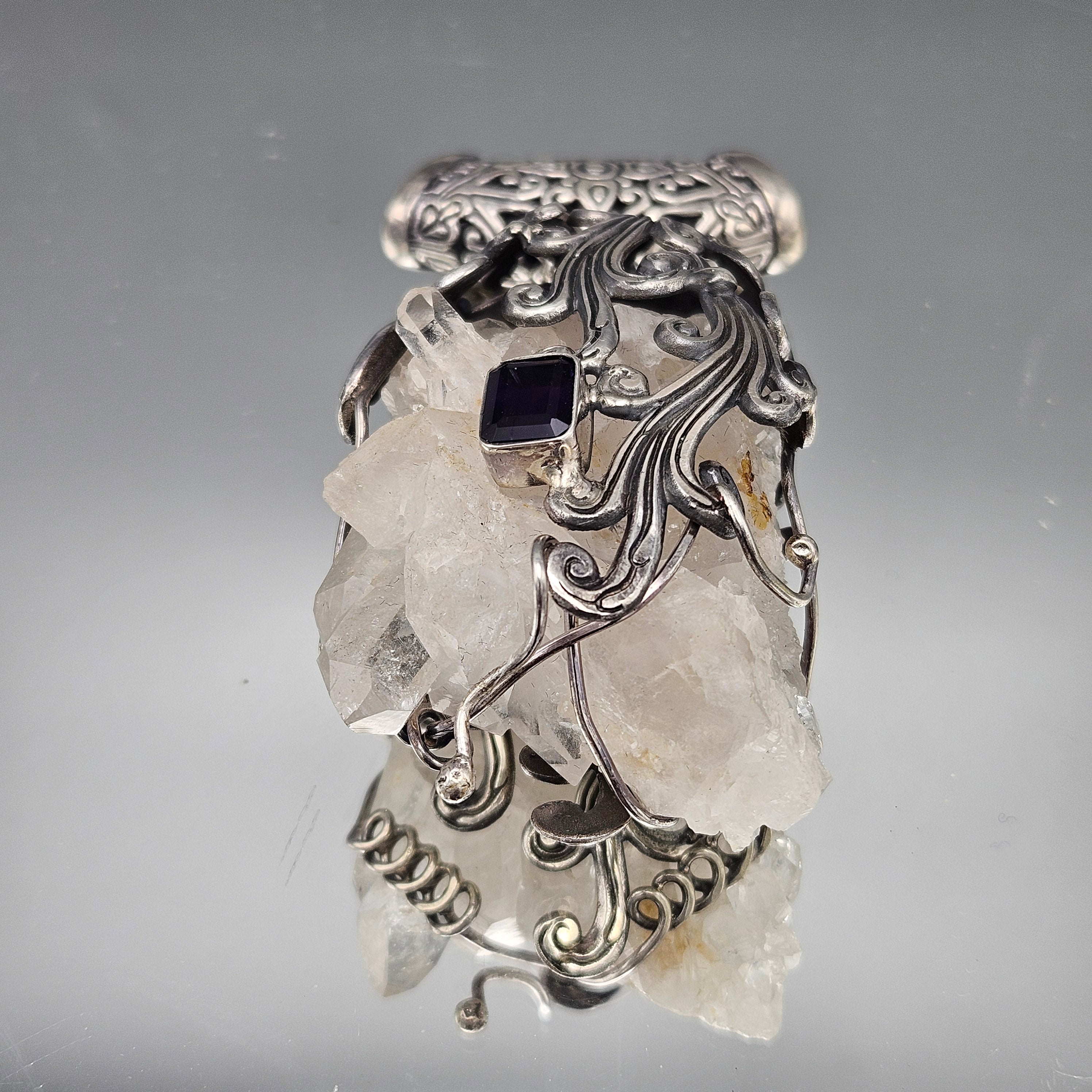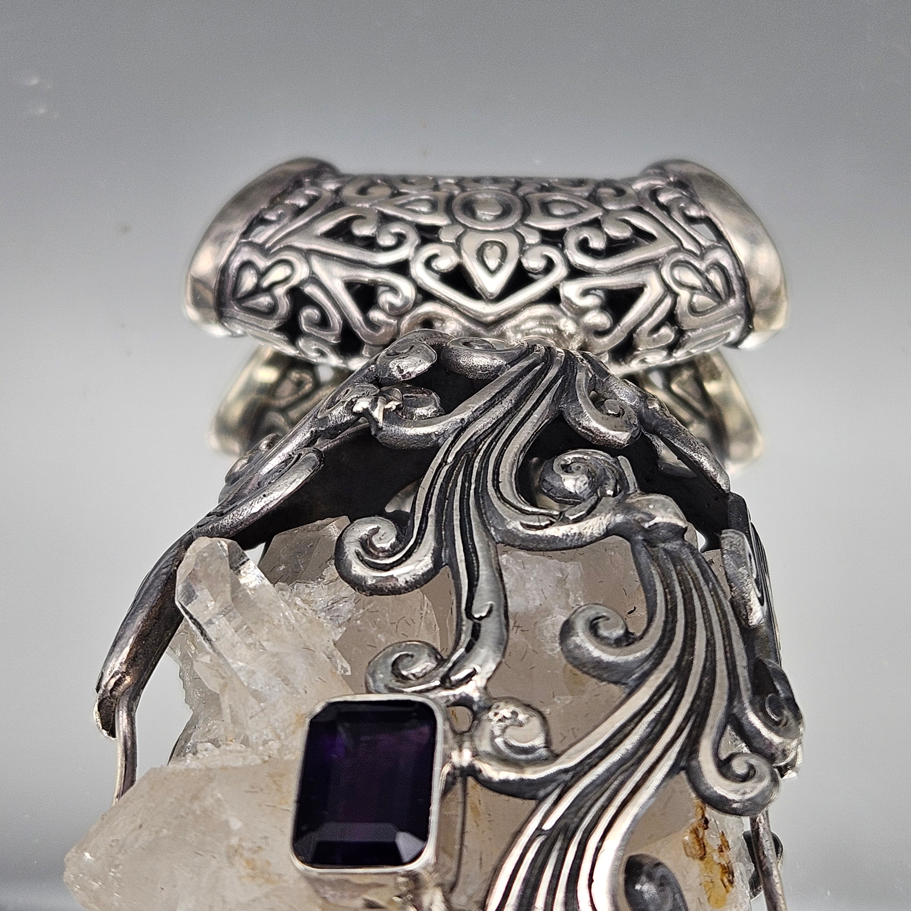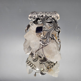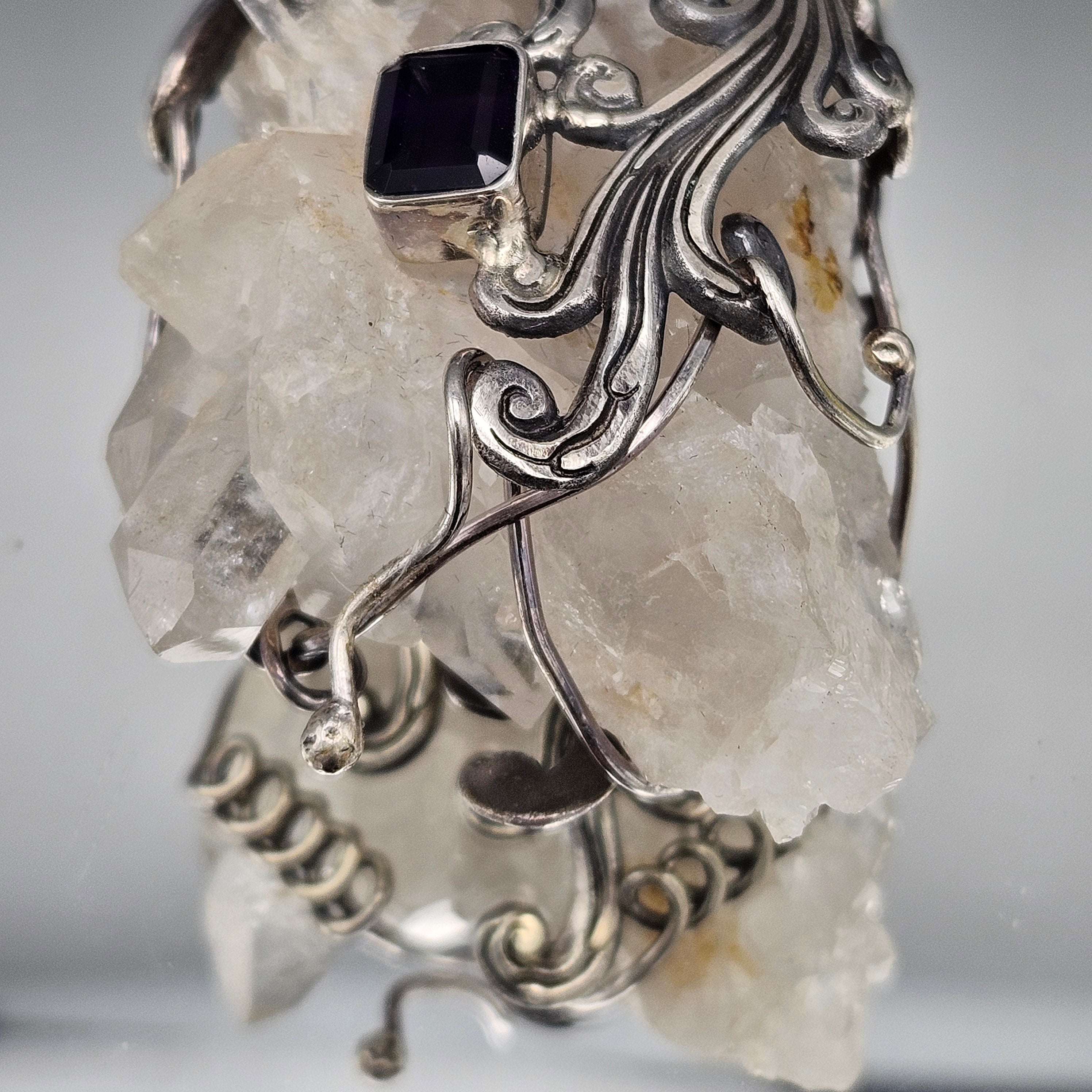 Vintage Large Quartz Necklace Pendant with Silver & Onyx Surround