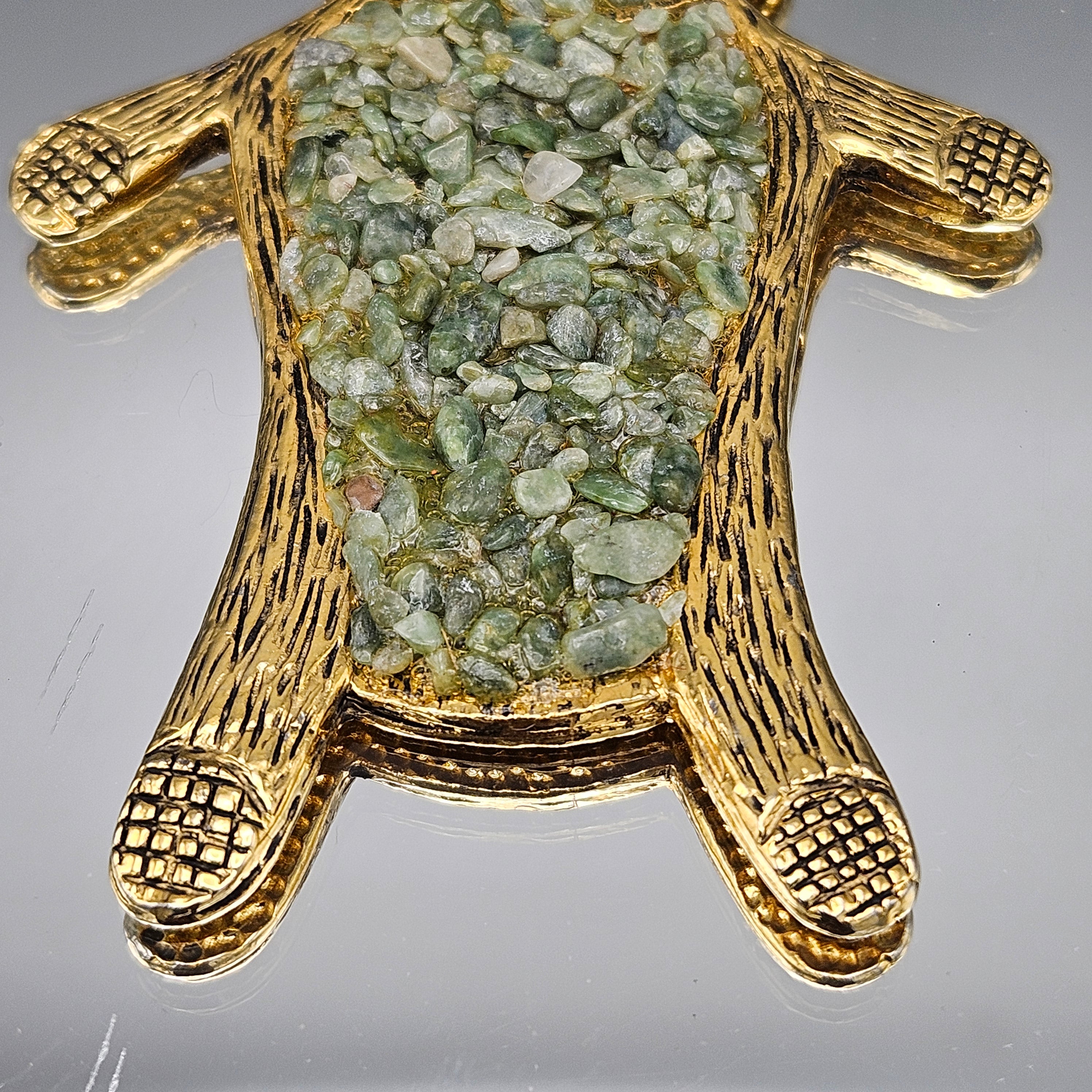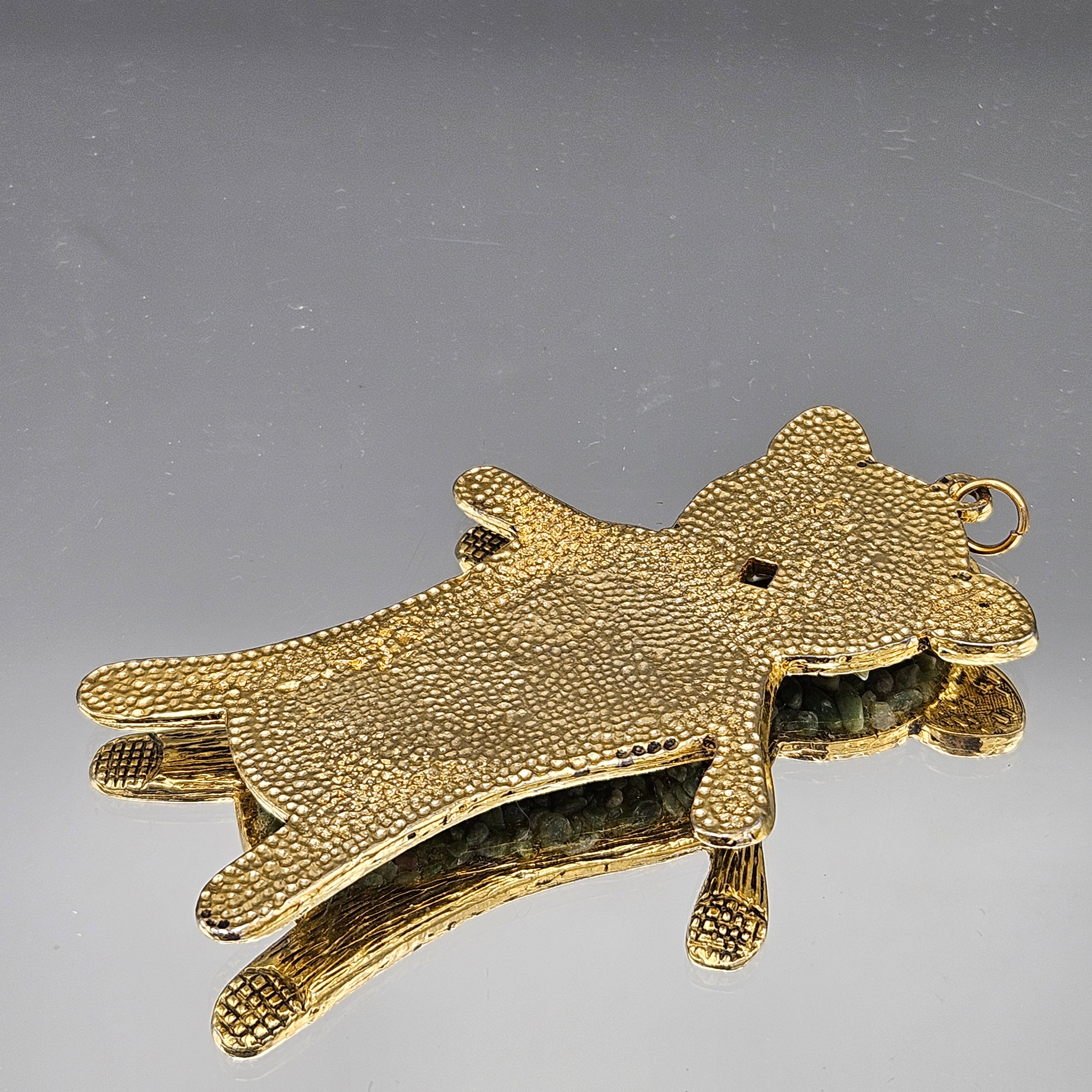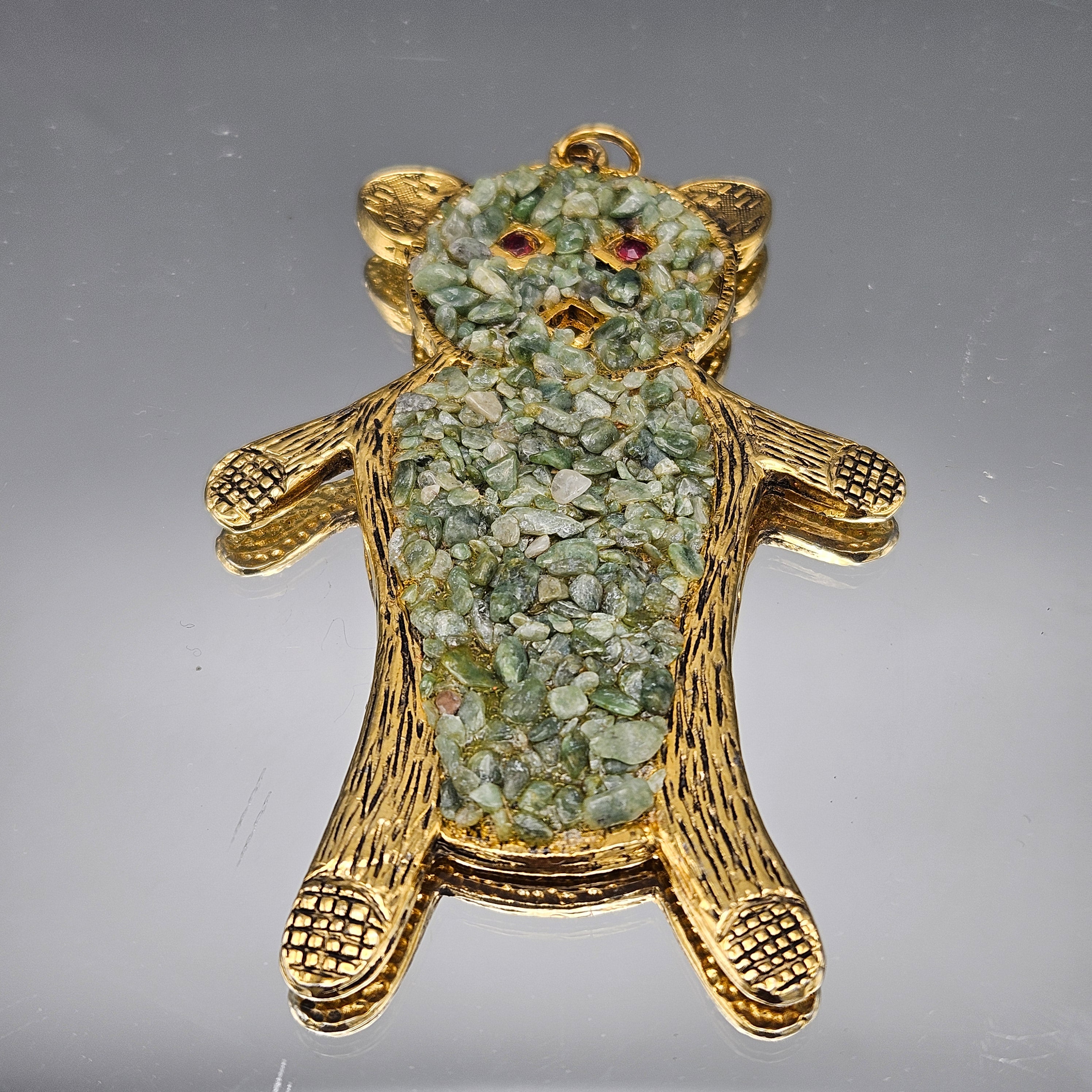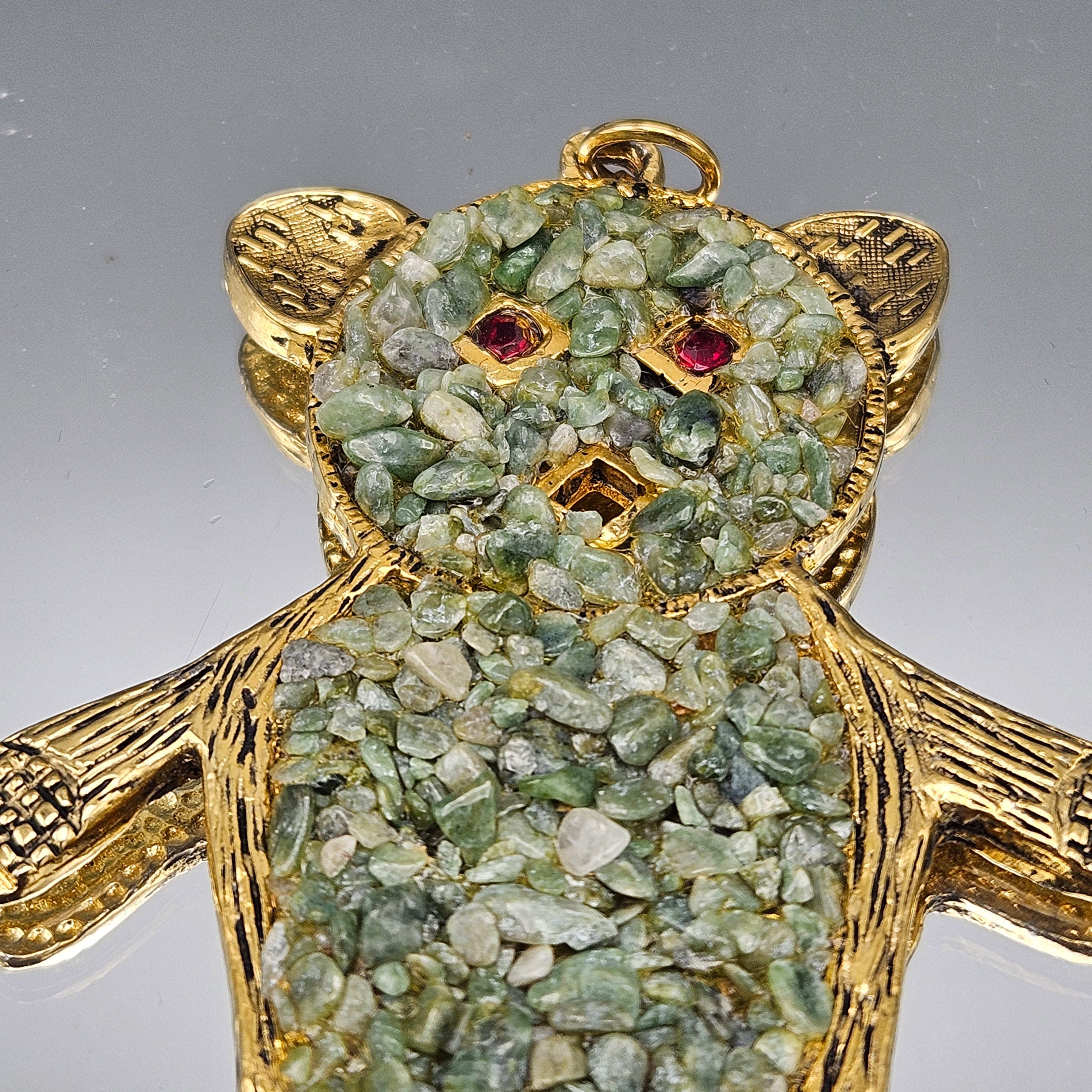 Vintage Large Teddy Bear Pendant with Green Stone Mosaic