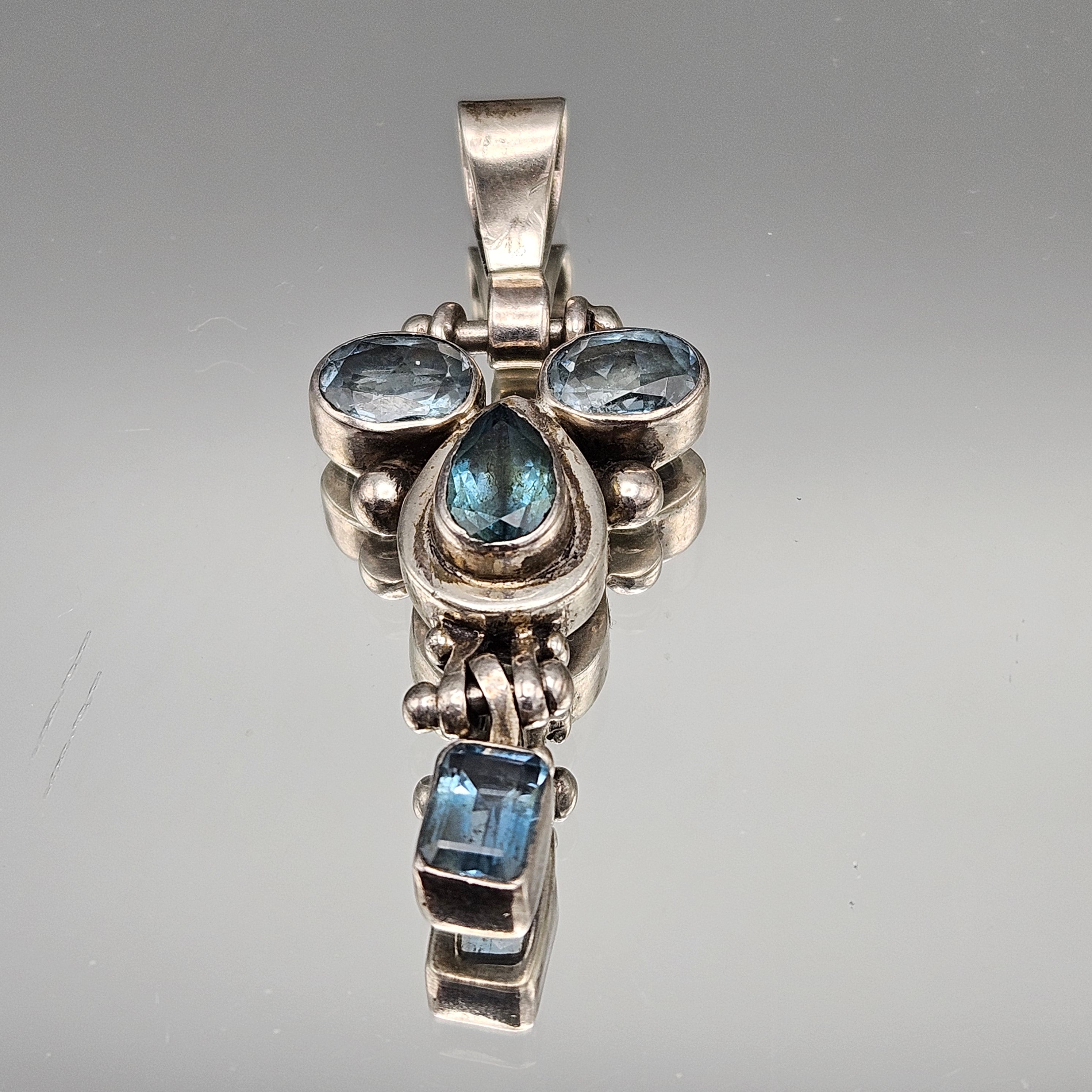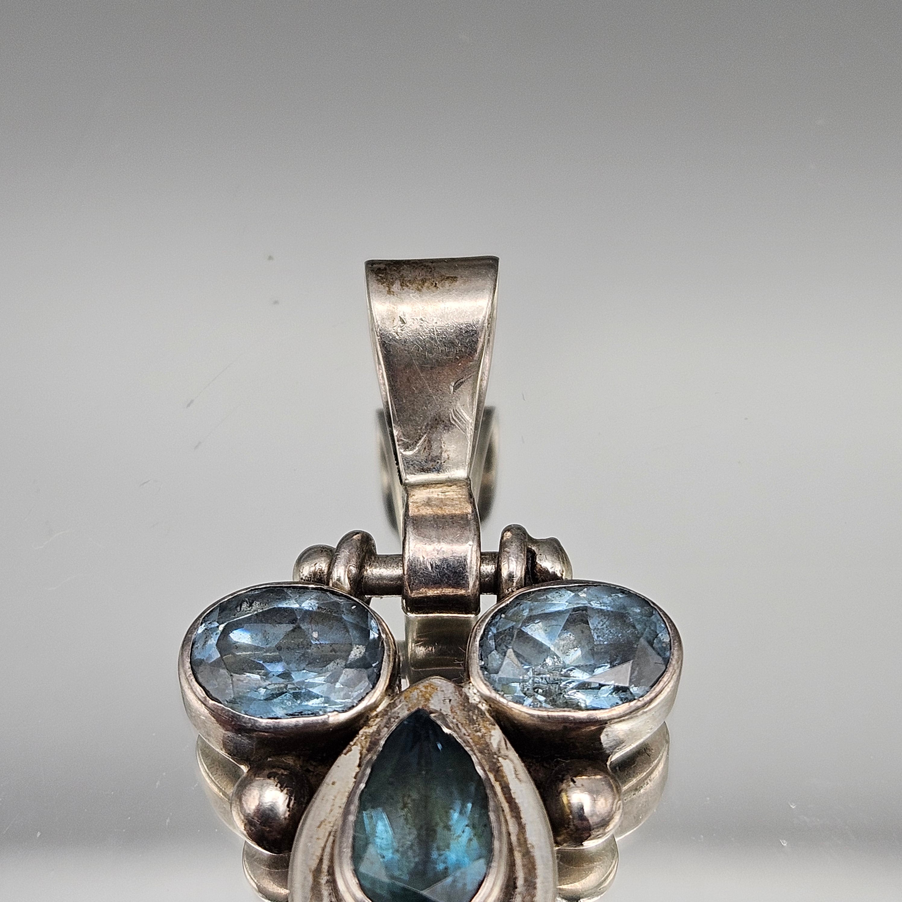 Vintage Sterling Silver Blue Topaz Necklace Pendant