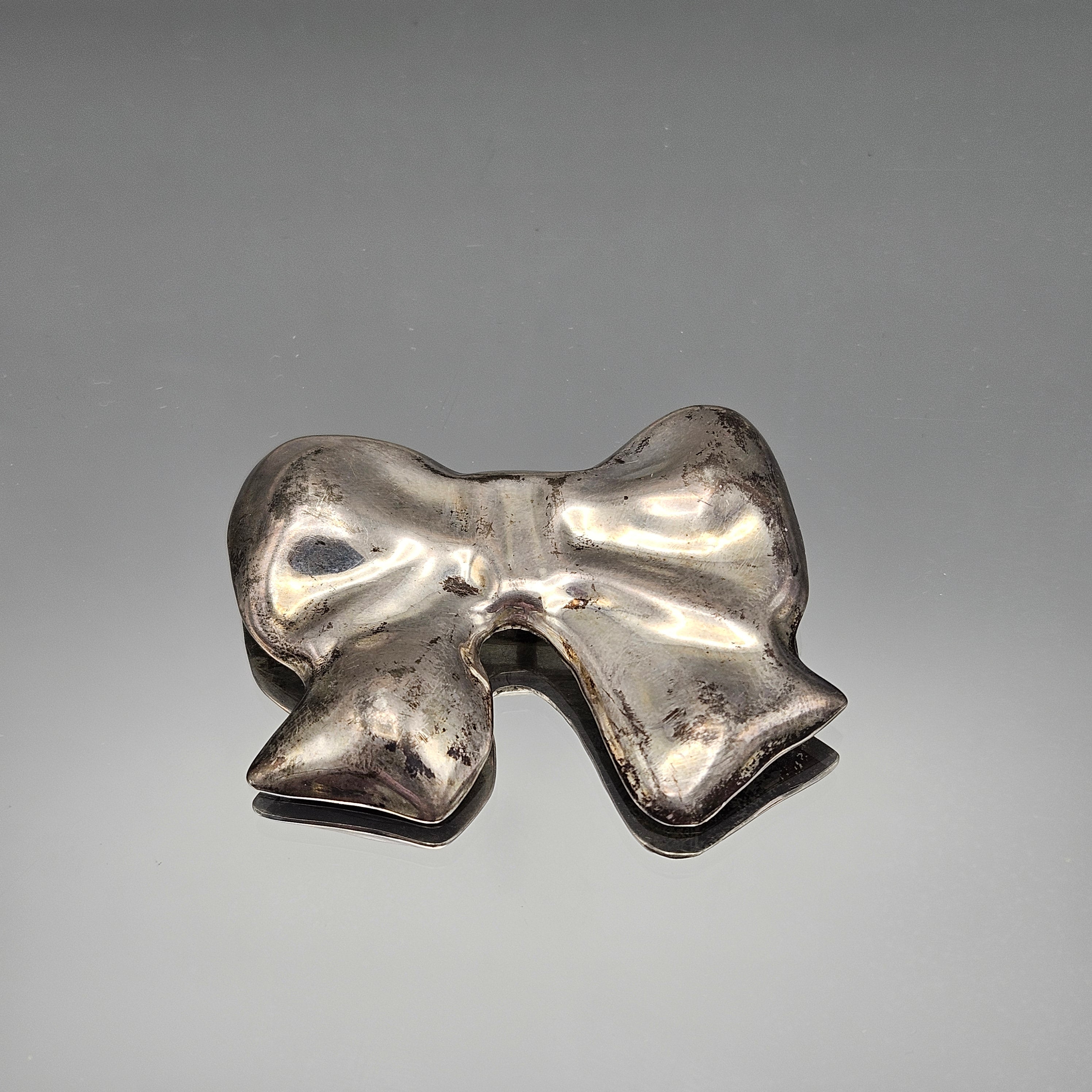 Vintage Sterling Silver Ribbon Bow Brooch & Pendant
