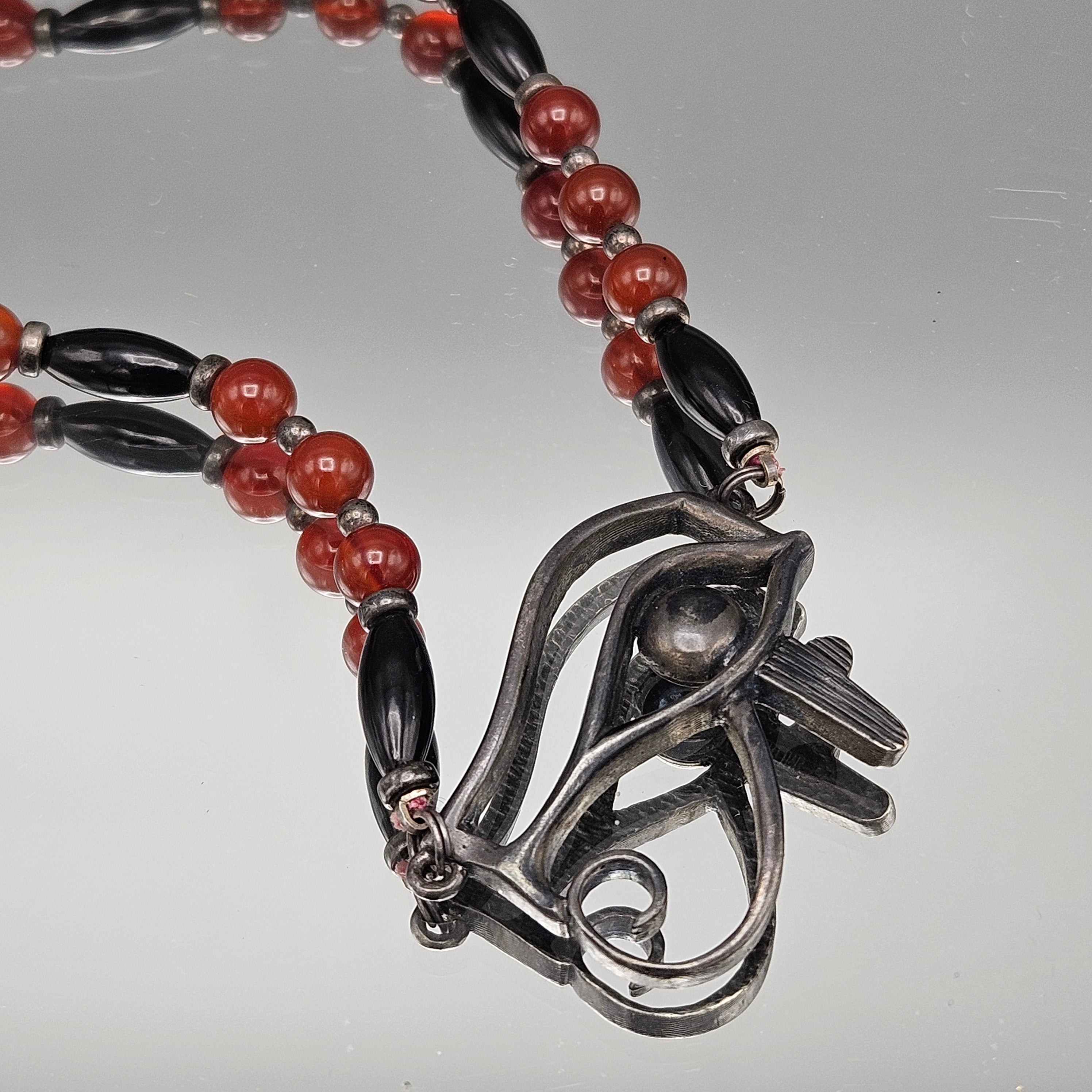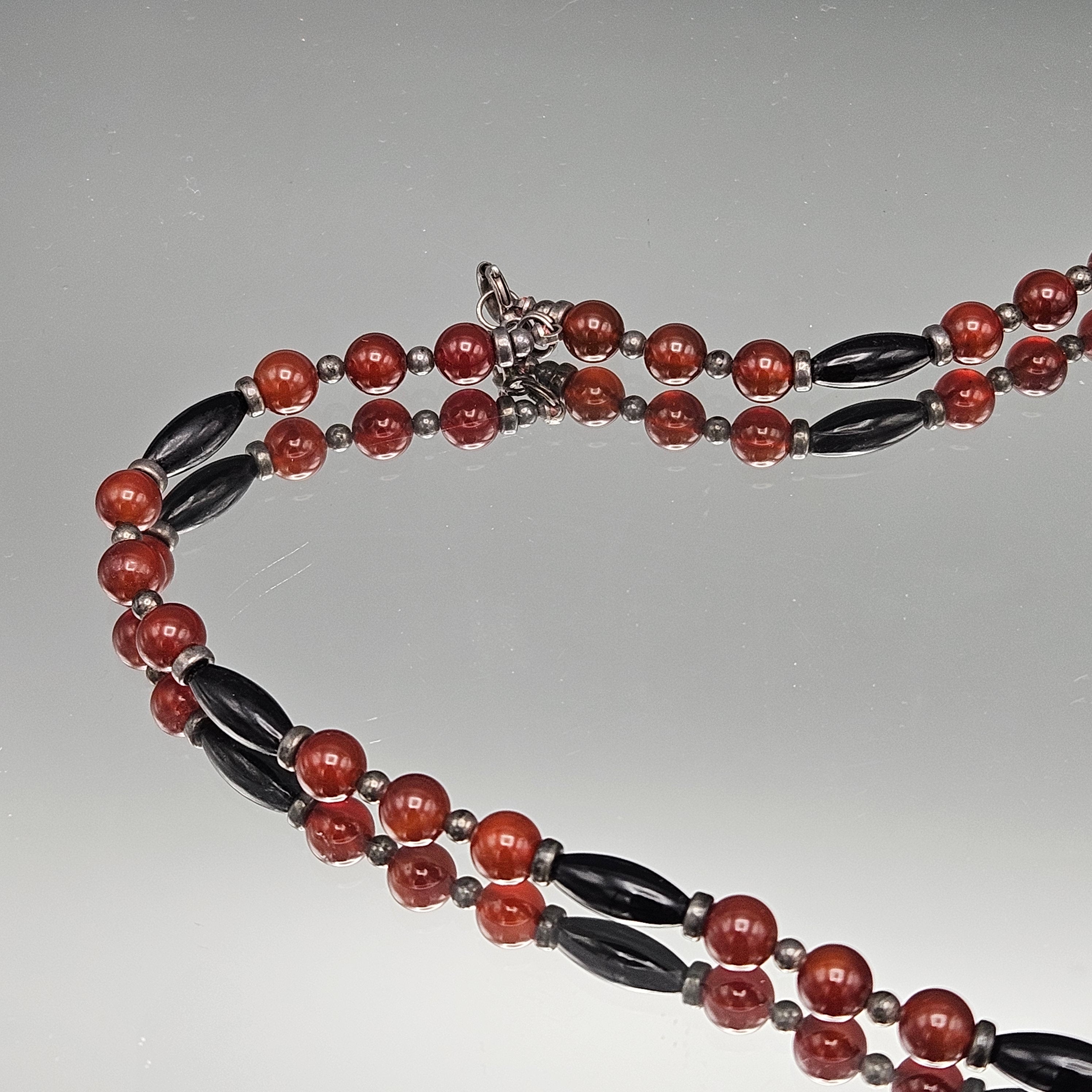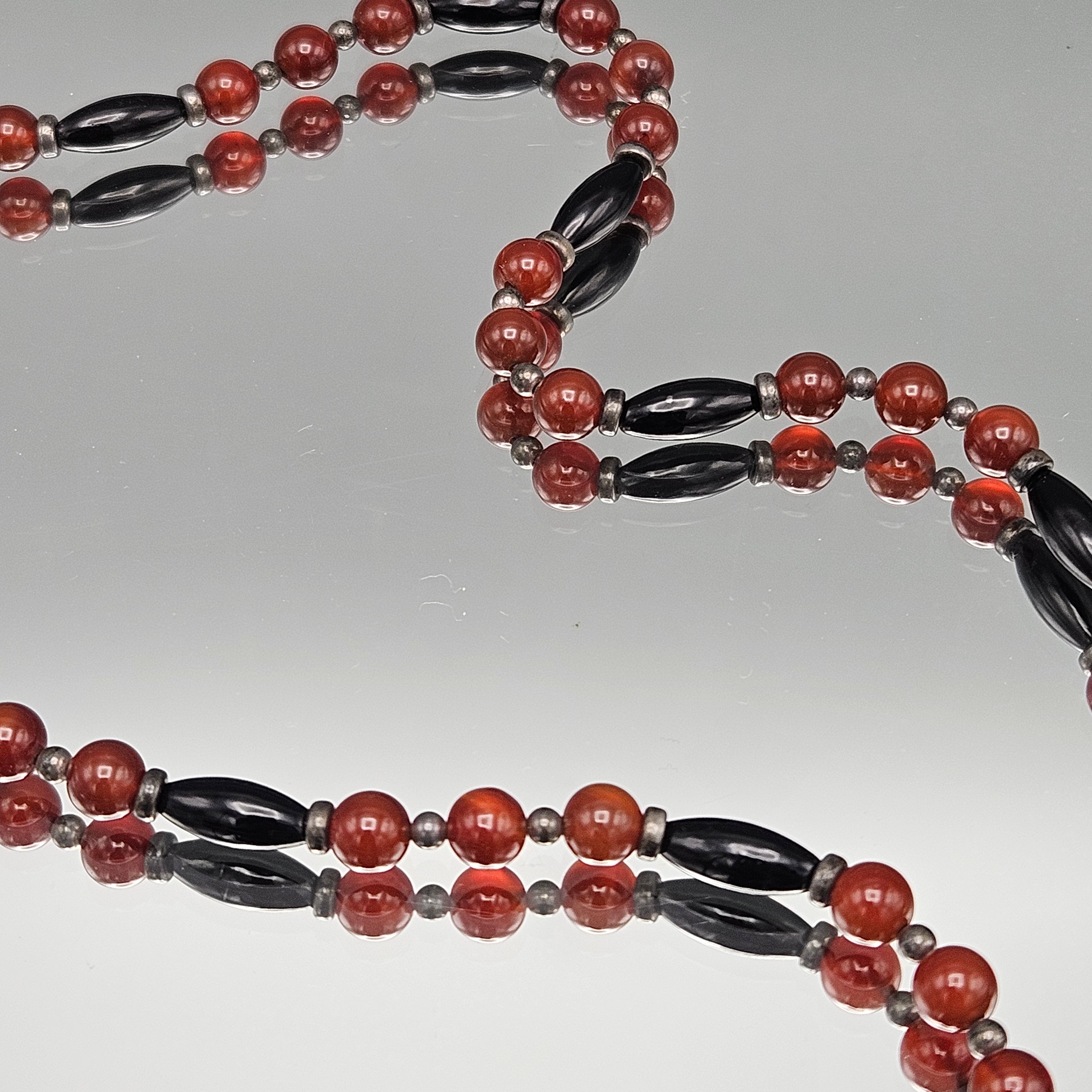 Vintage Unique Red & Black Beaded Necklace with Sterling Design