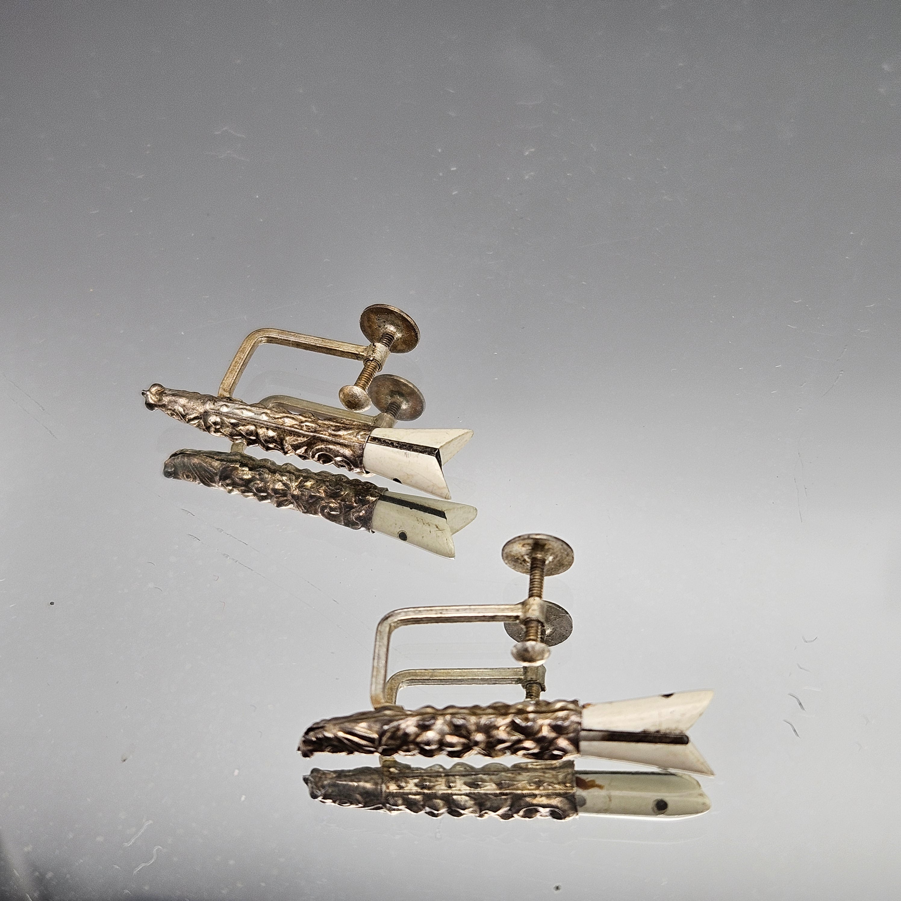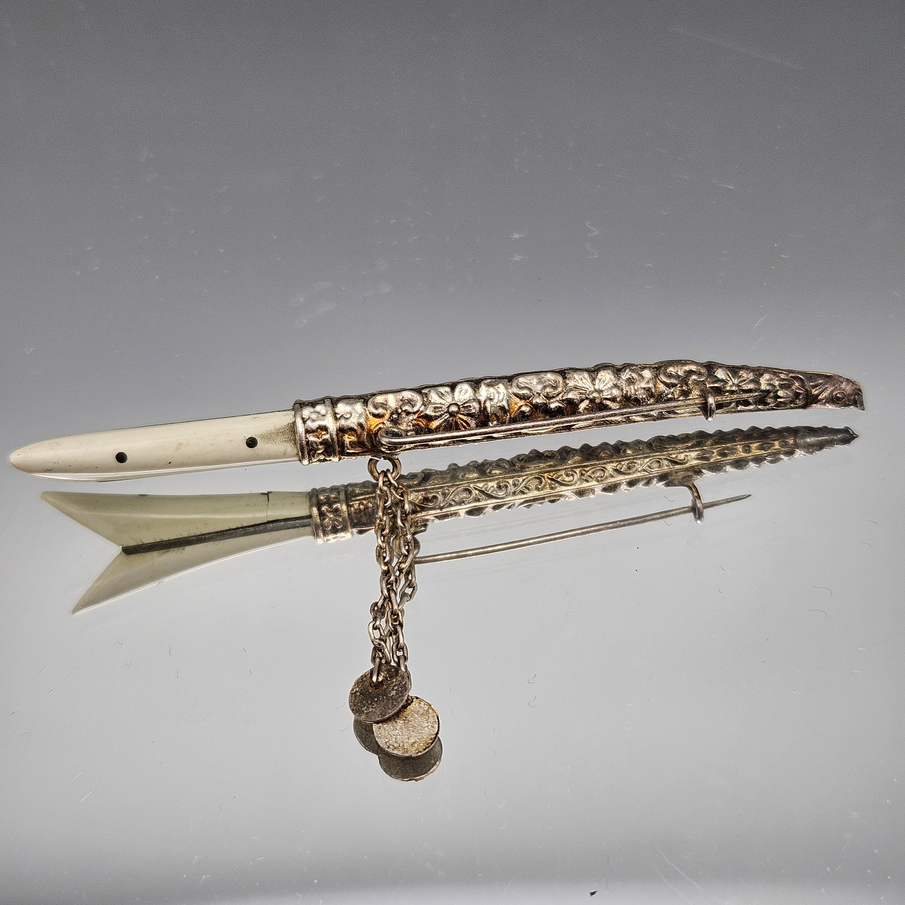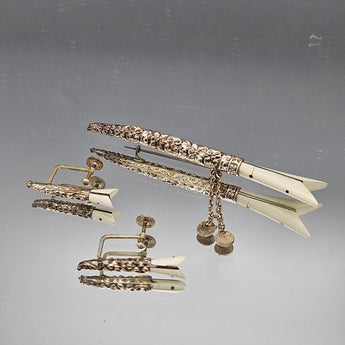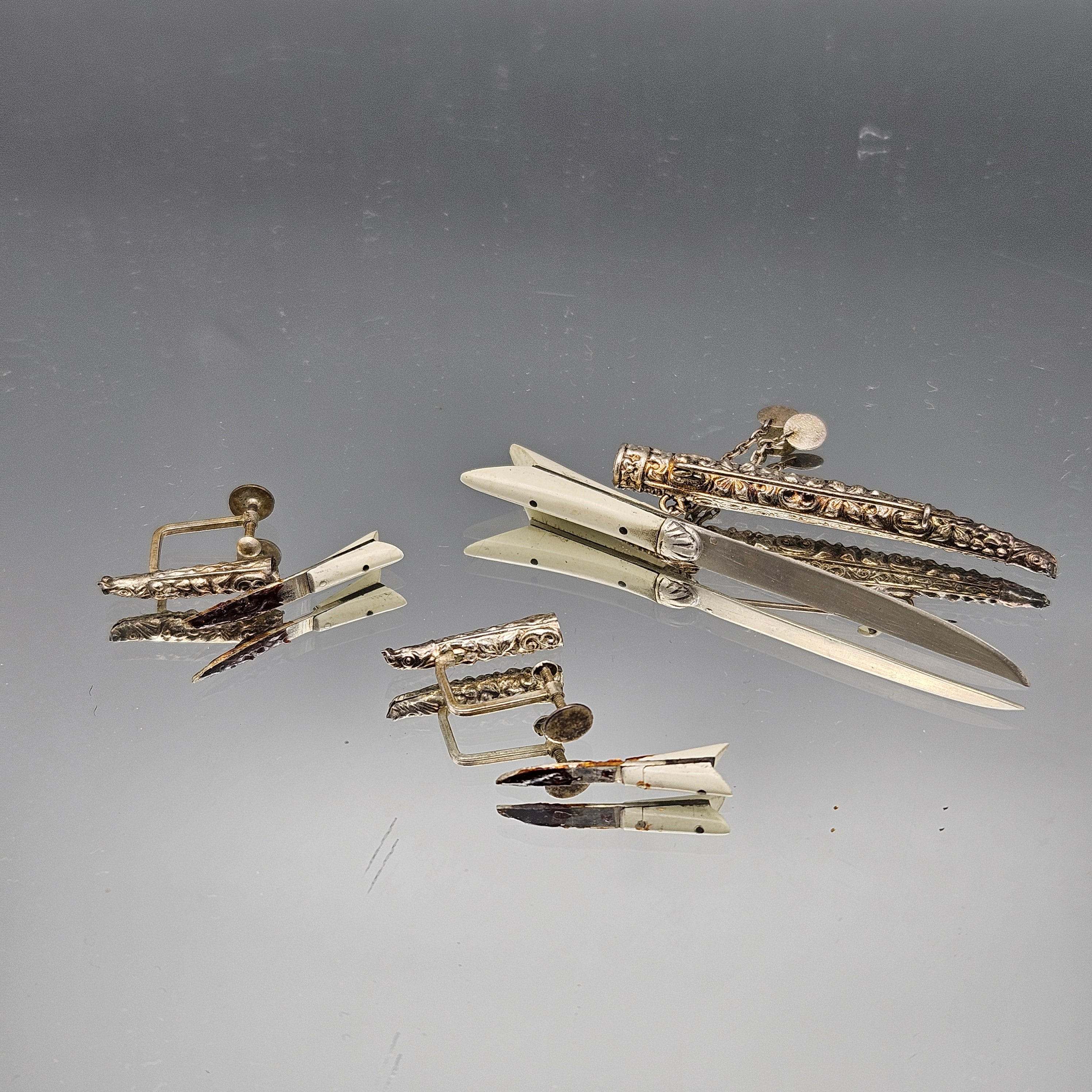 A Turkish Bichaq Dagger in Sheath & Bone Handle - Earrings and Pin / Brooch
