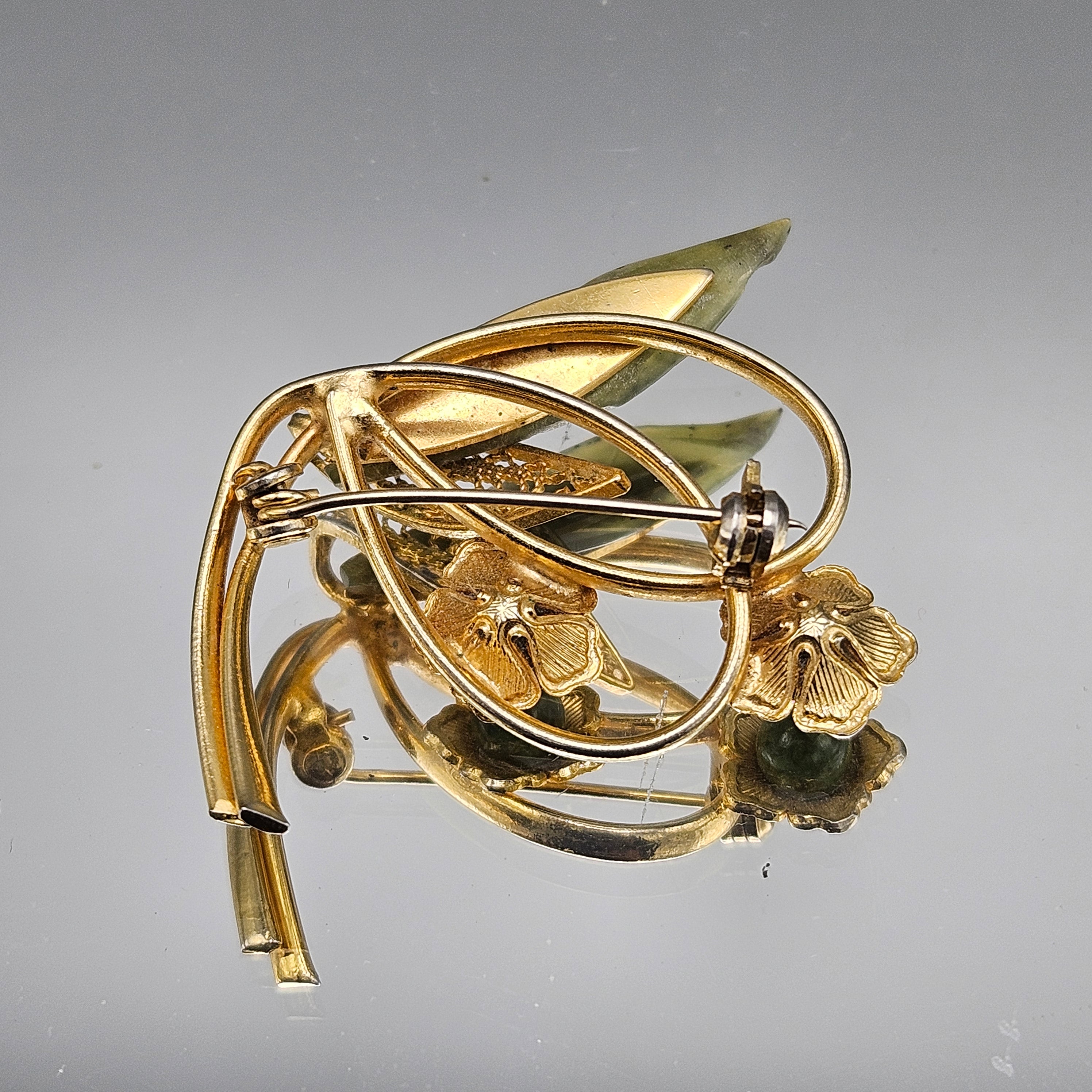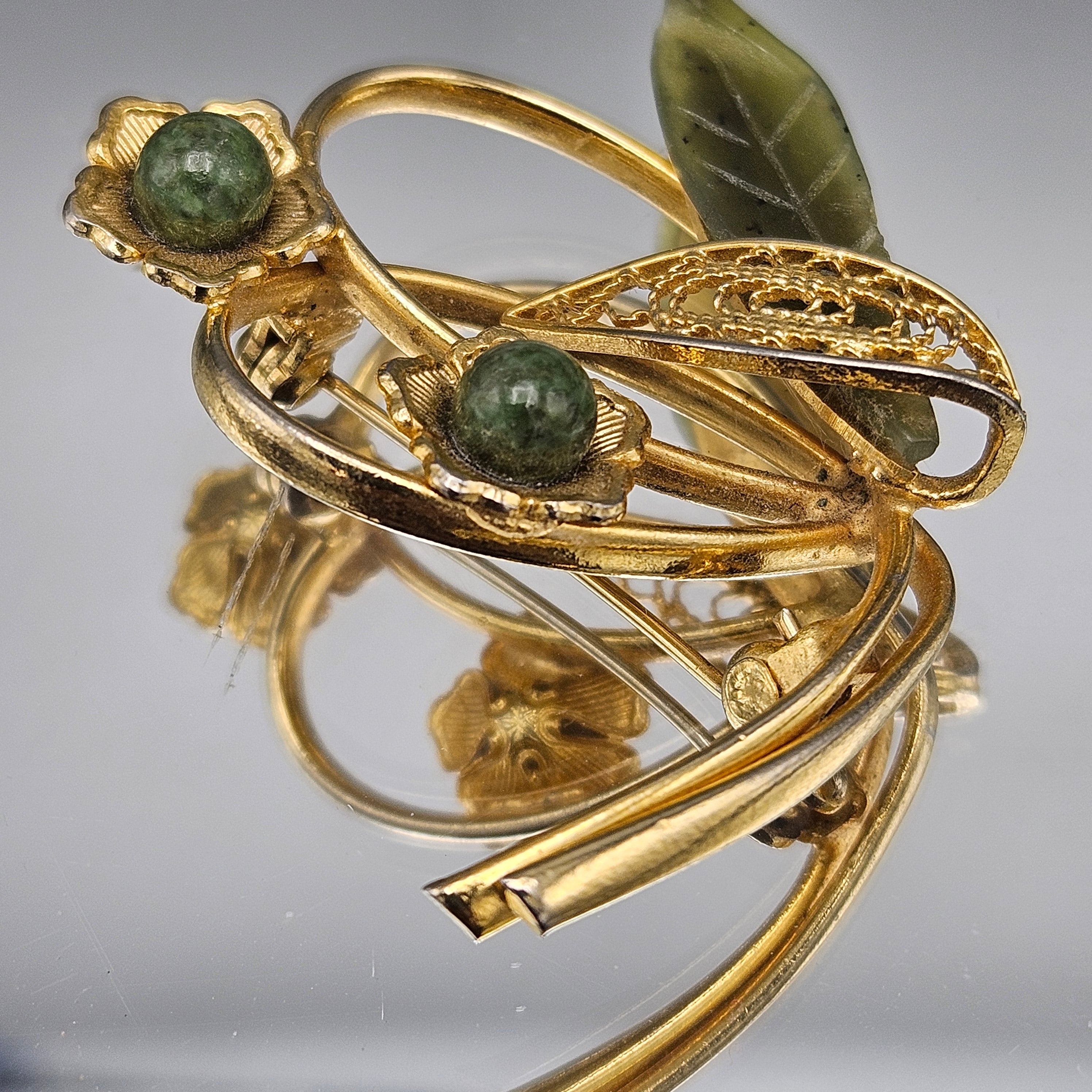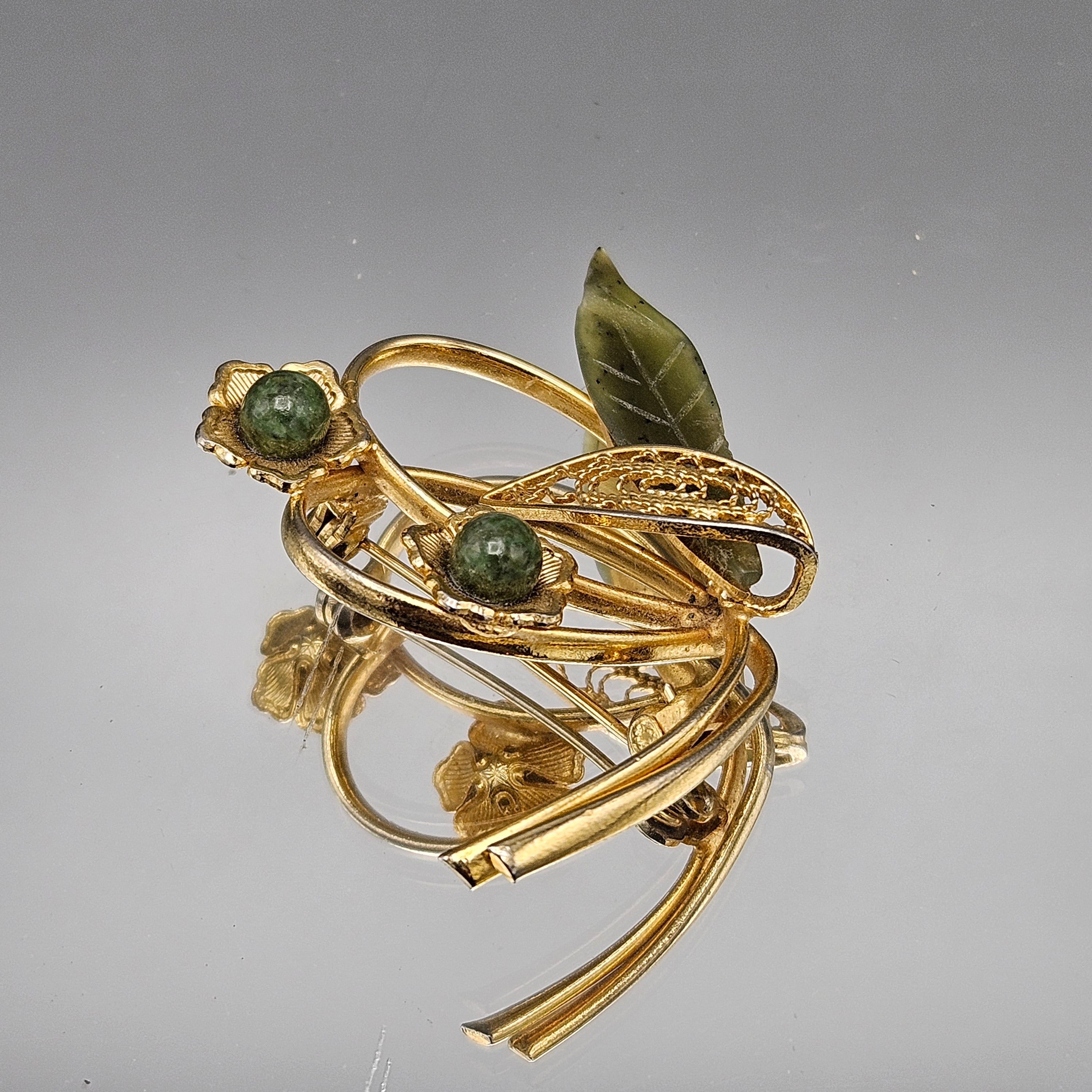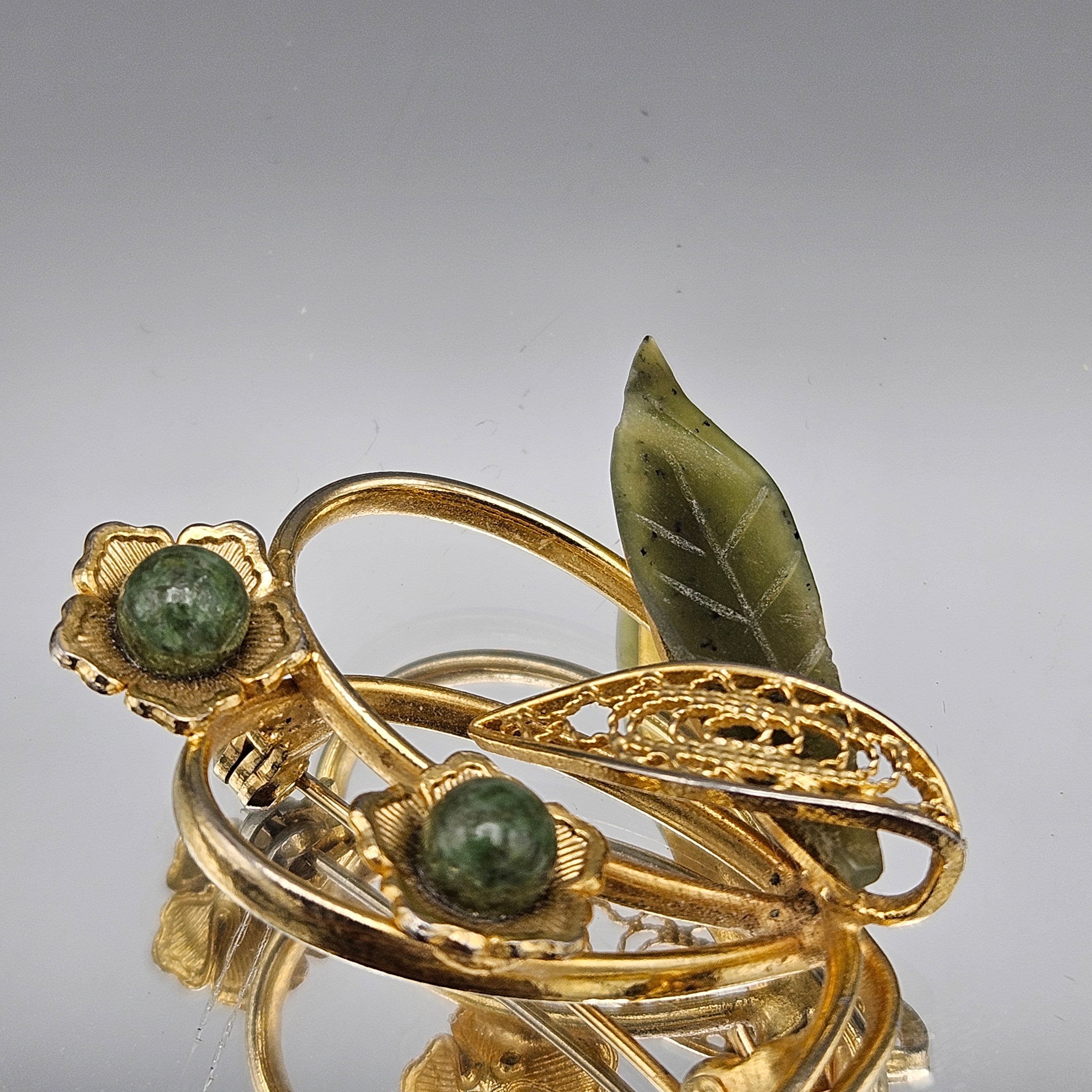 Vintage Green Stone Leaf Pin