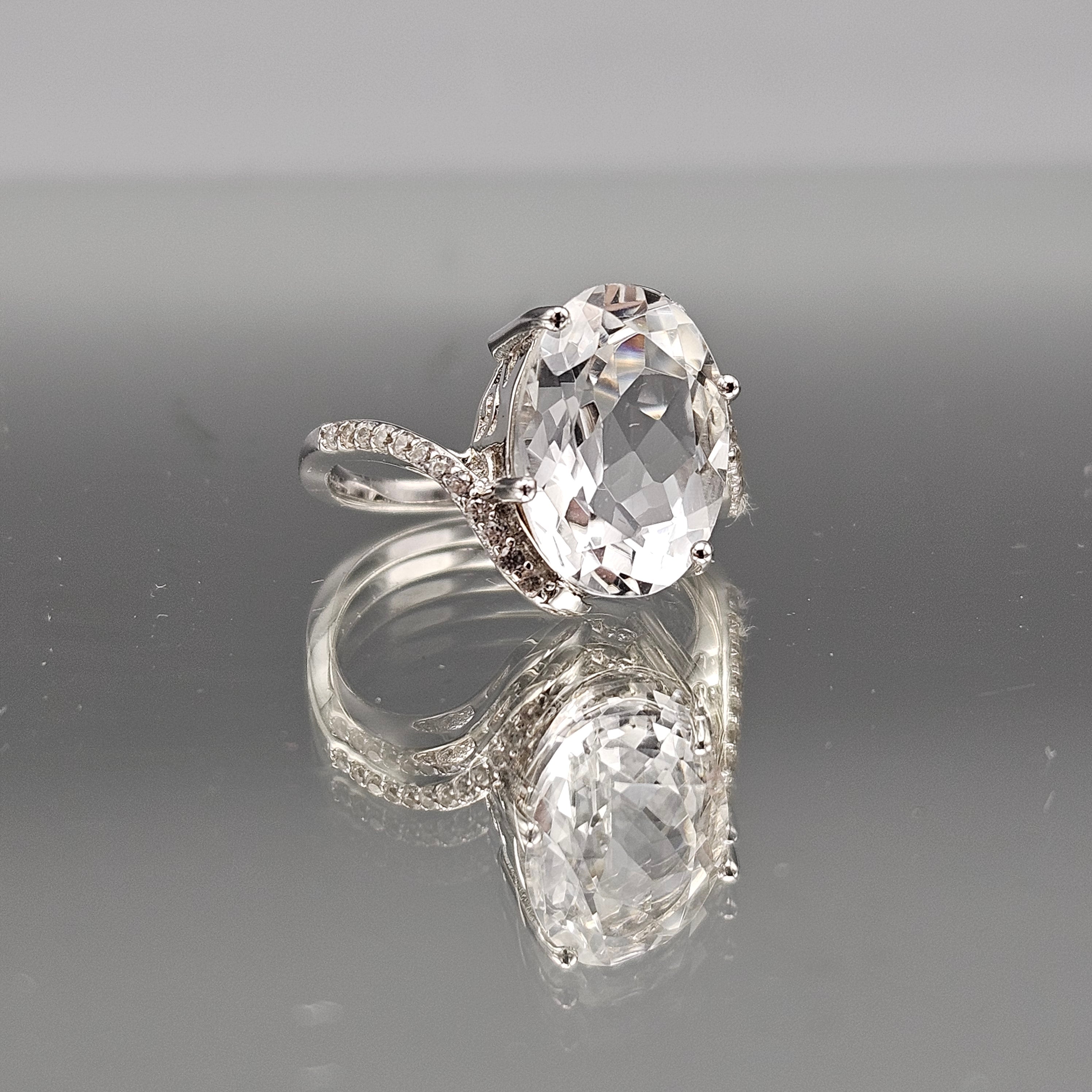 BBJ Signed Sterling Silver Solitaire Cocktail Ring - Size 9