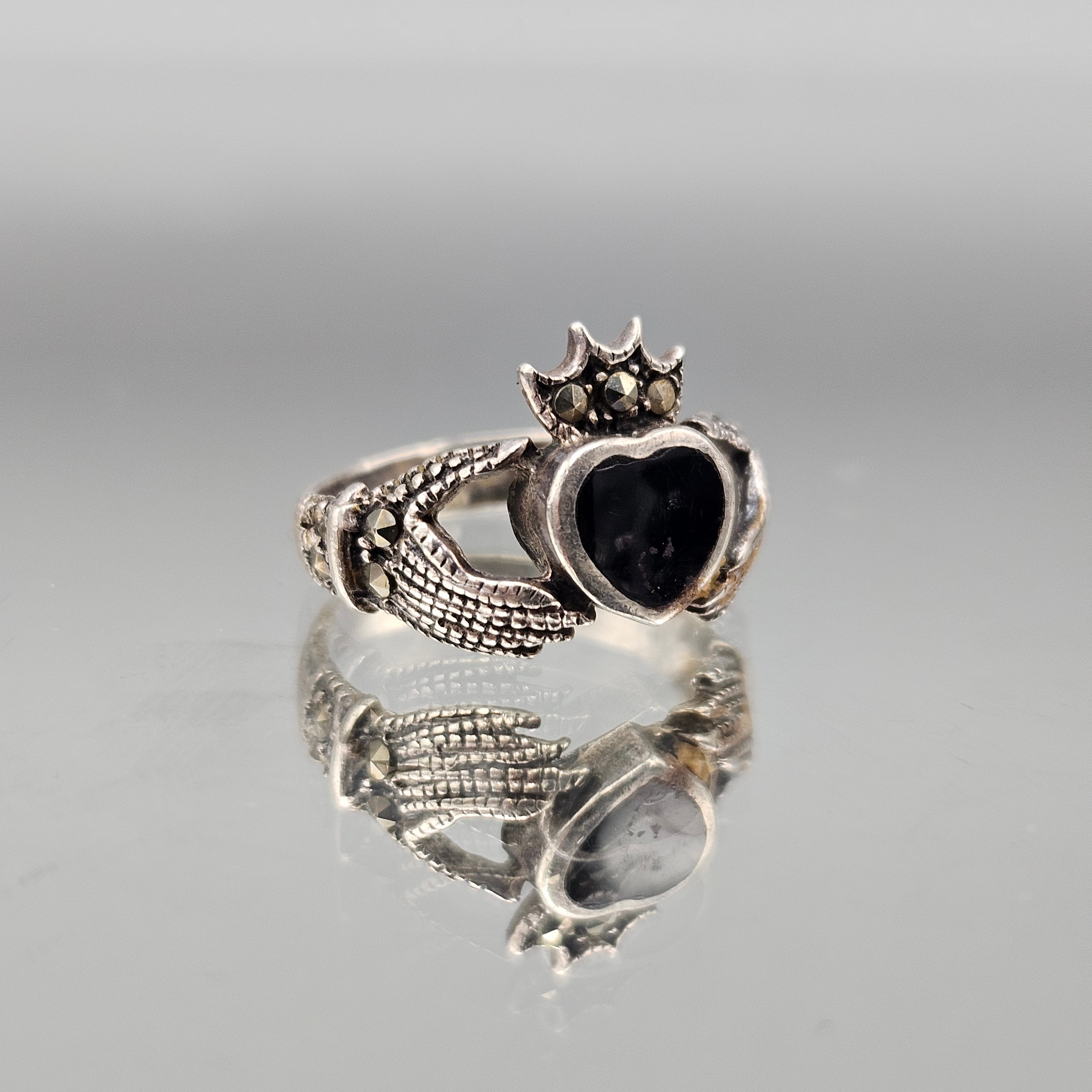 Black Onyx Claddagh Ring - Size 4.5