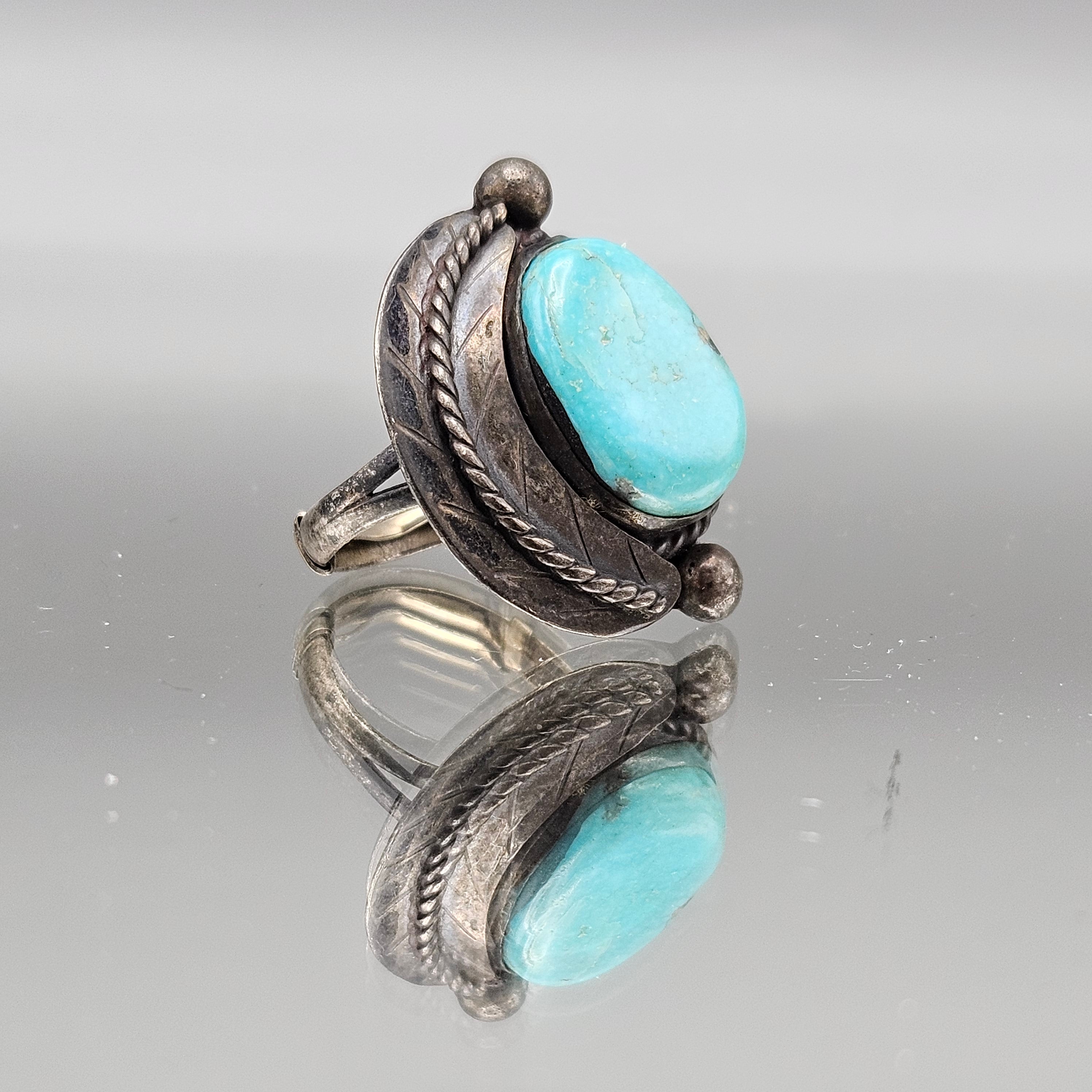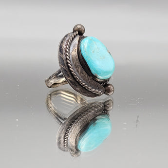 Vintage Sterling Silver Native American Turquoise Ring - Size 6
