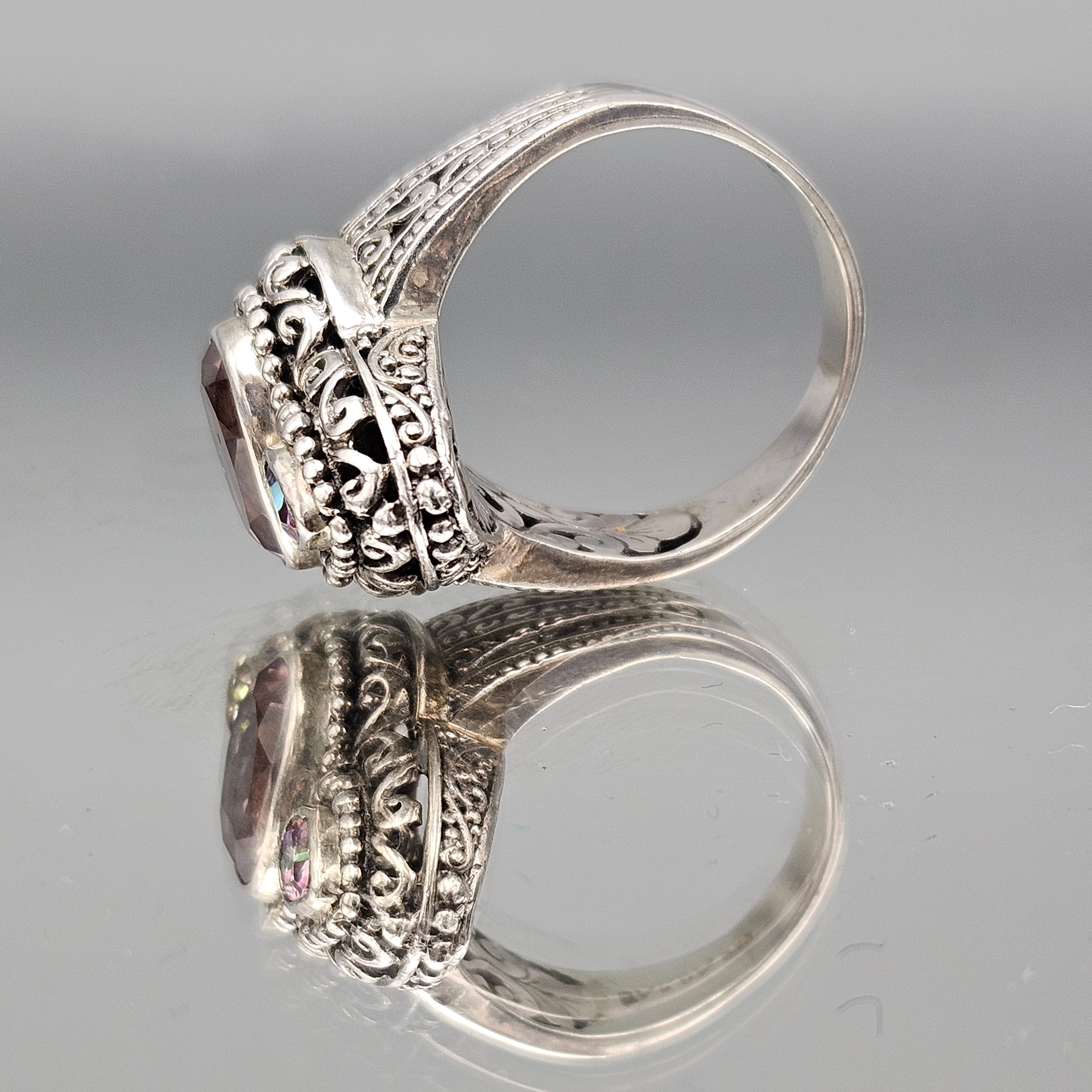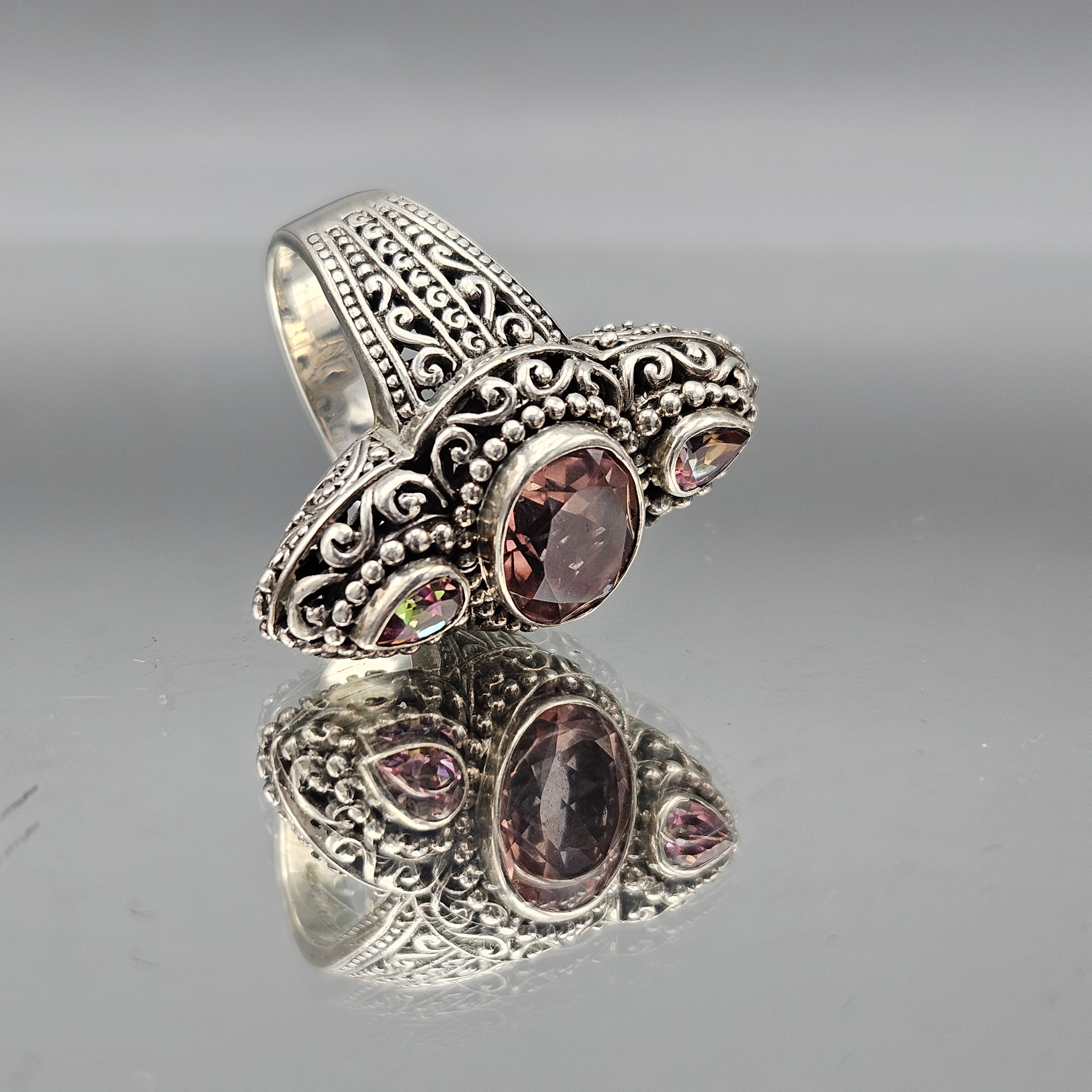 Sarda Sterling Silver Chunky Pink Cocktail Ring - Size 12