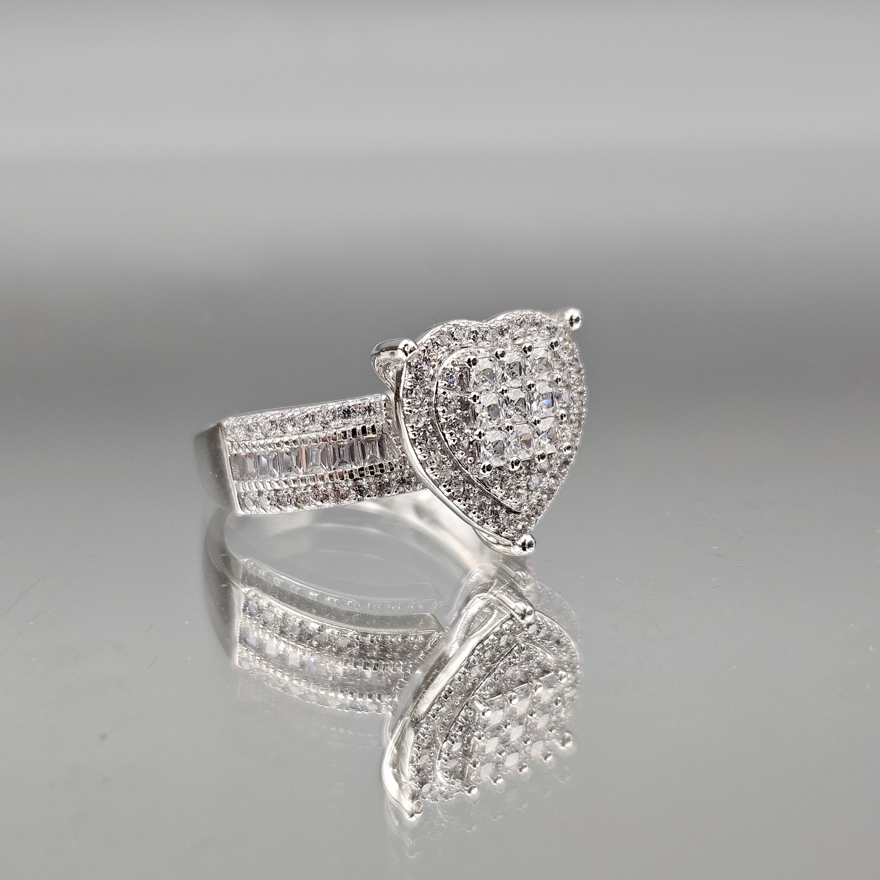 Sterling Silver CZ Sparkling Heart Ring - Size 8.25