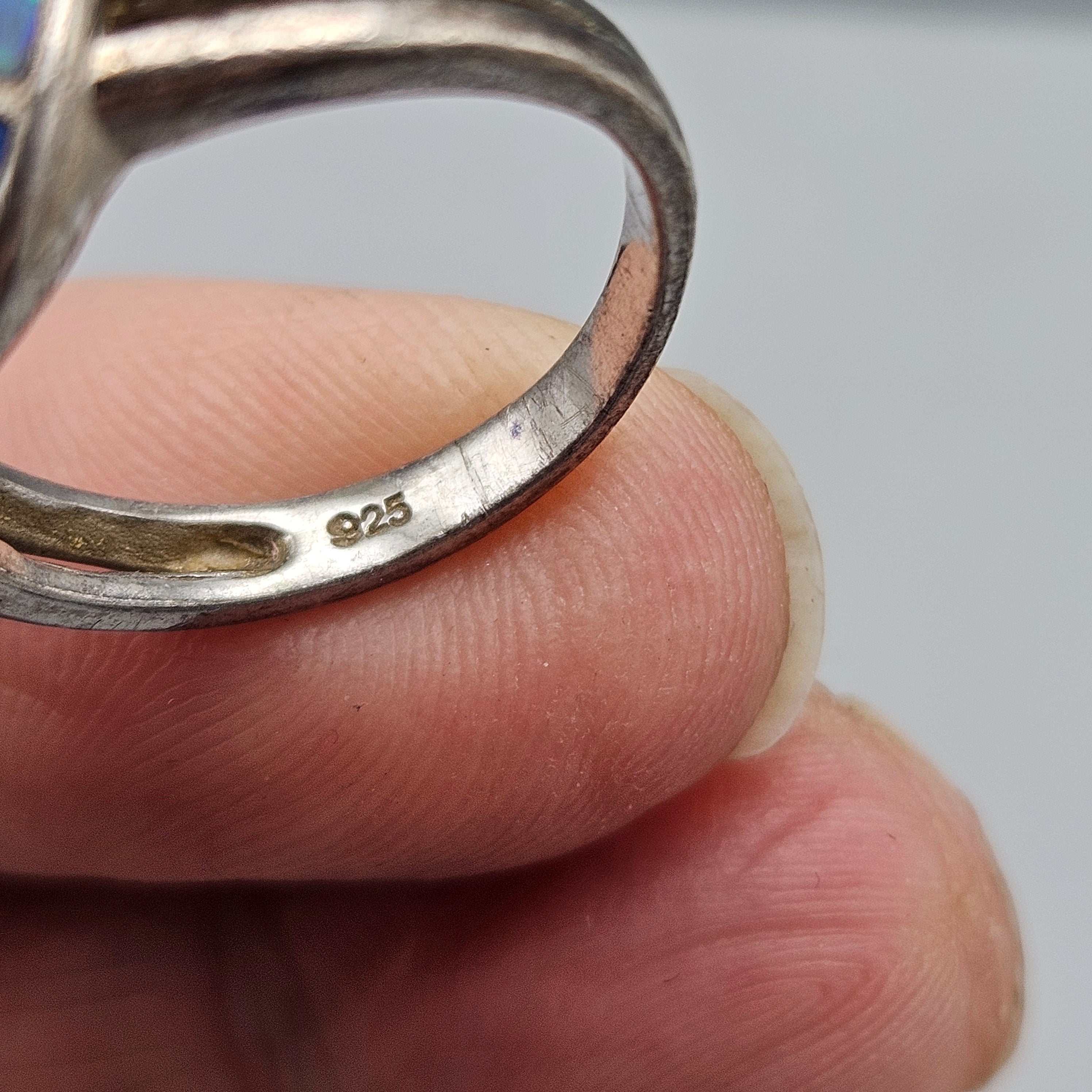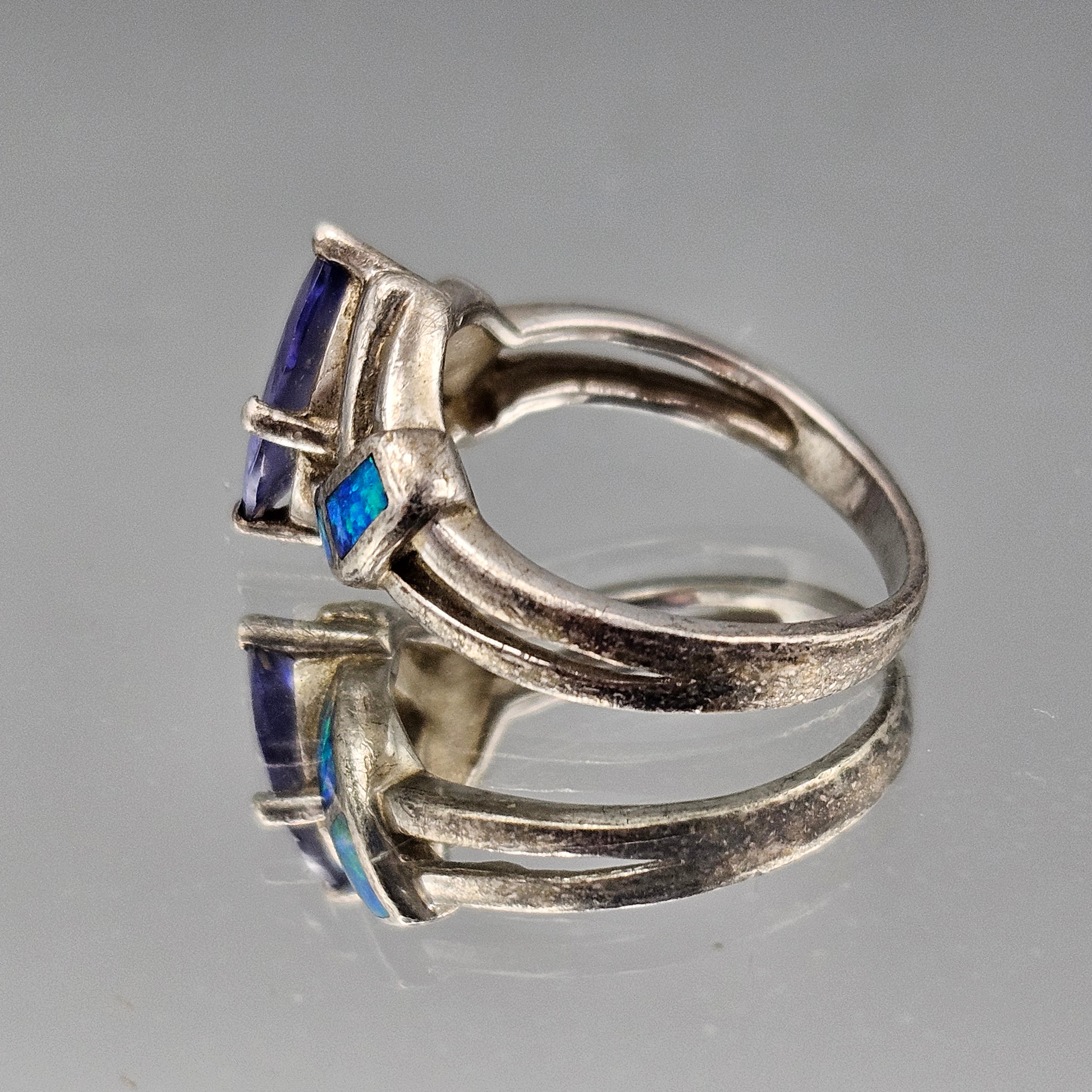 Sterling Silver Opal & Amethyst Cocktail Ring - Size 8
