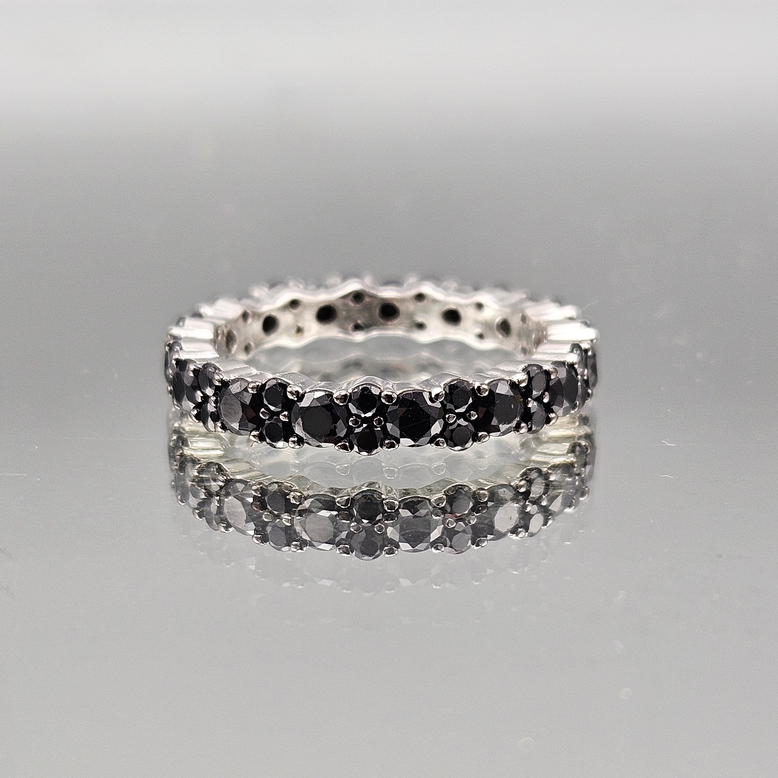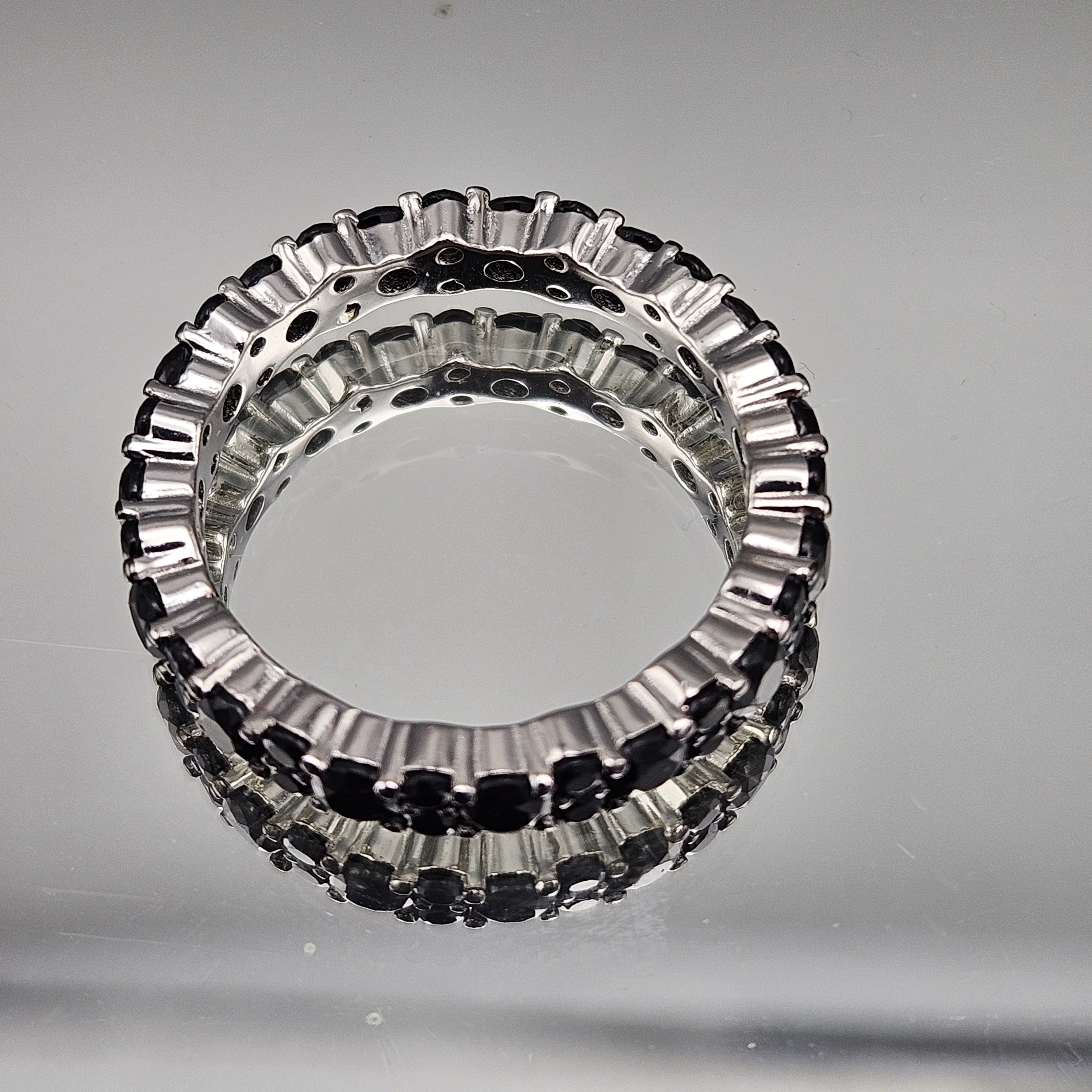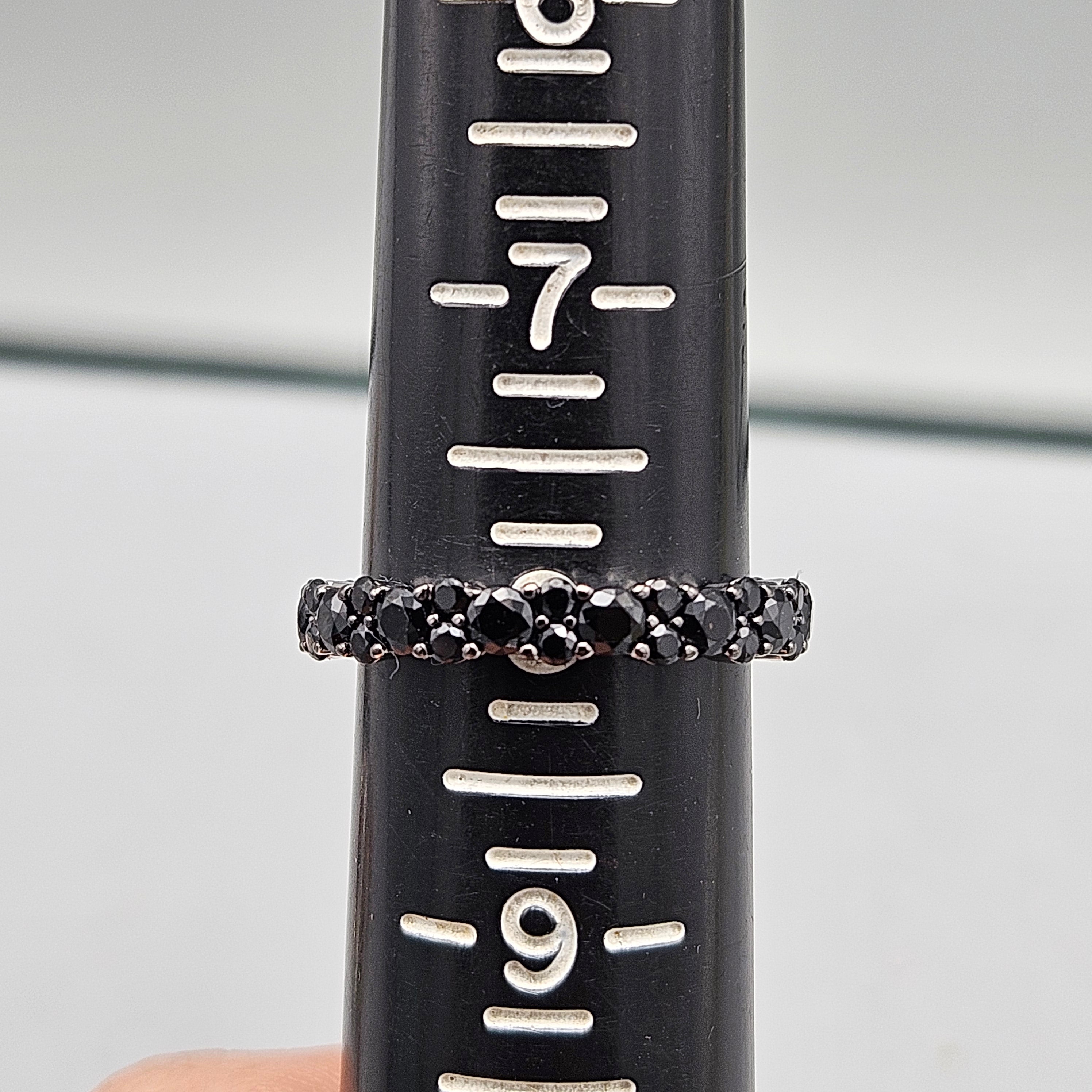 Sterling Silver Black Crystal Band Ring - Size 8