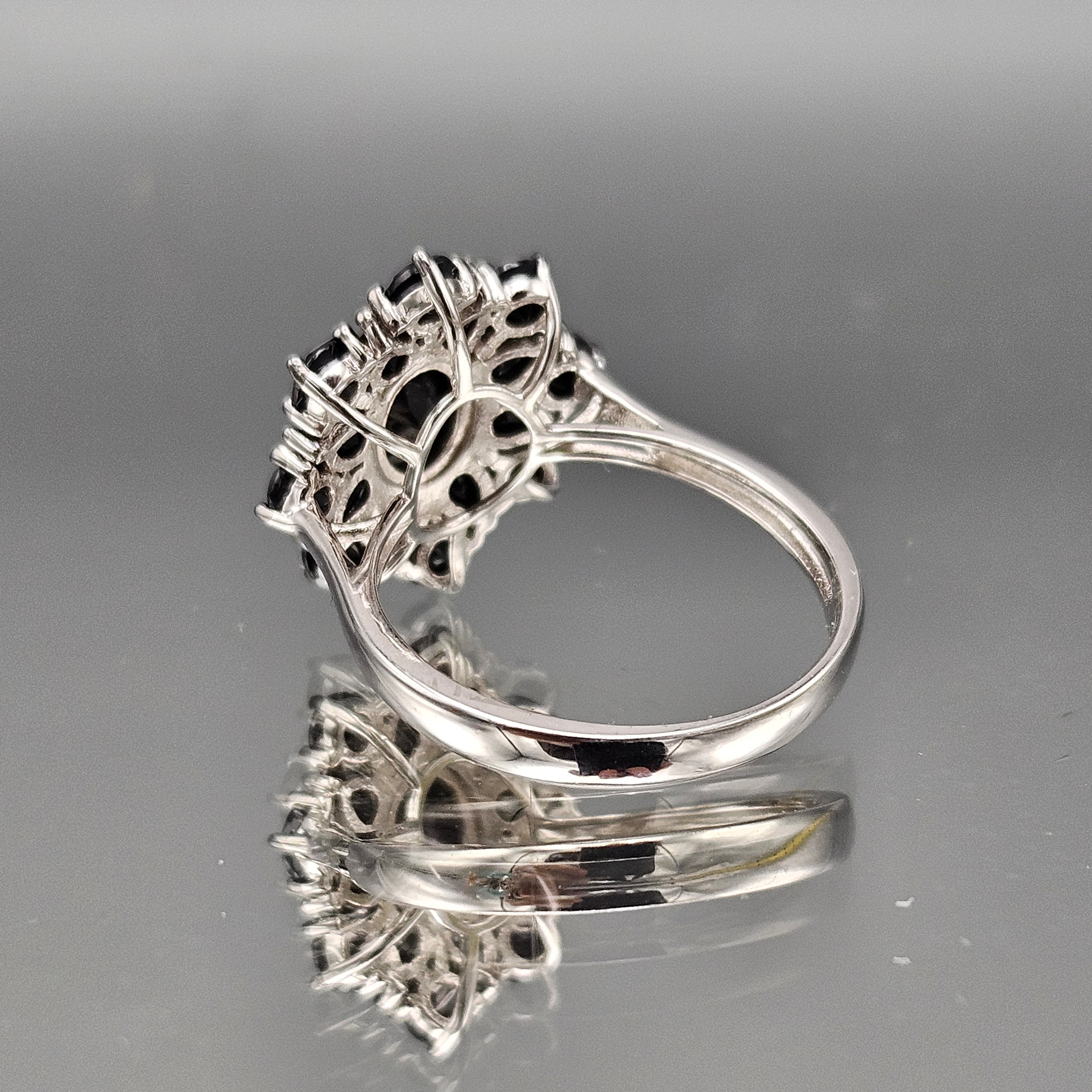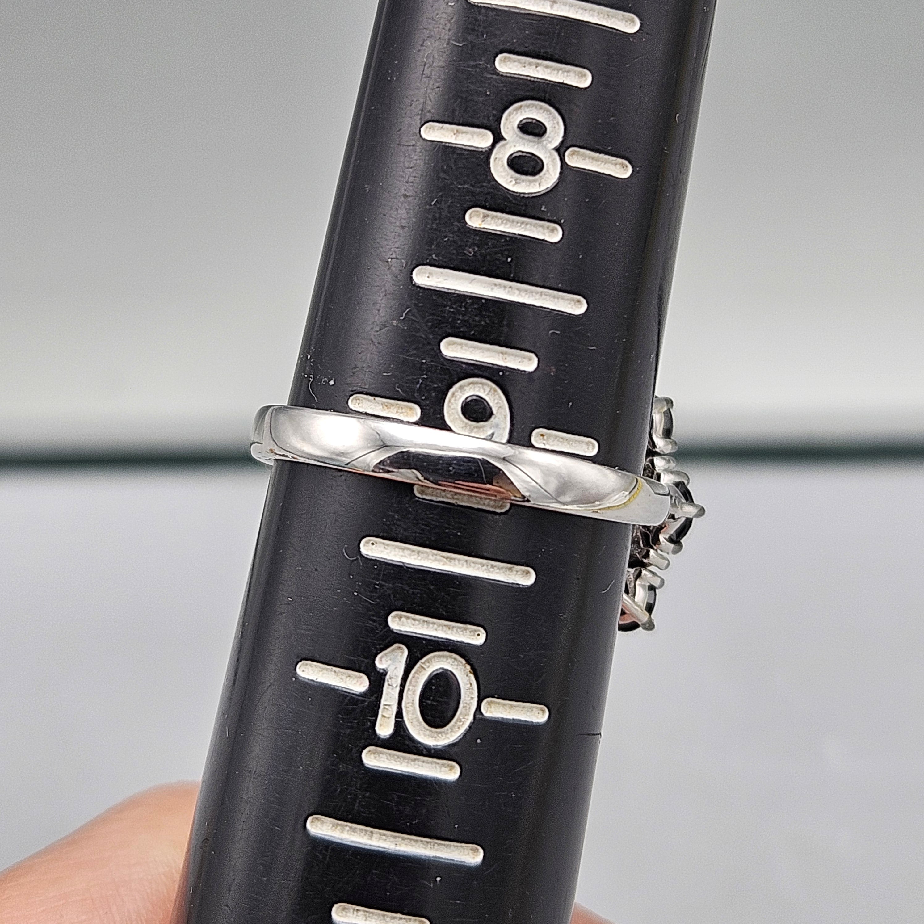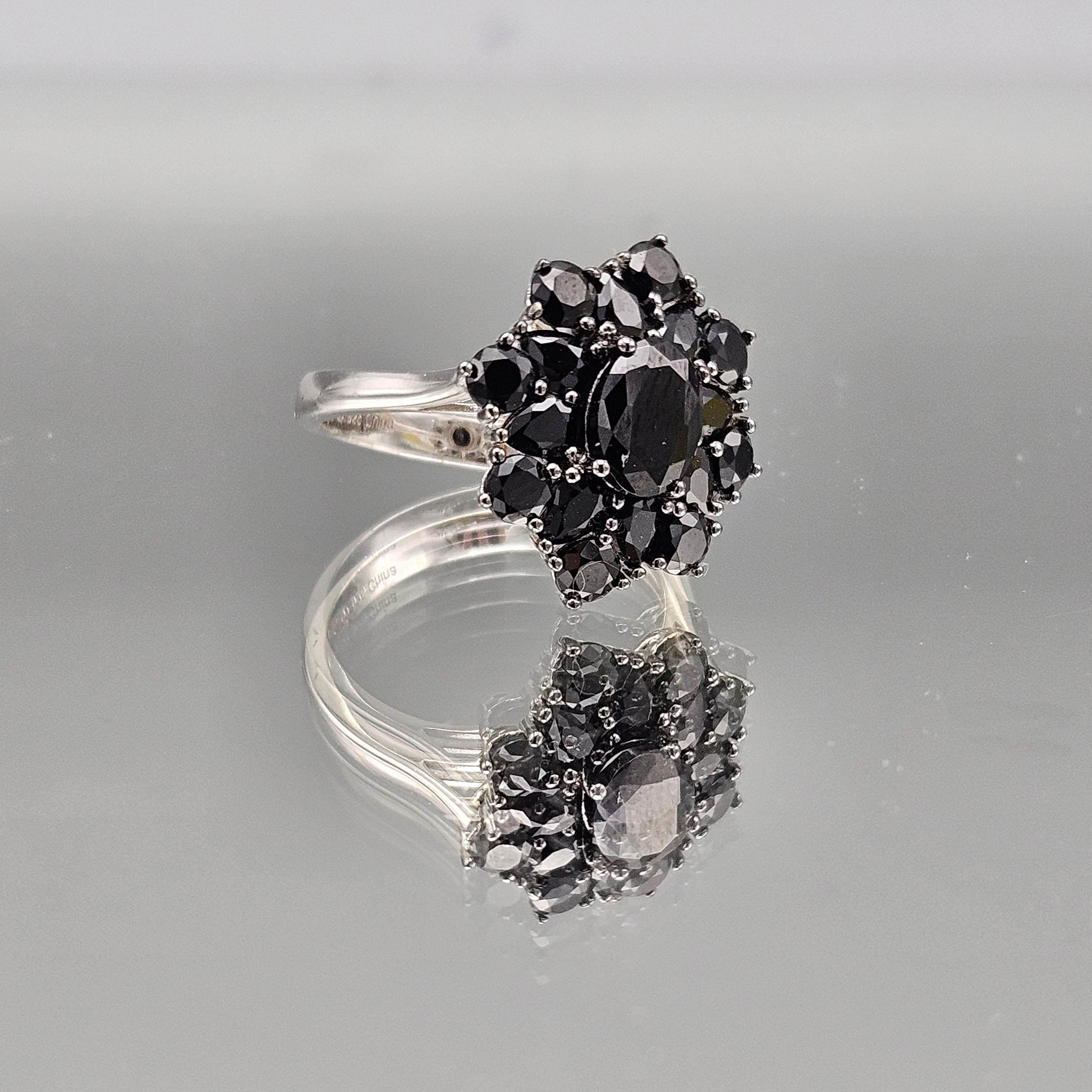 Sterling Silver Black Crystal Flower Ring - Size 9