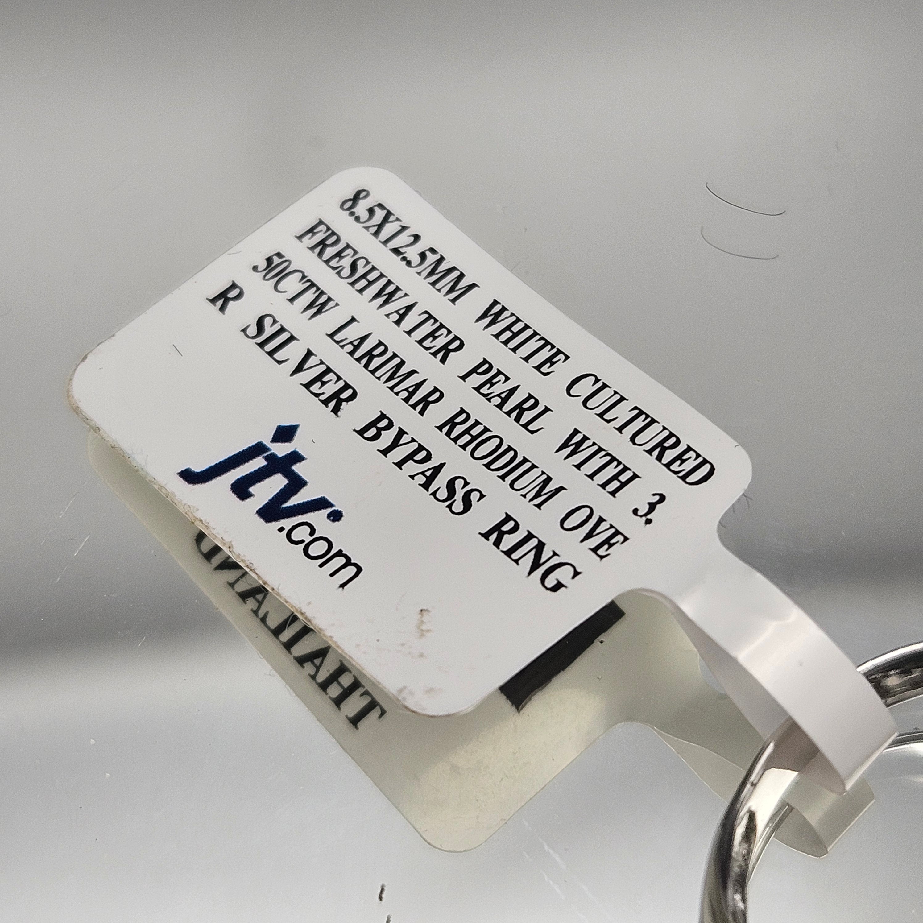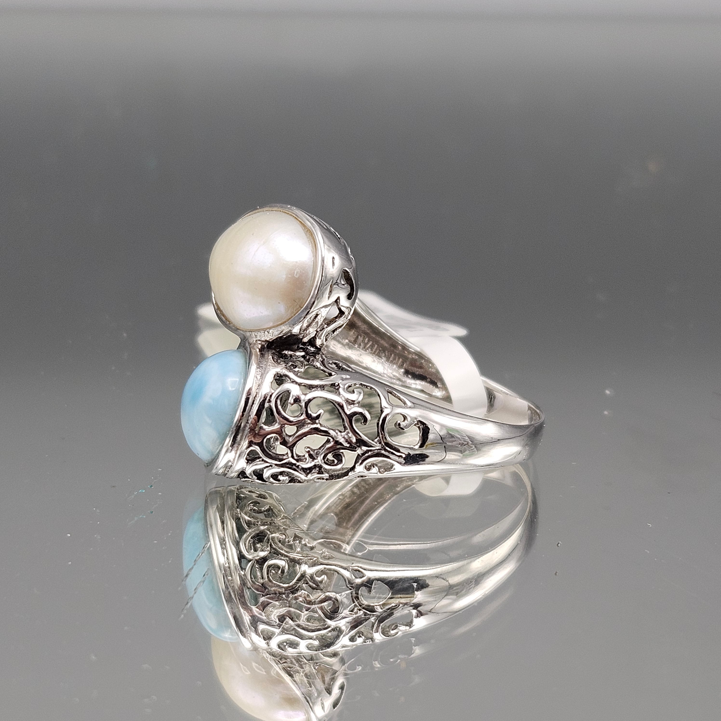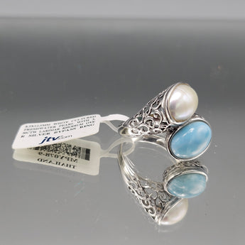 Sterling Silver Cultured Pearl & Larimar Ring - Size 9
