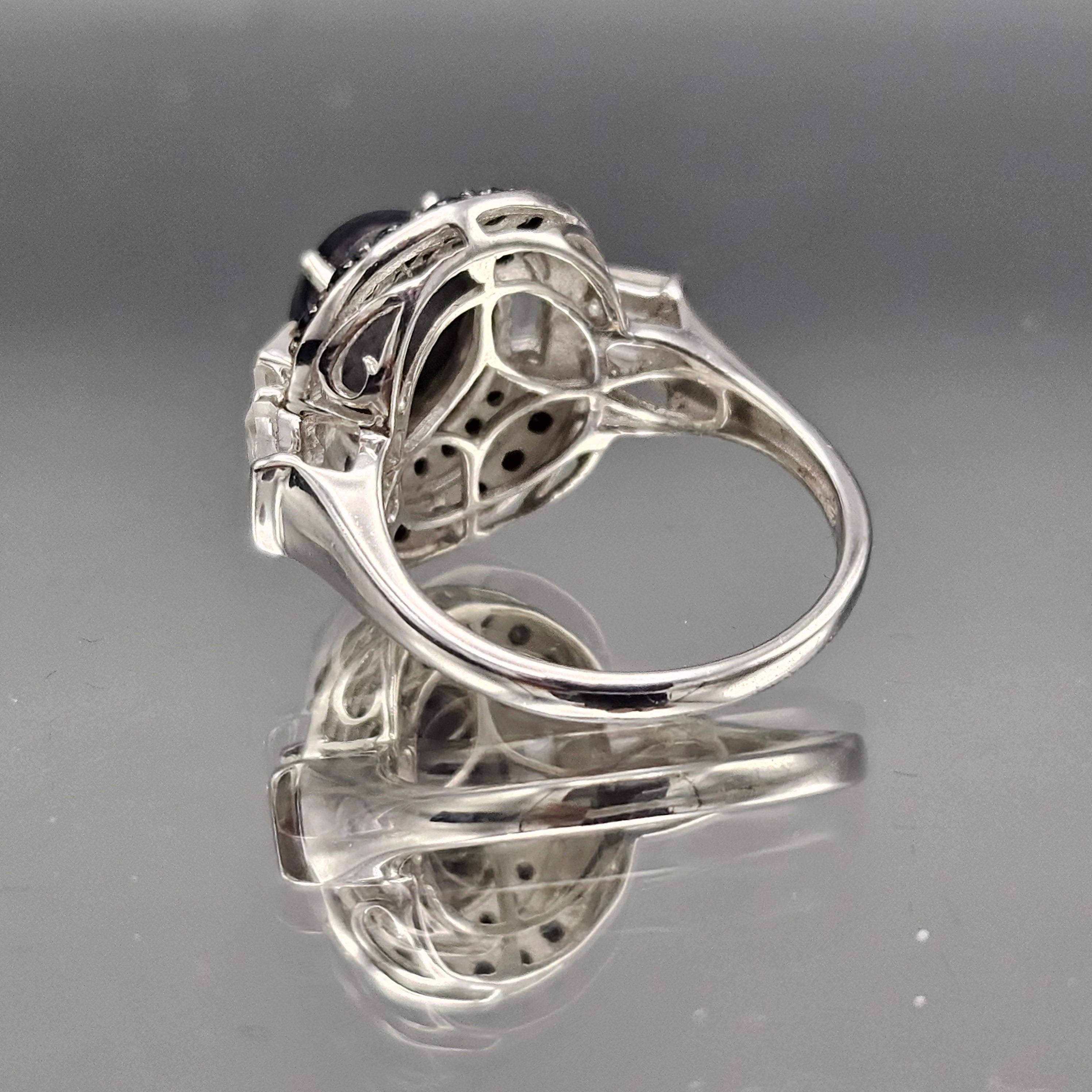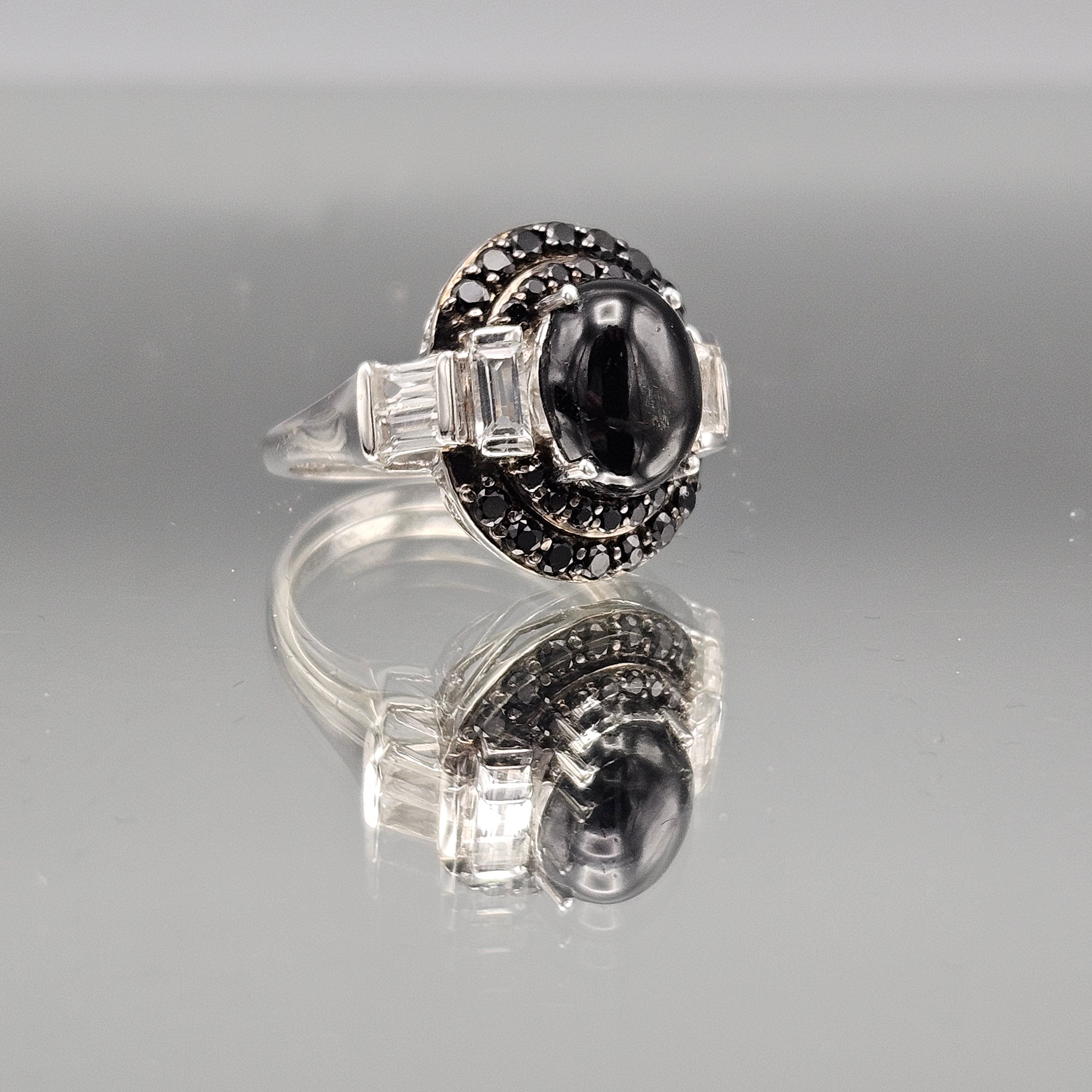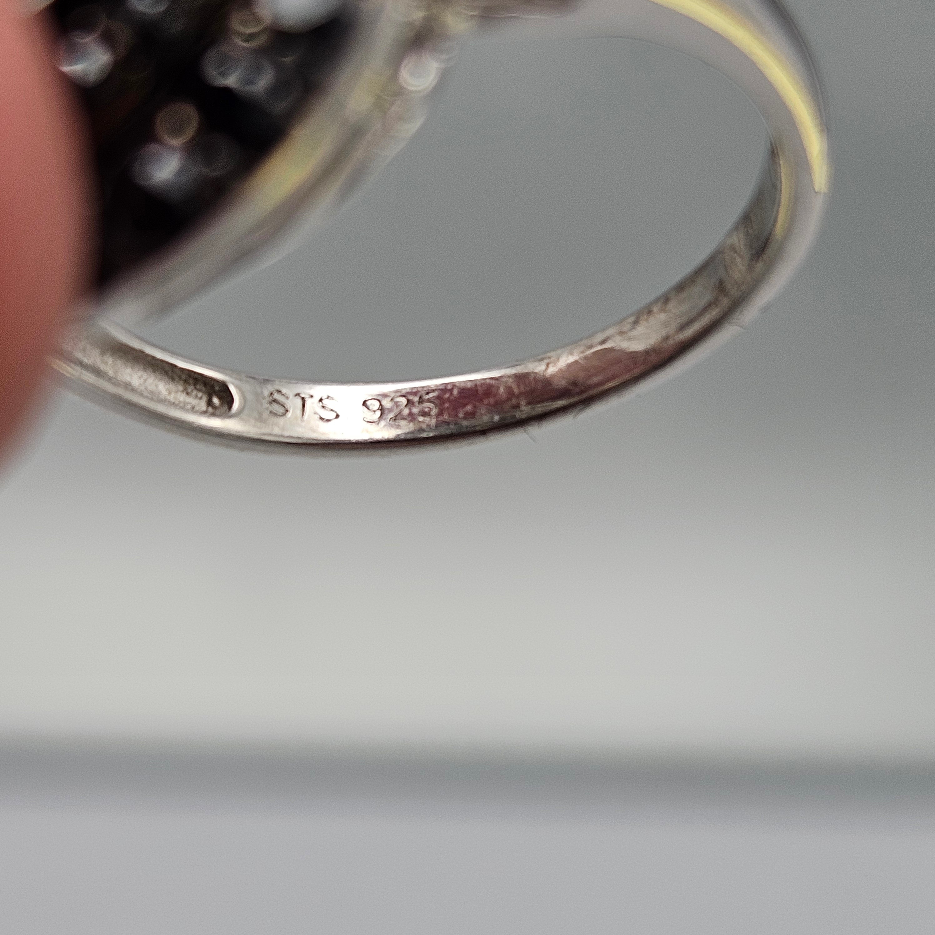 Vermeil Sterling Sterling Onyx and Marcasite Ring - Size 8.25