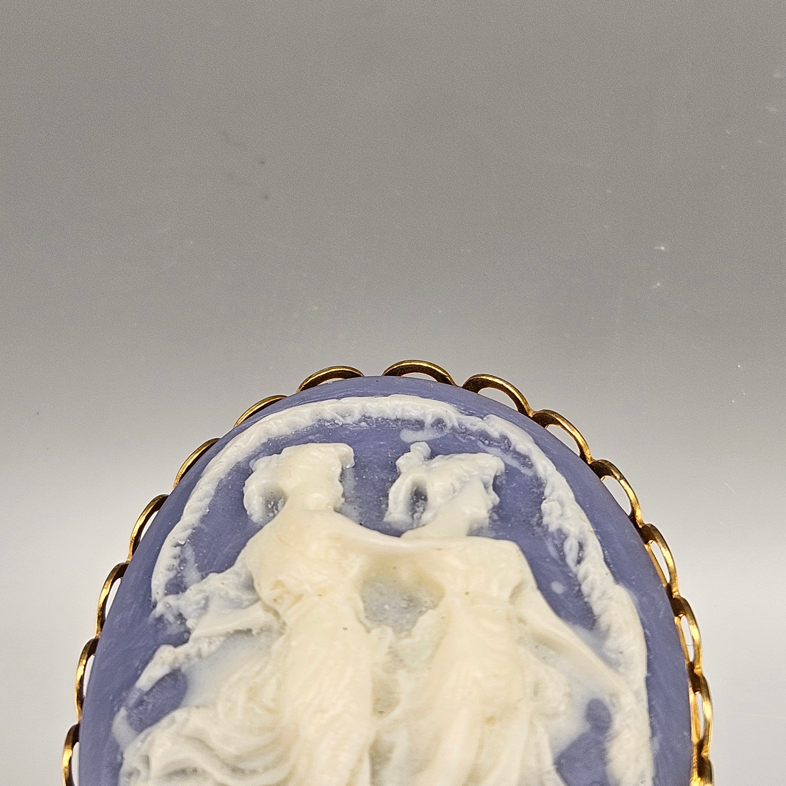 Vintage Wedgewood Style Carved Cameo Scarf Clip