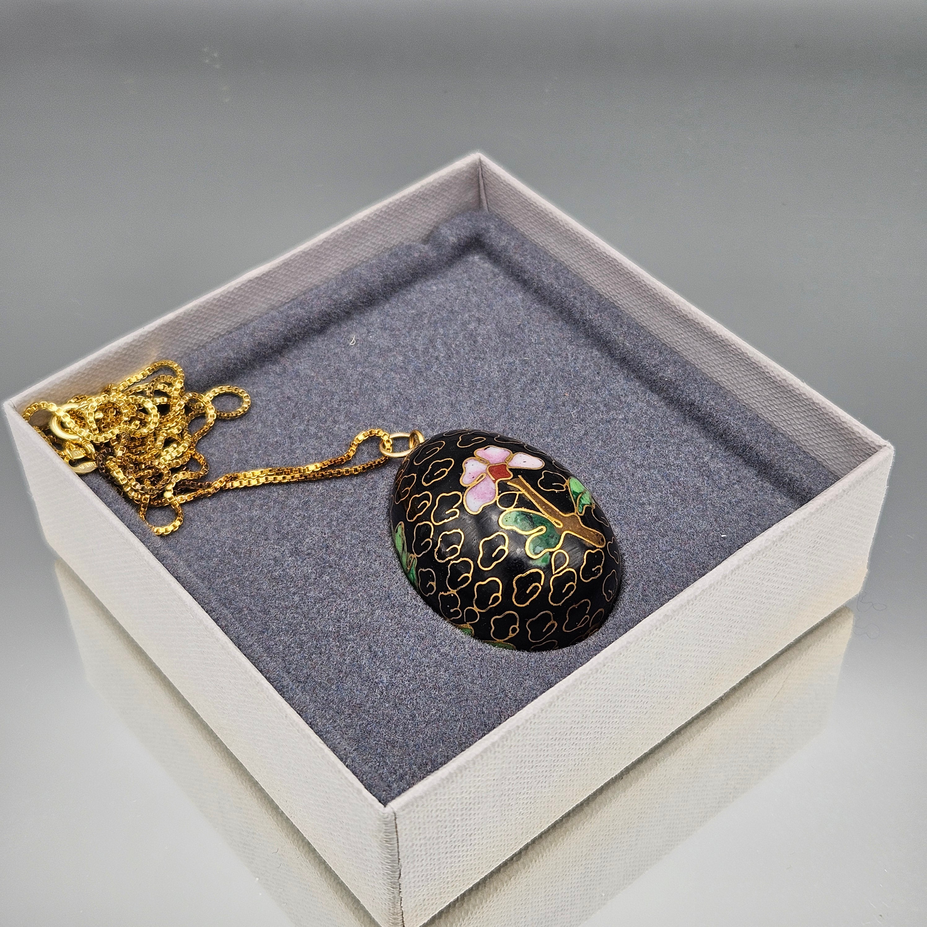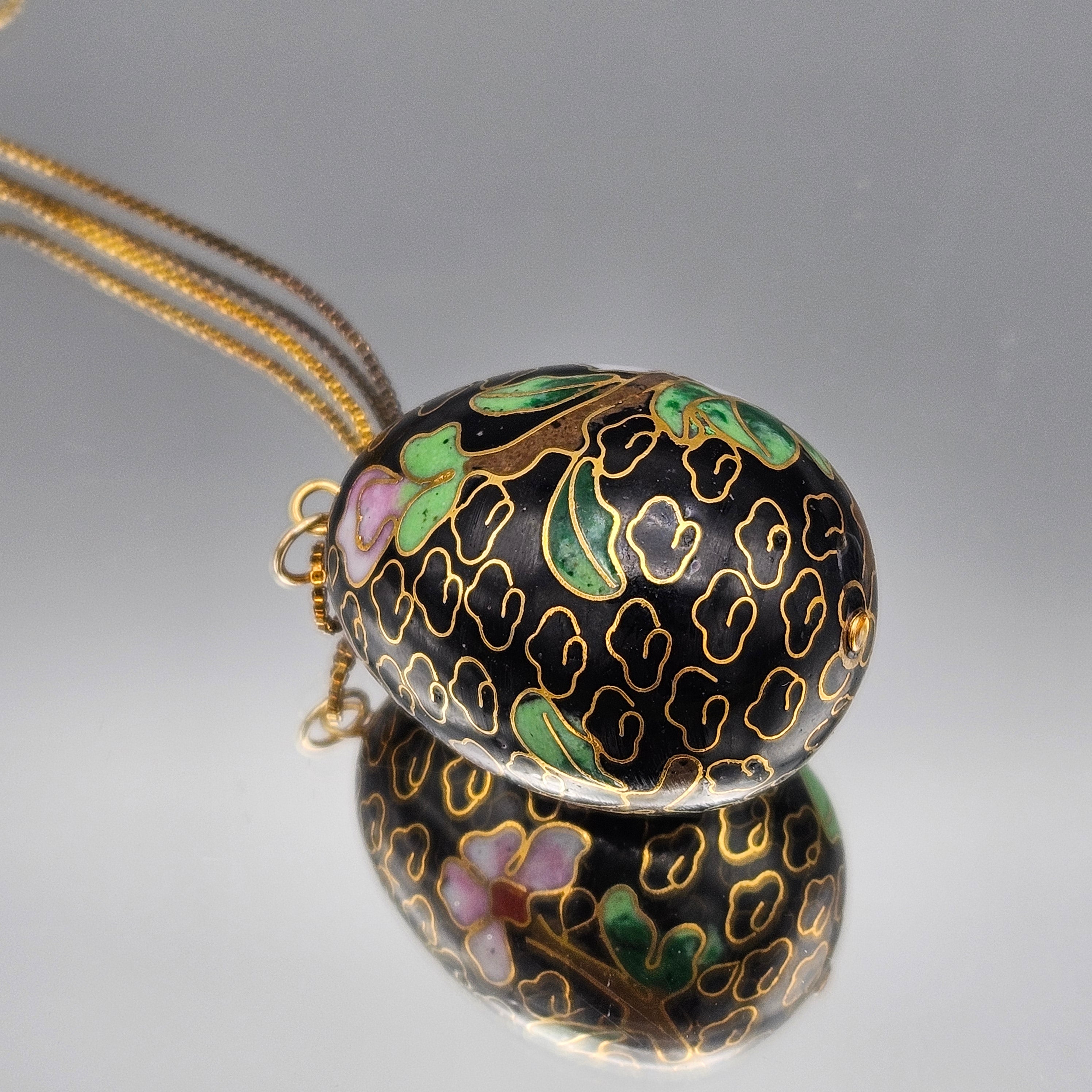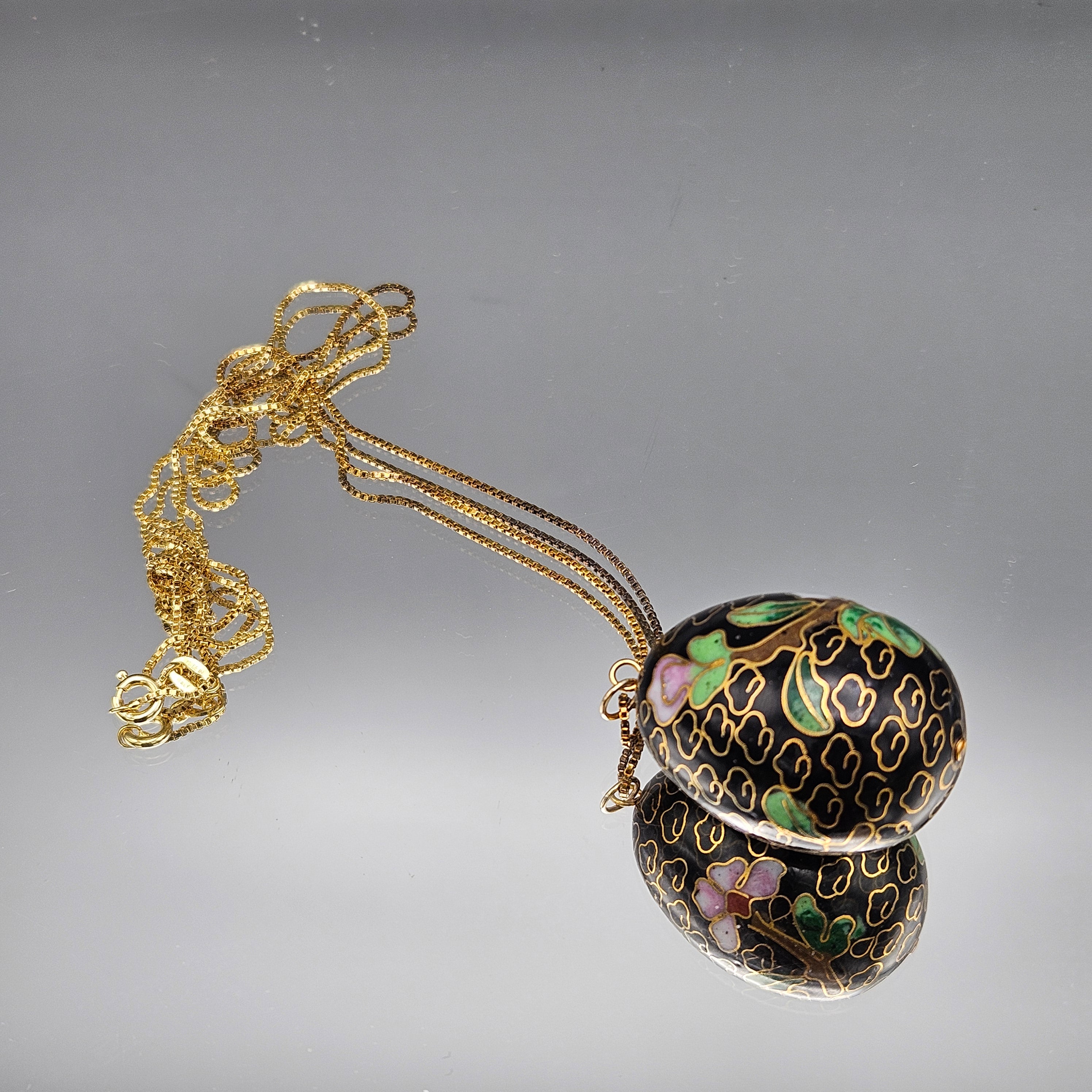 Vintage Italian Cloisonne Pendant Necklace on Vermeil Sterling Chain