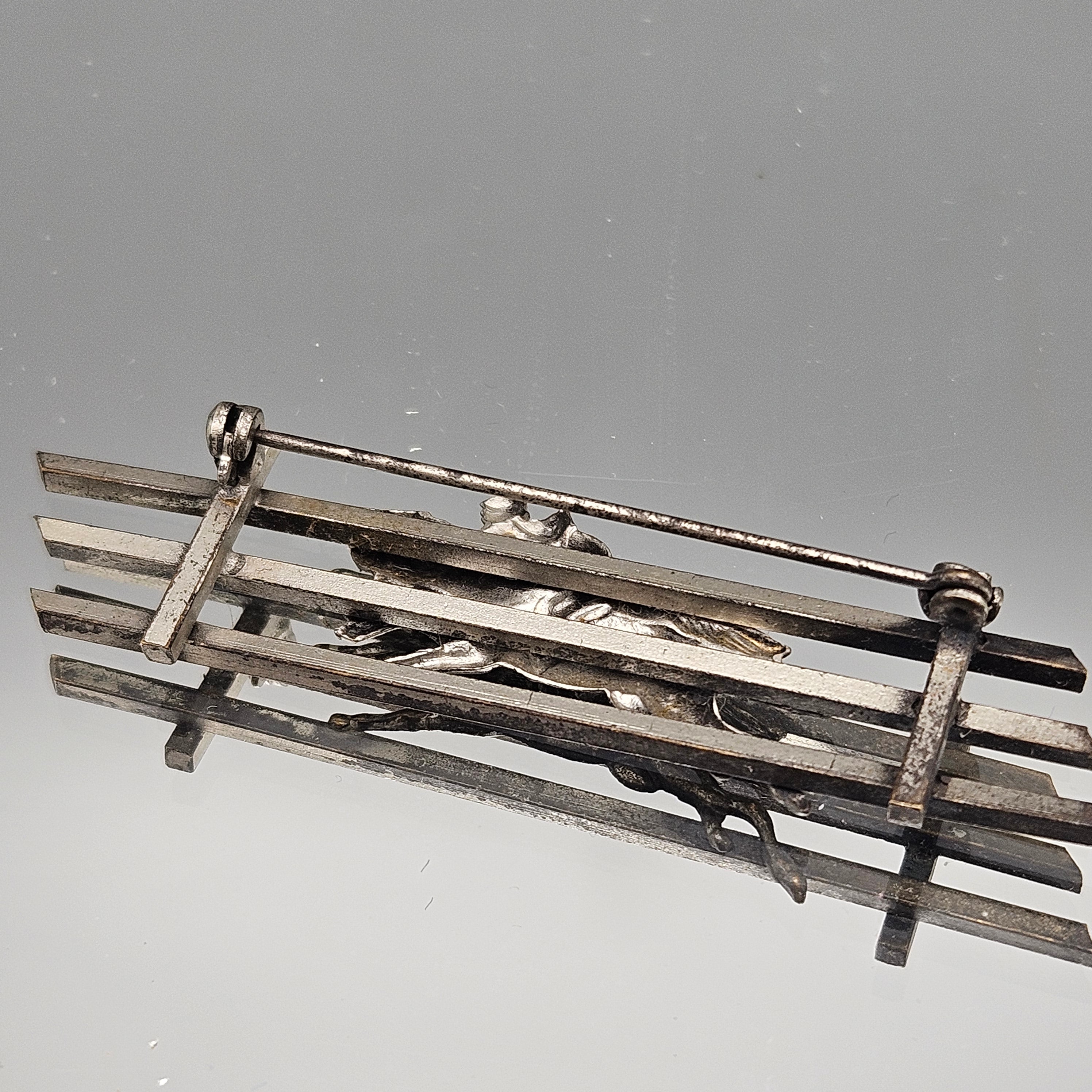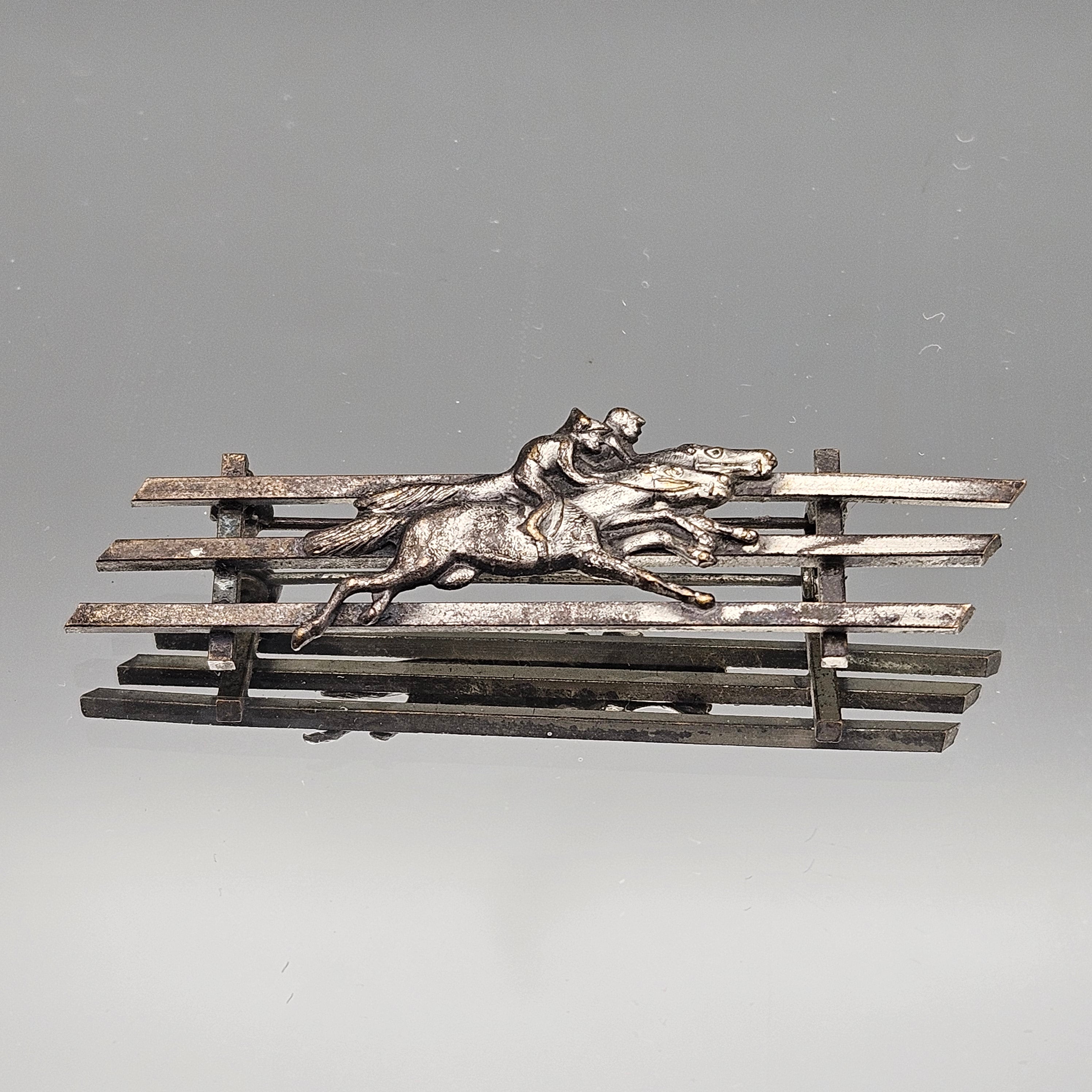 Vintage Equestrian Pin - Horses and Fence