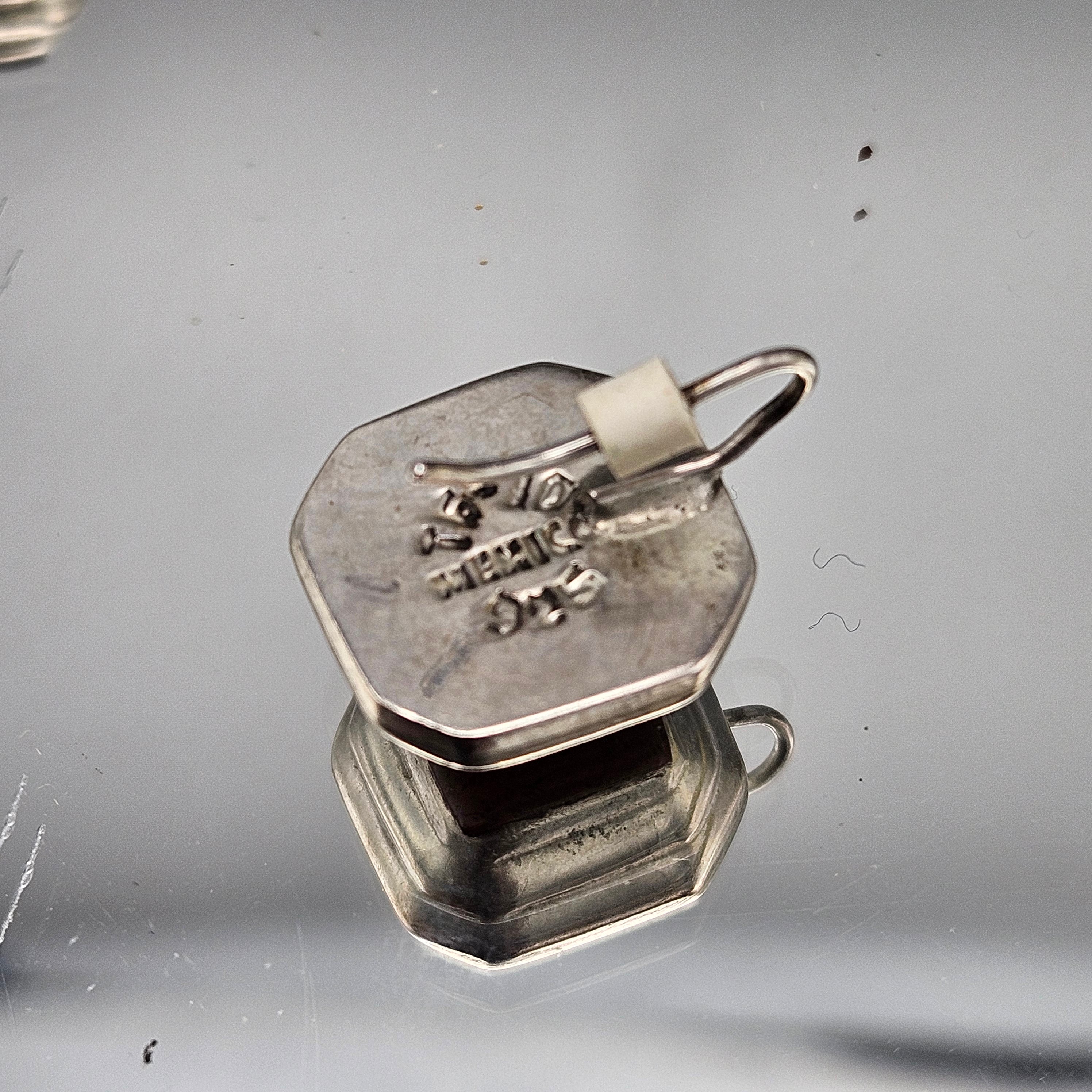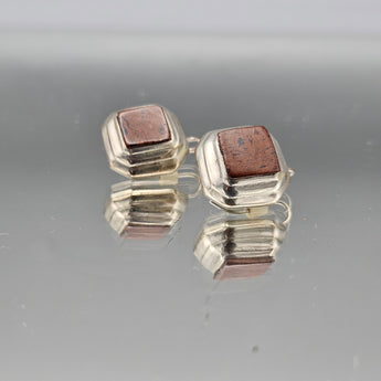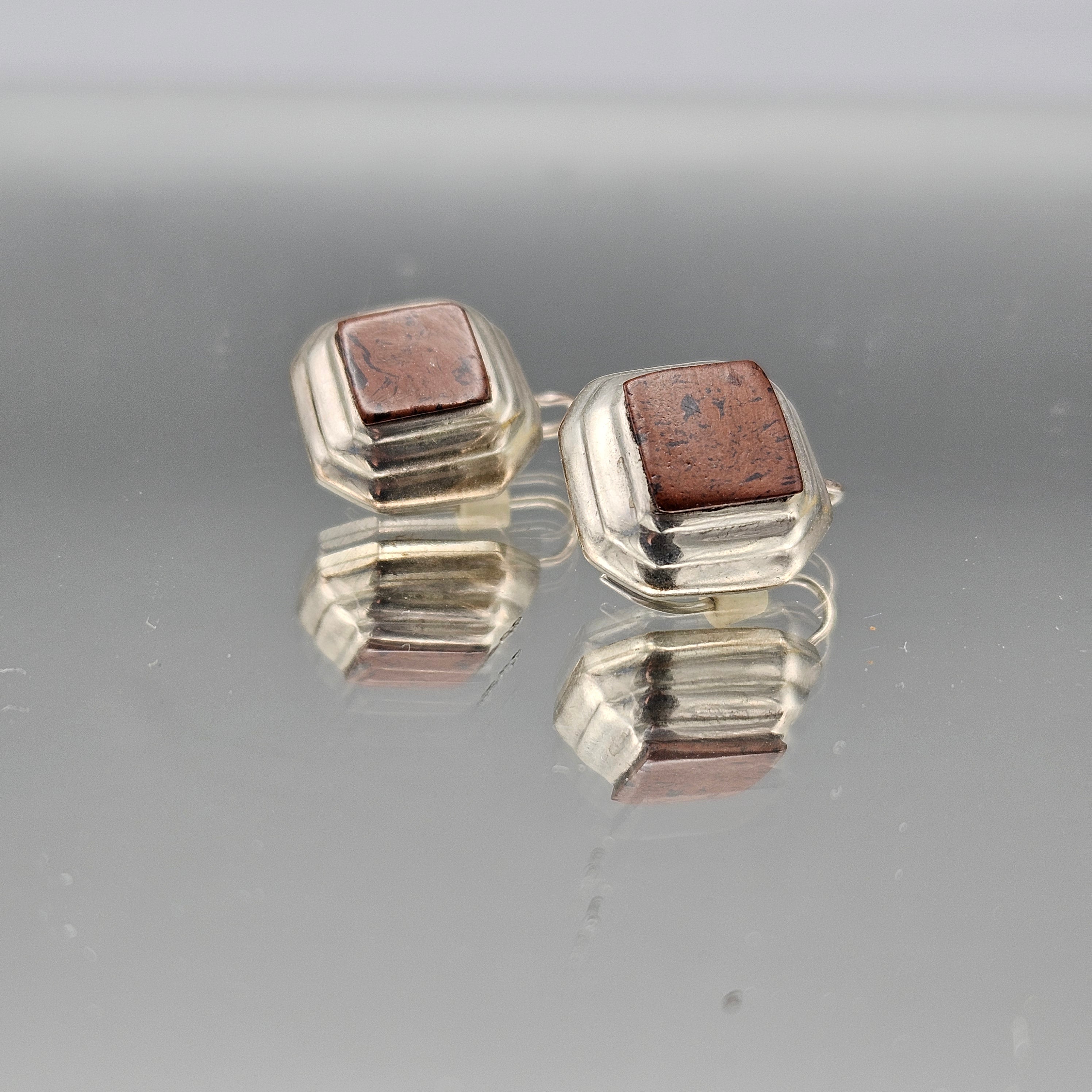 Vintage Mexican Sterling Silver Earrings with Brown Stone
