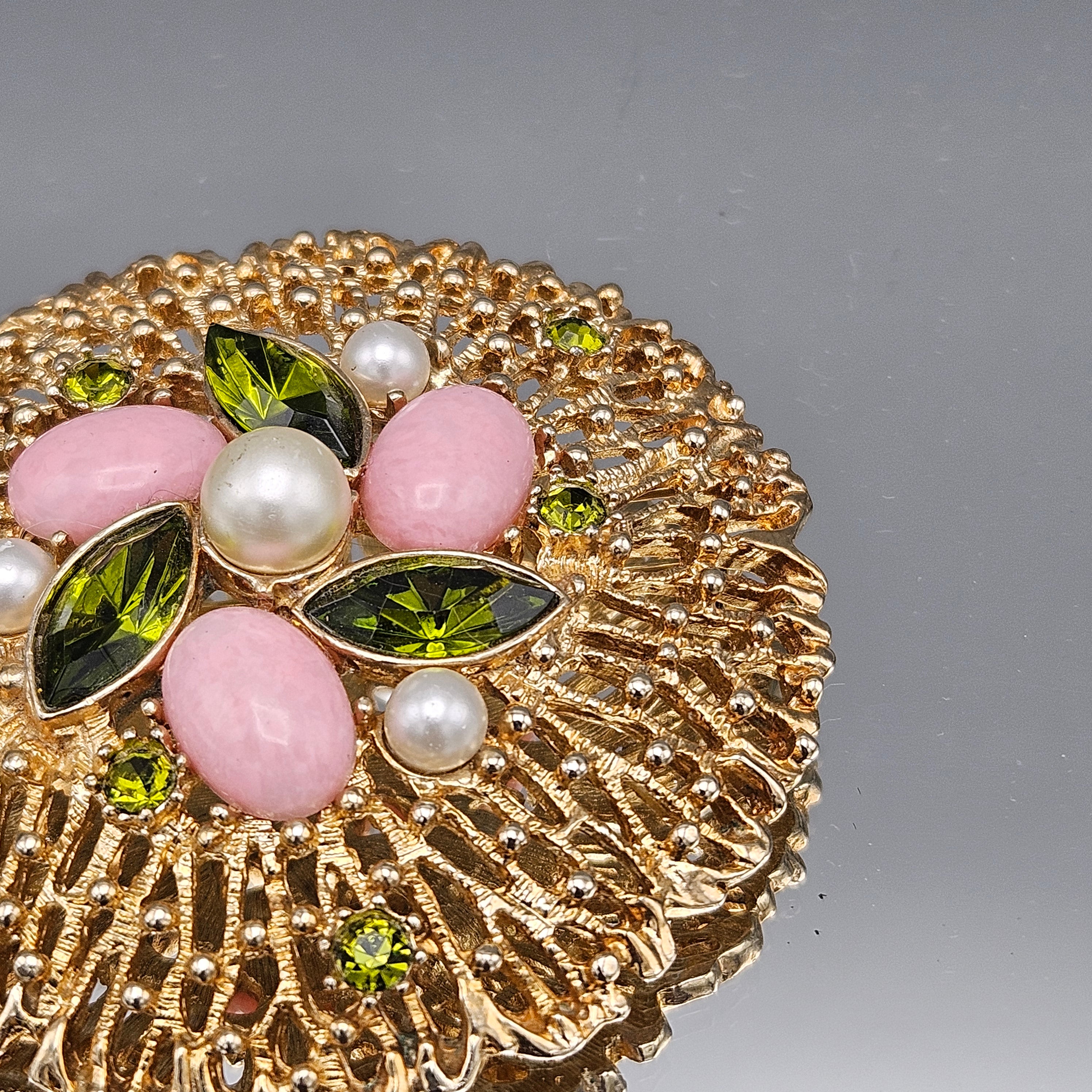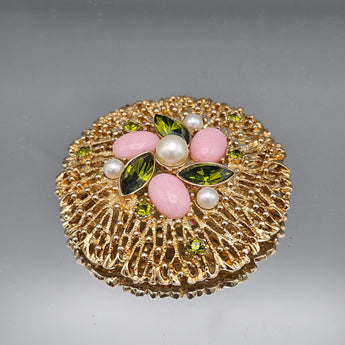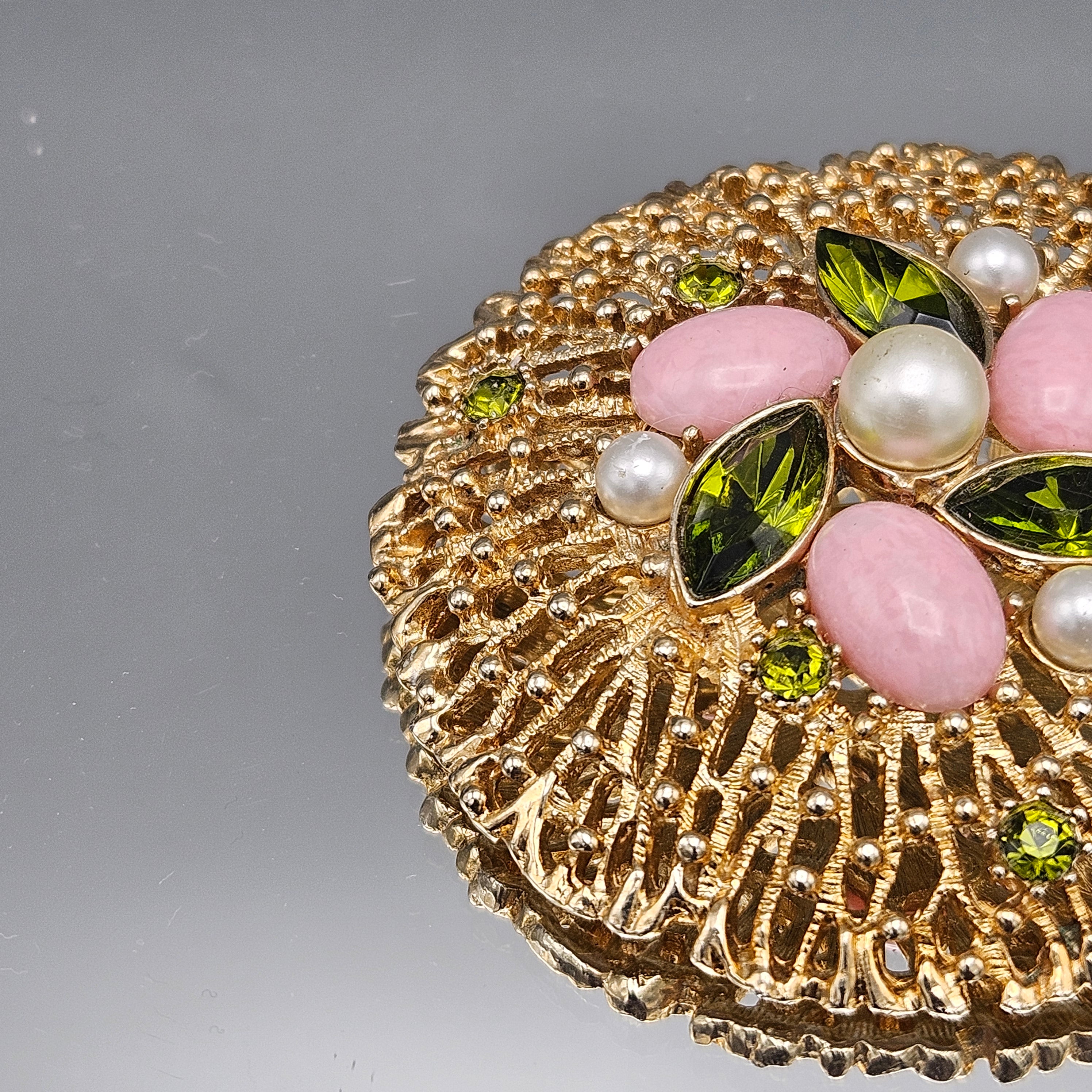 Vintage Sarah Coventry Pin with Green, Pink & Faux Pearls