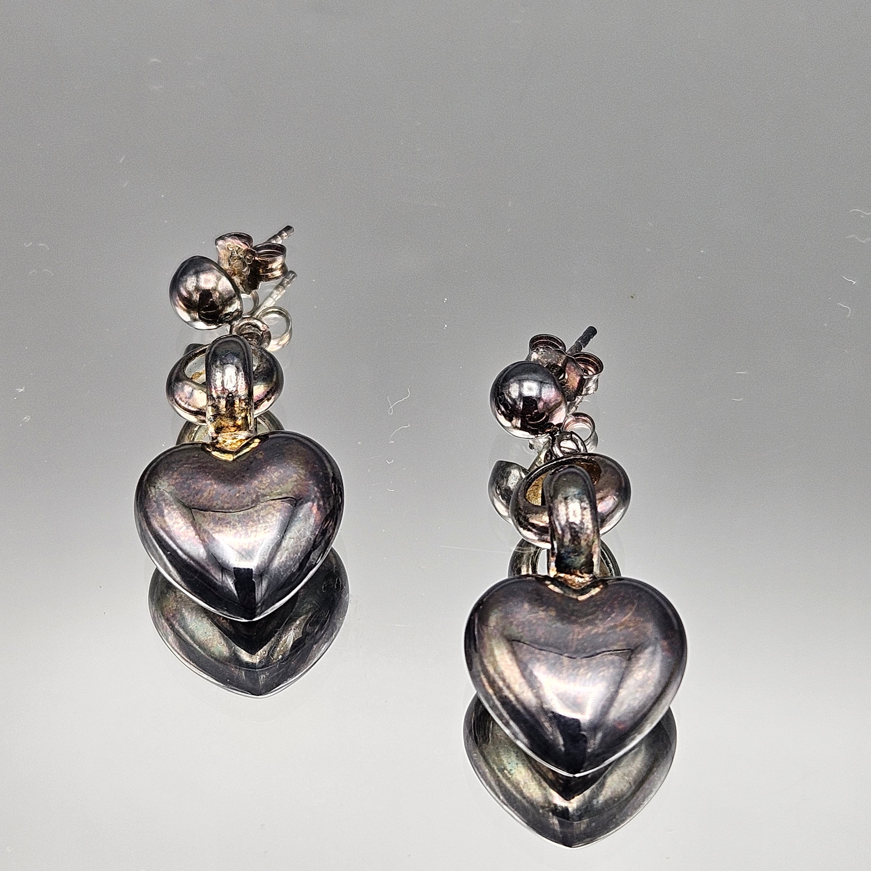 Vintage Sterling Silver Puffy Heart Earrings