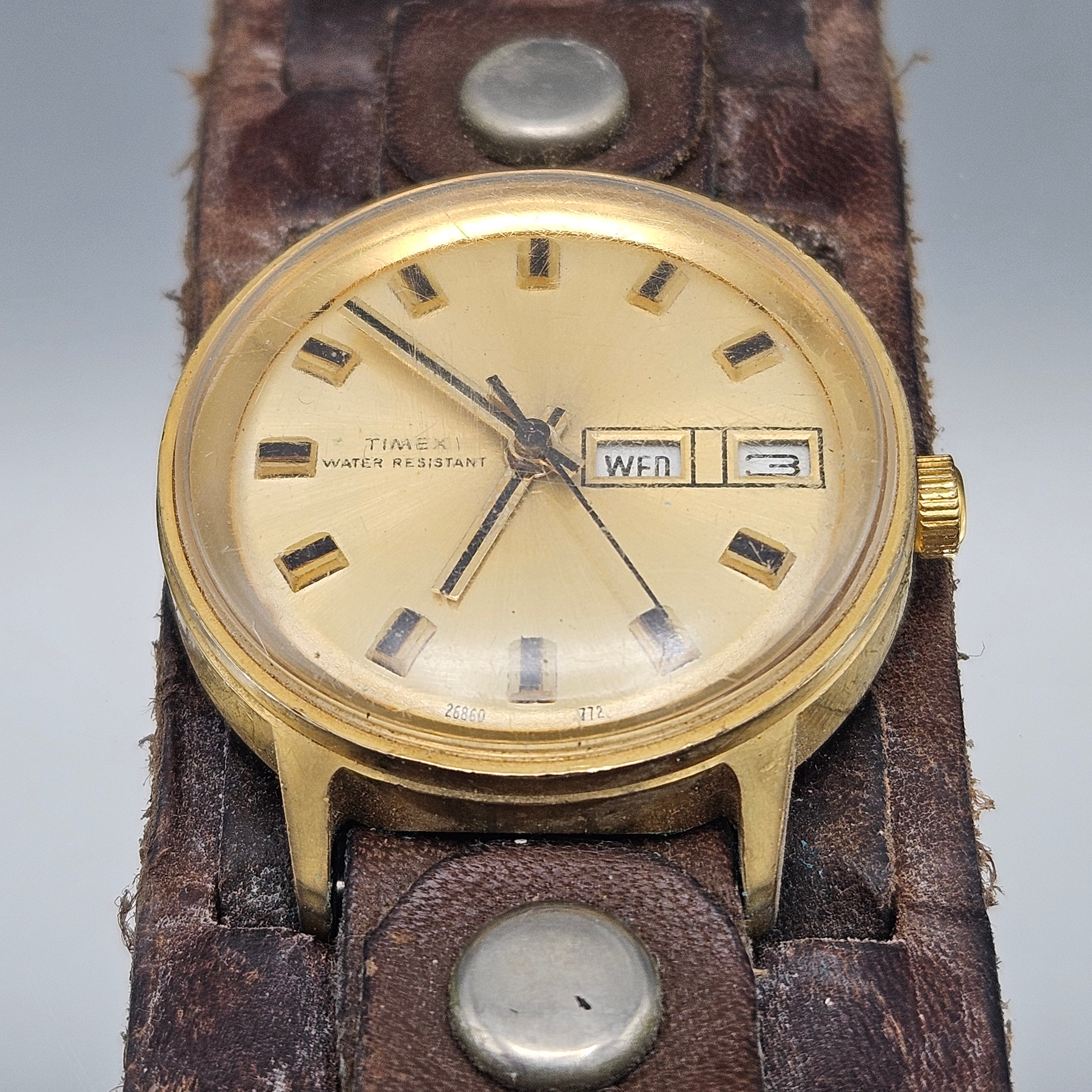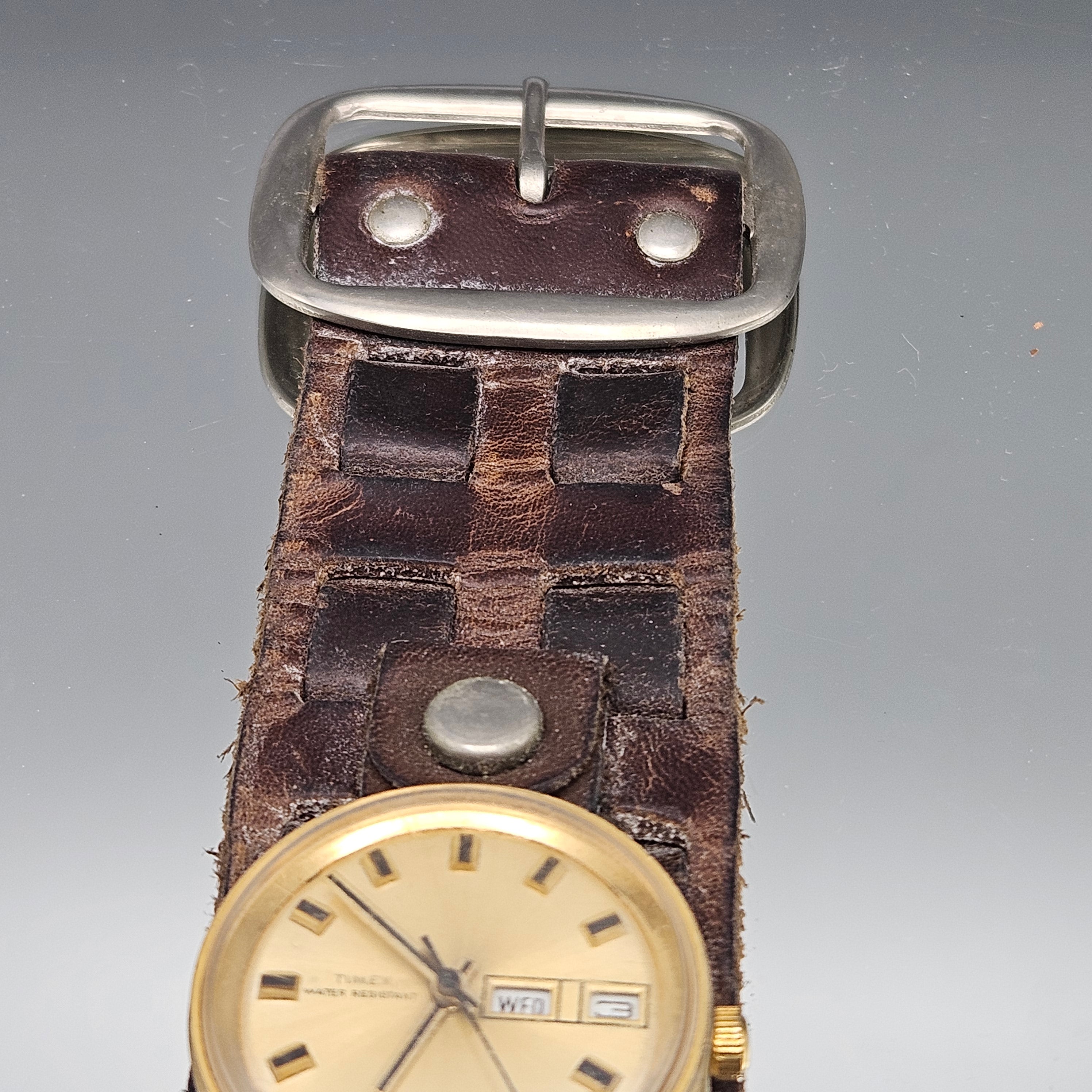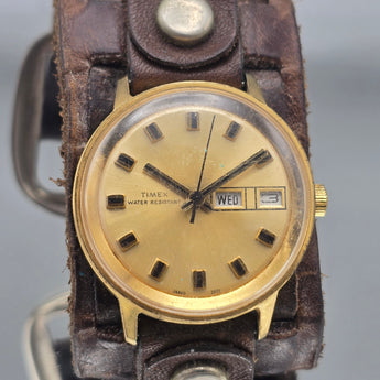 Vintage Timex Watch with Wide Leather Band