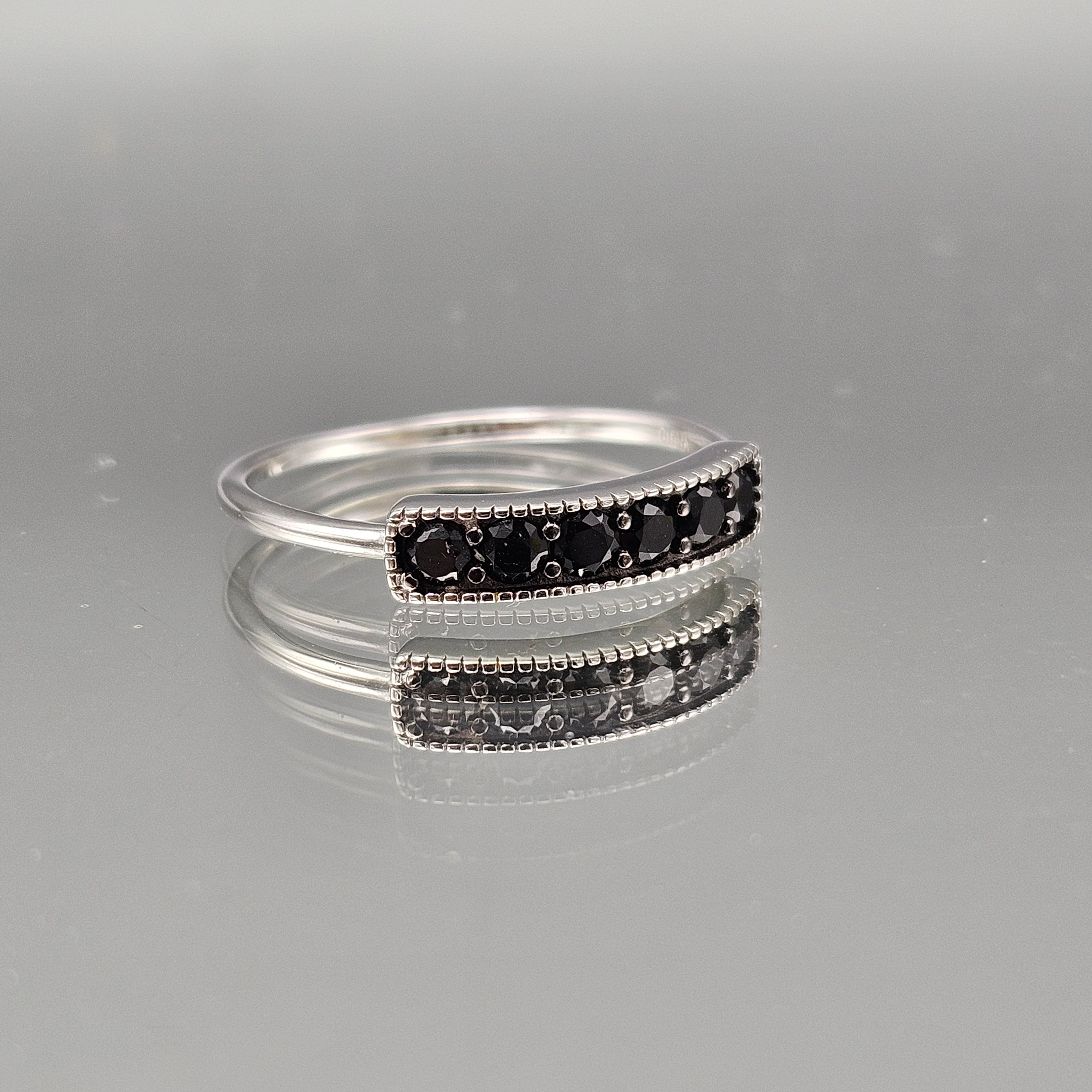 YGI Sterling Silver Black Crystal Band Ring - Size 8