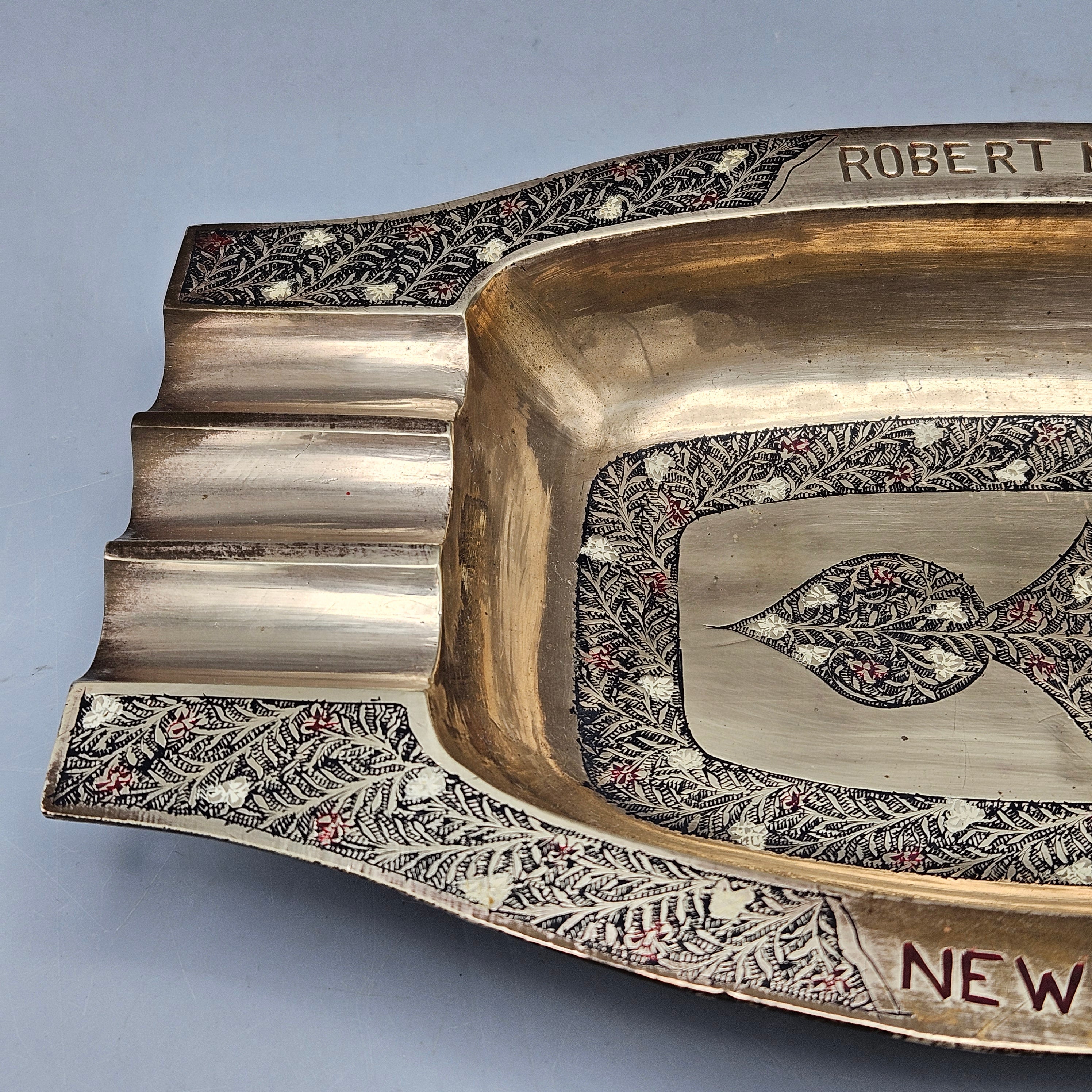 Large Vintage Indian Chased Brass Cigar Ashtray