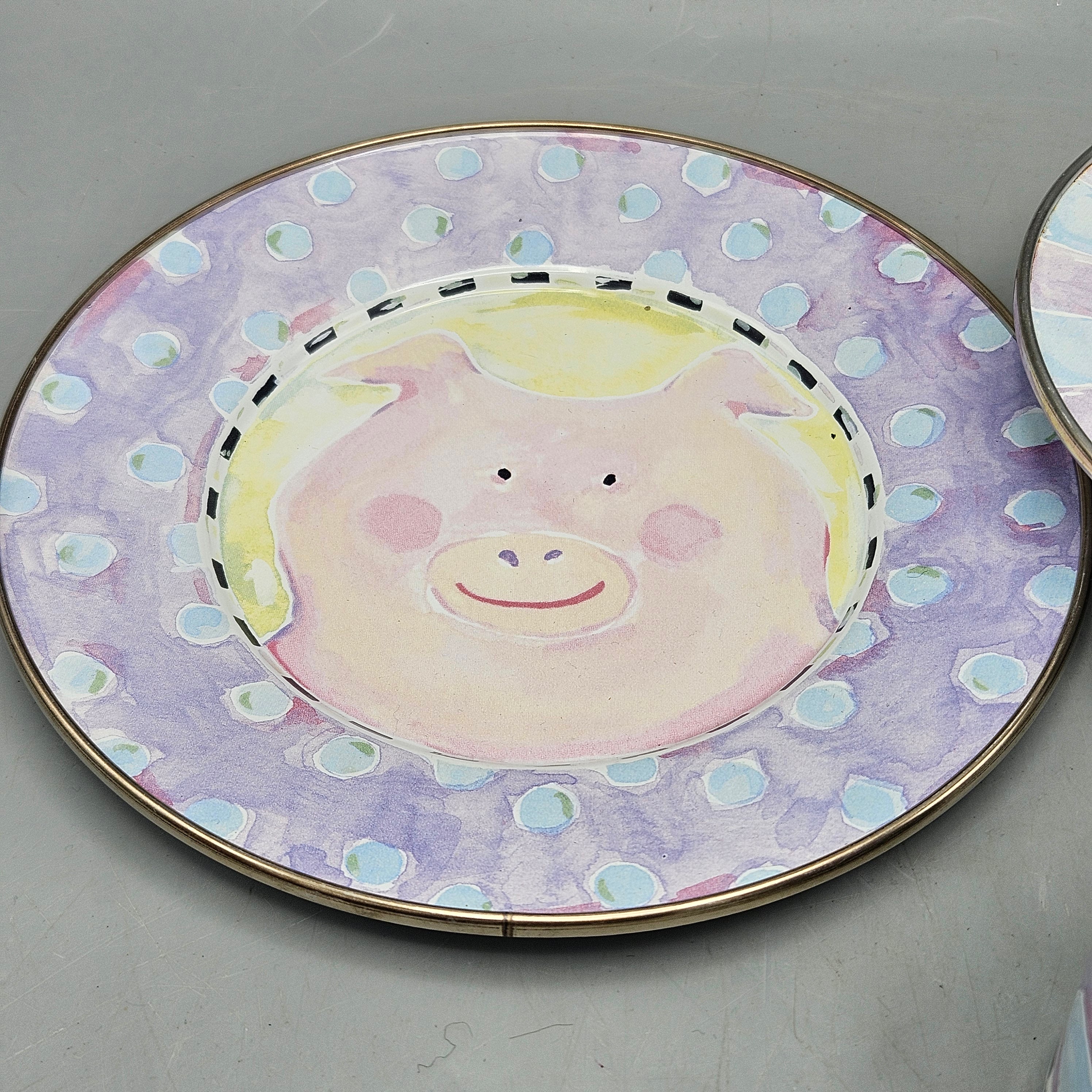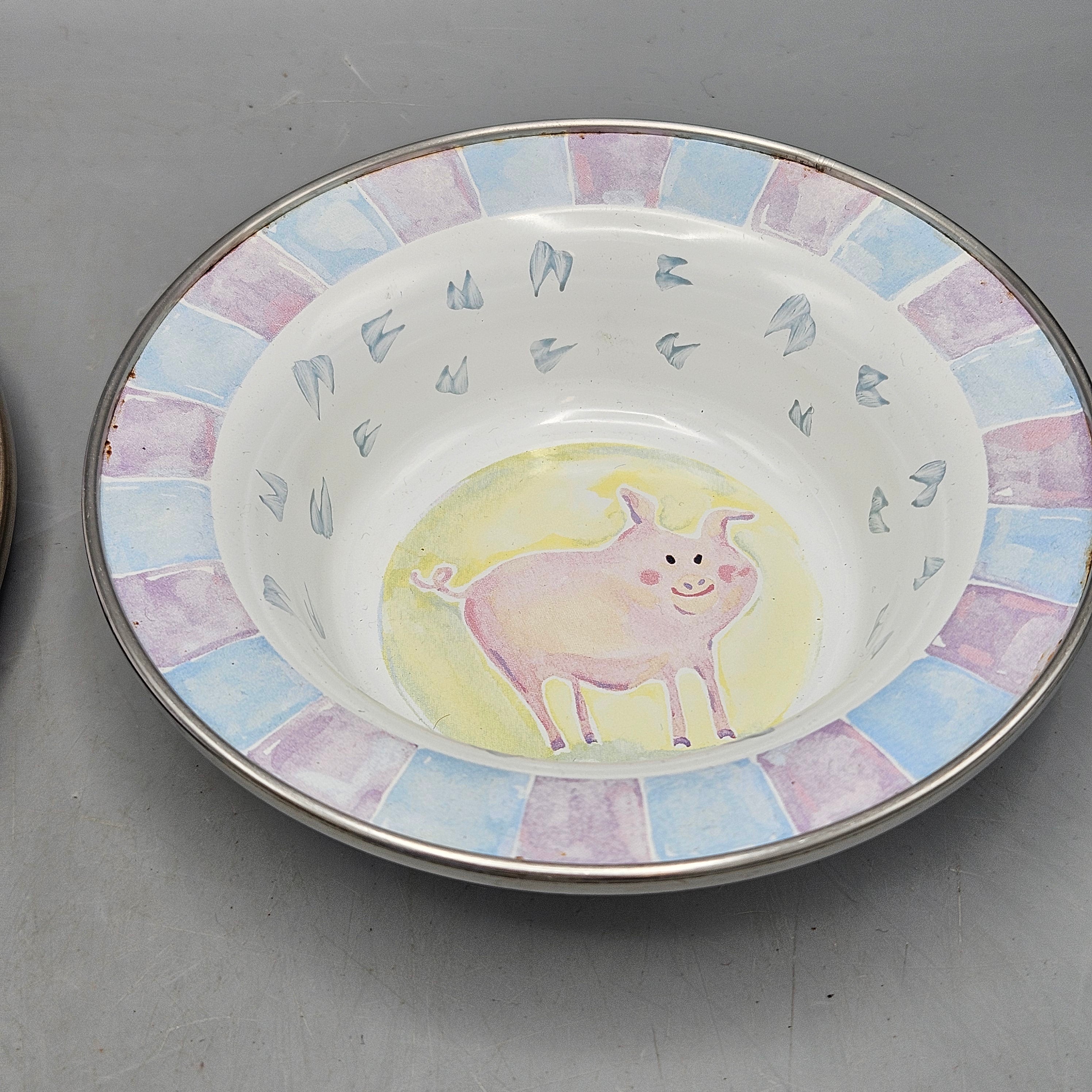 MacKeznie Childs Pig Enamel Plate, Bowl and Cup - Child's Set