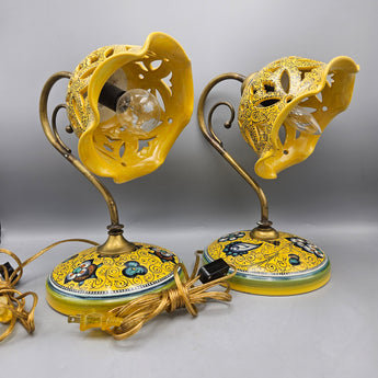 Pair Italian Pottery Wall Sconces with Reticulated Shades