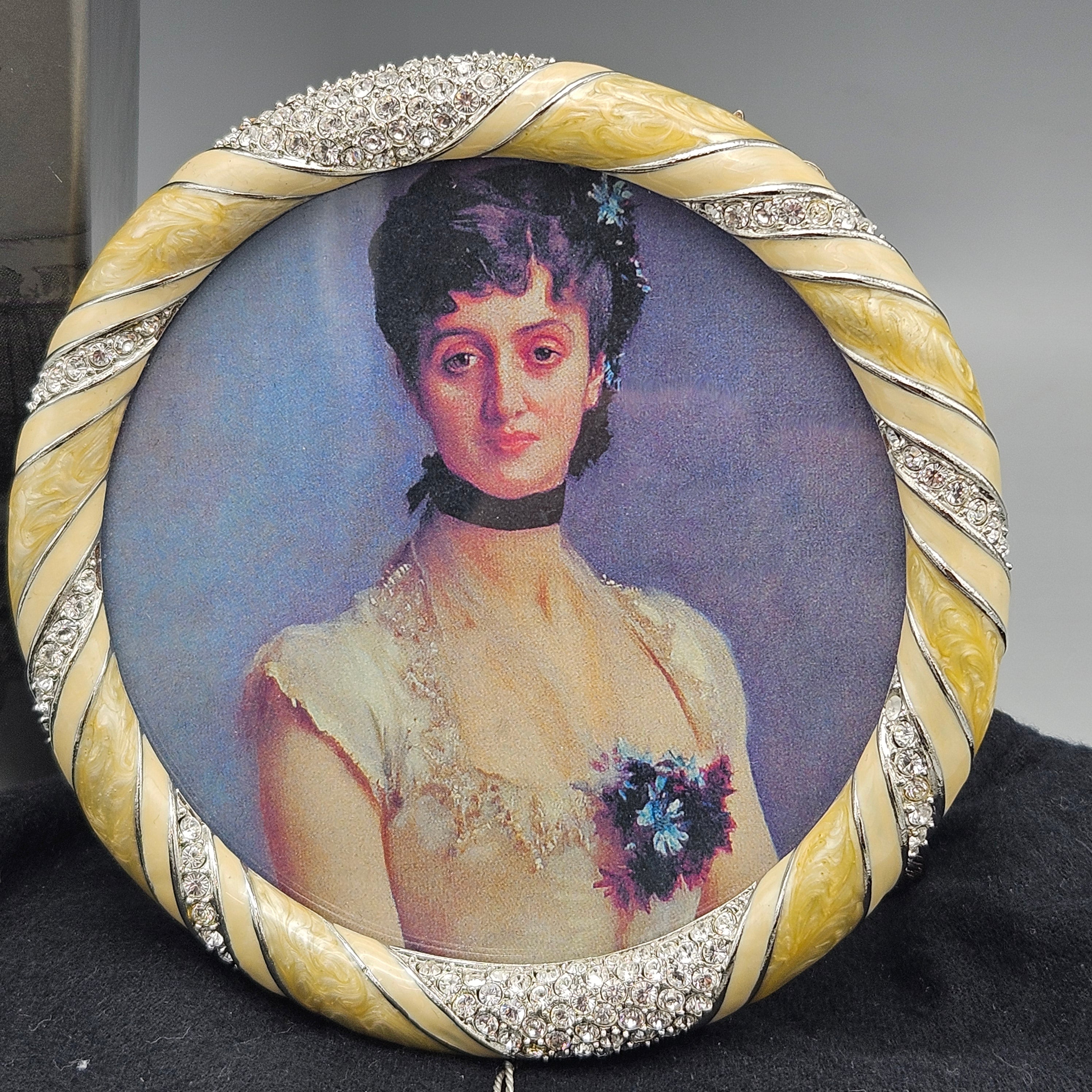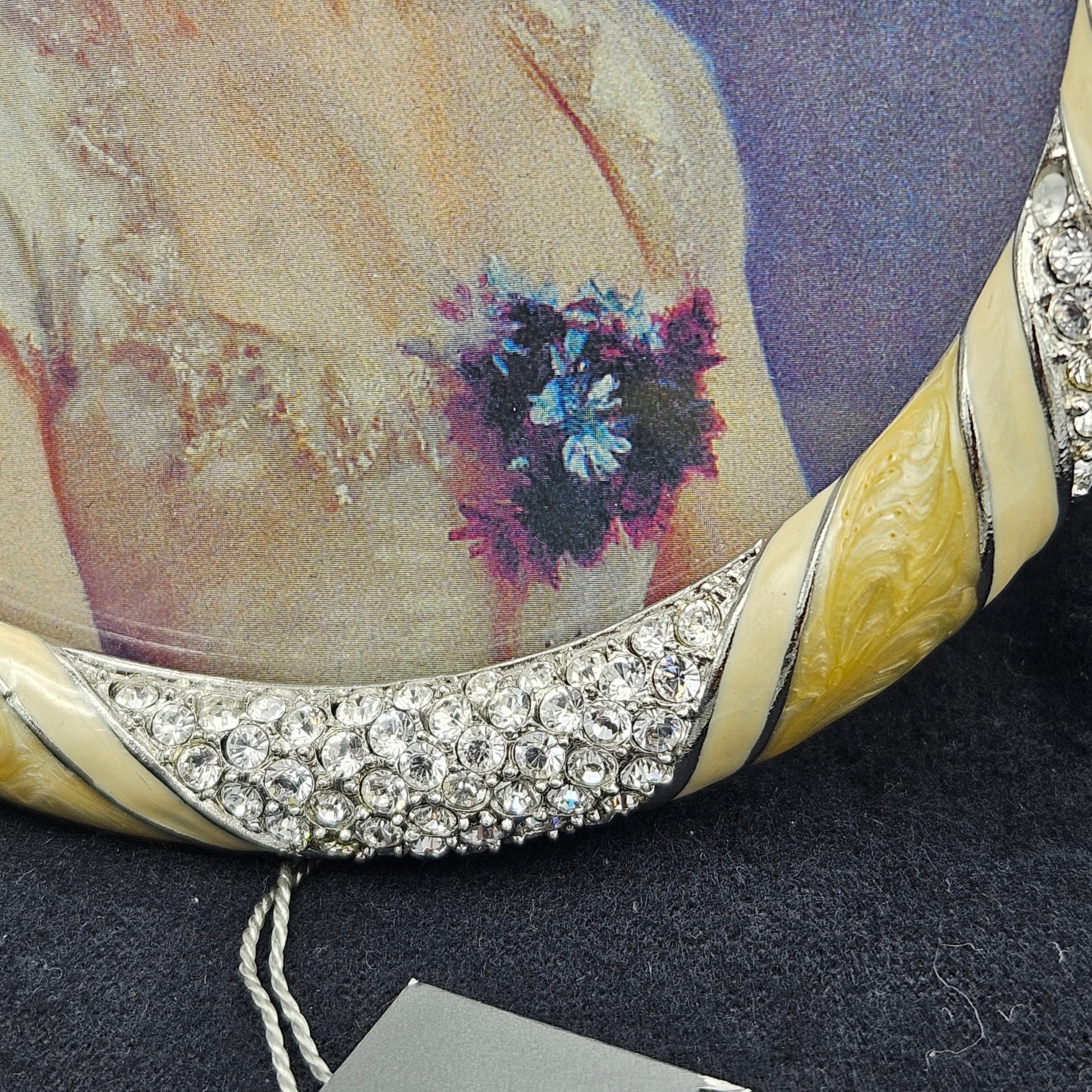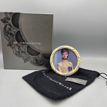 Jay Strongwater Ivory Enamel and Rhinestone Round Picture Frame