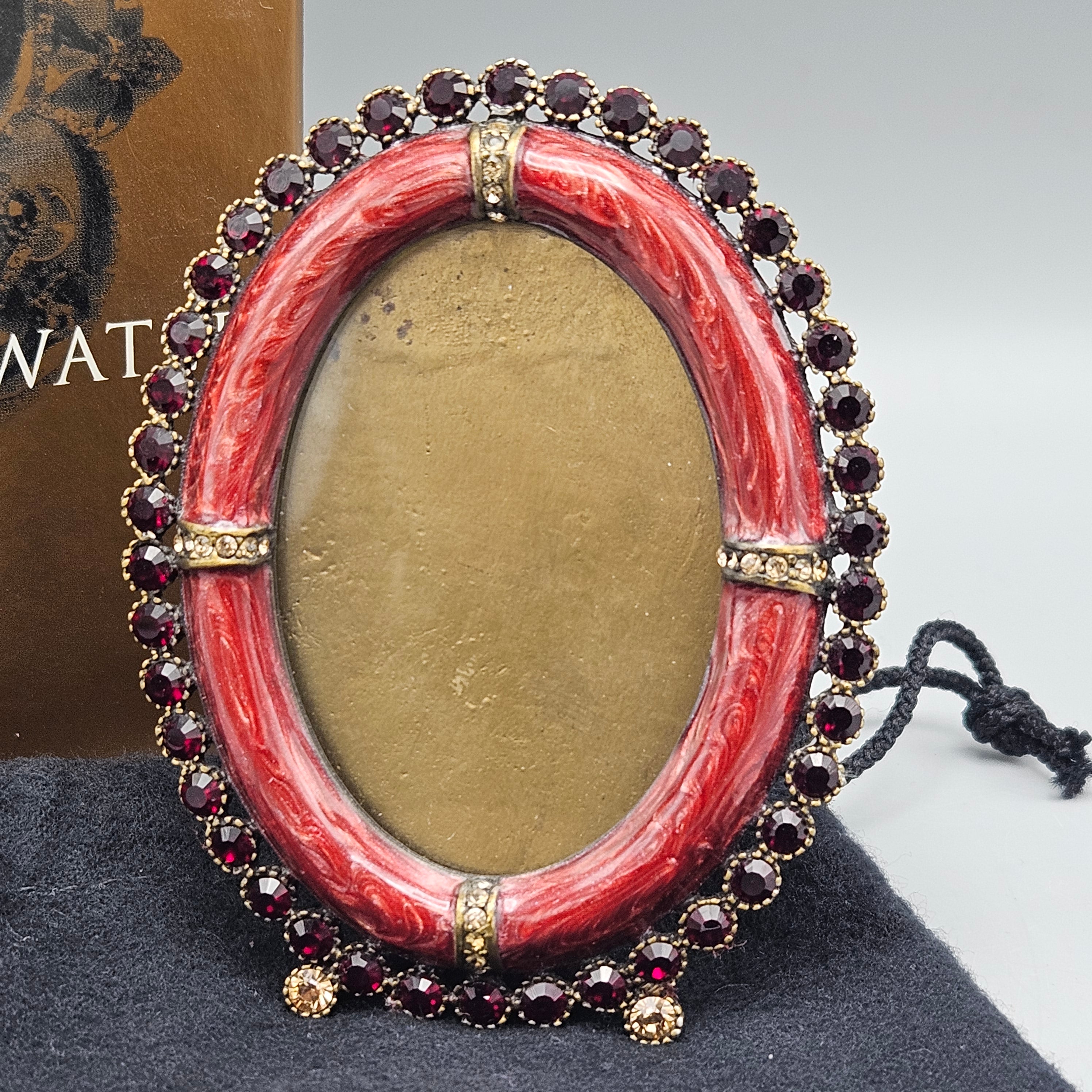 Jay Strongwater Red Enamel and Rhinestone Oval Picture Frame