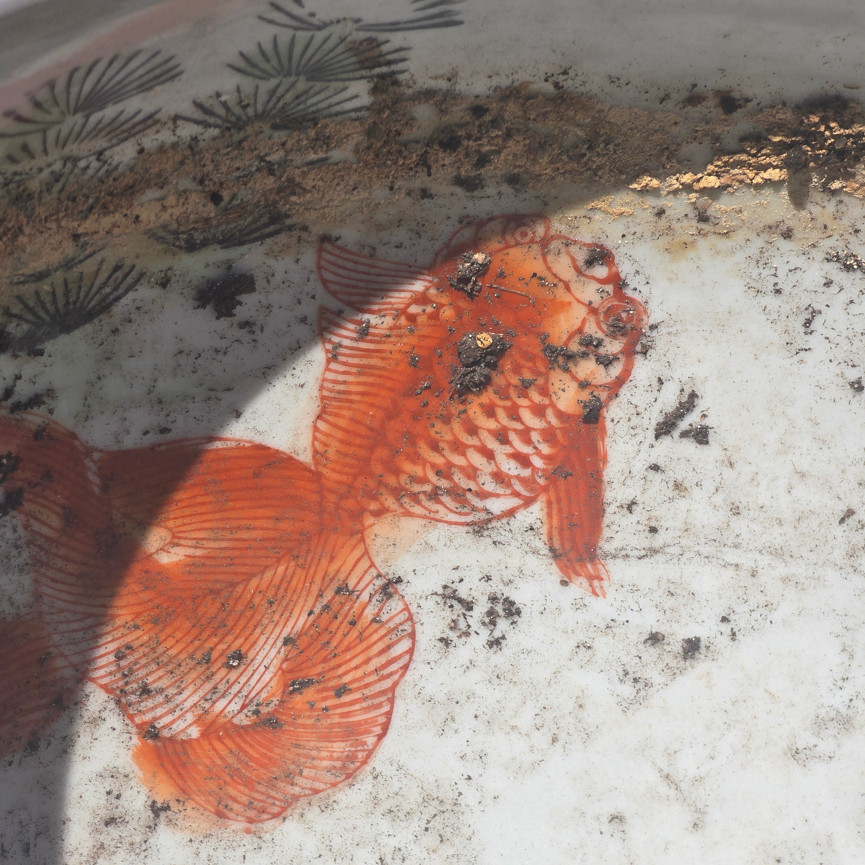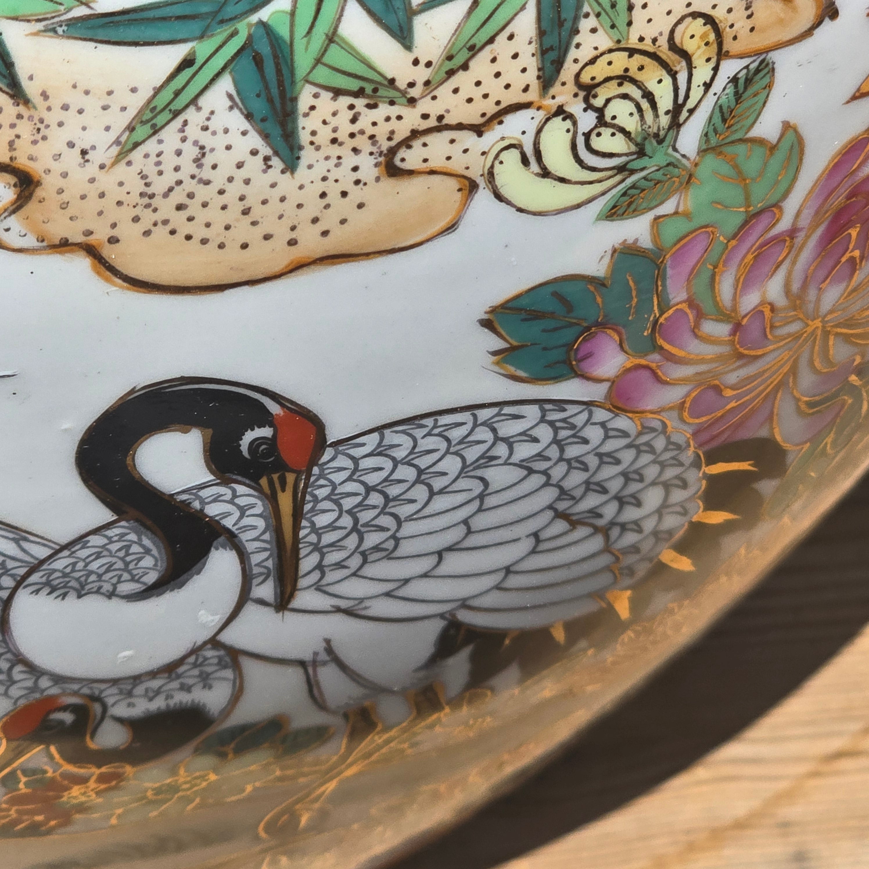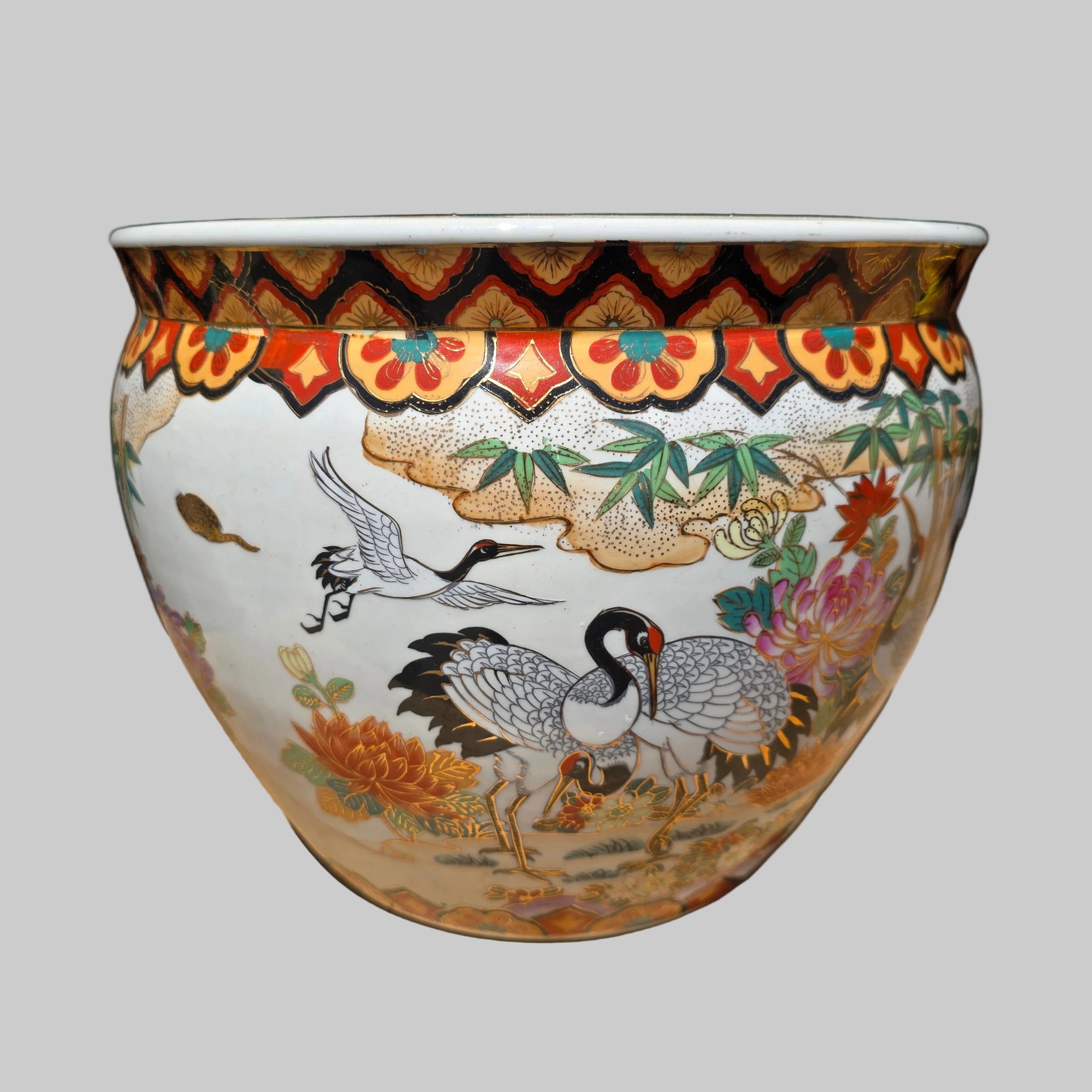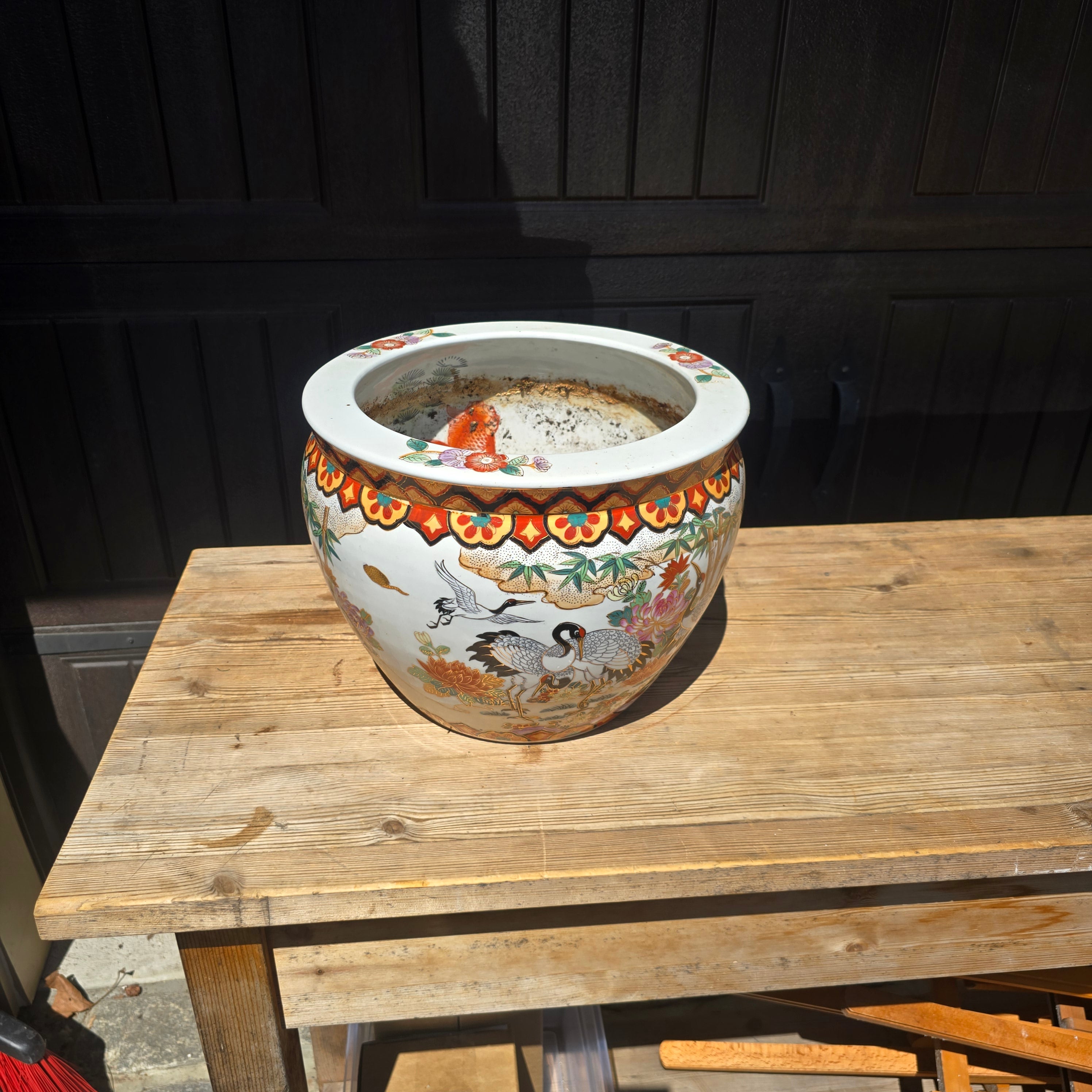 Chinese Porcelain Jardiniere with Cranes and Goldfish