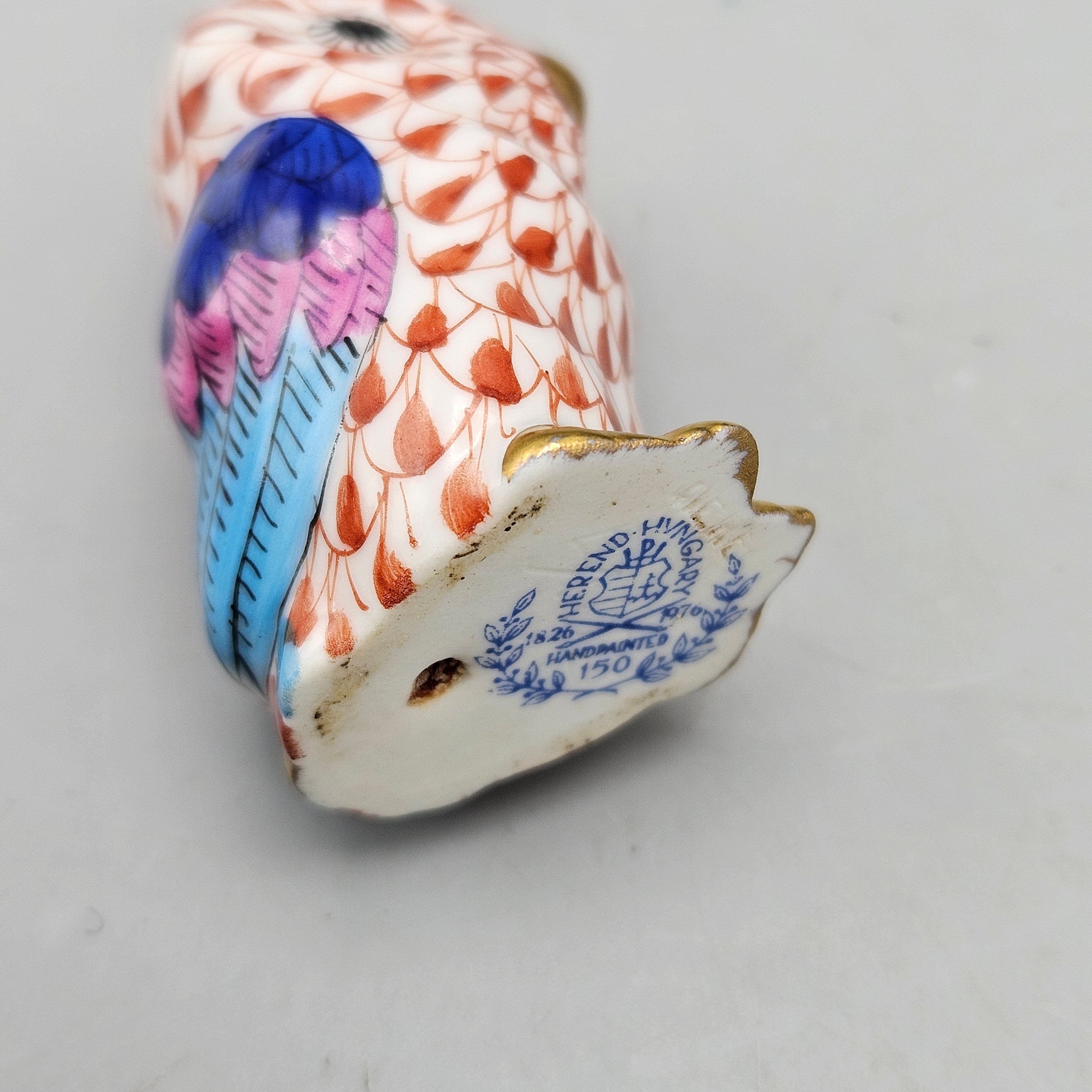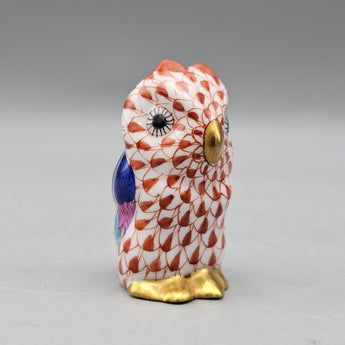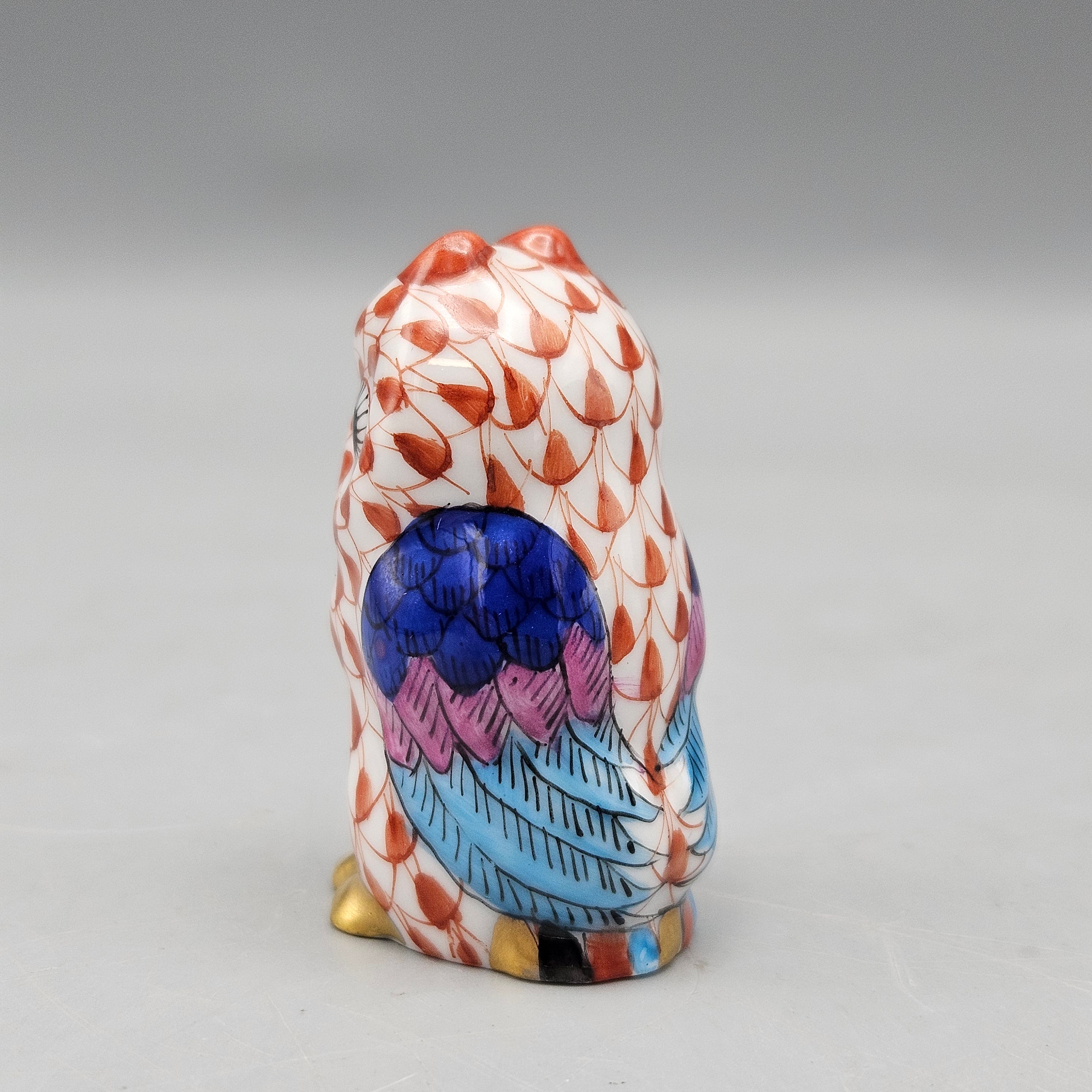 Herend Porcelain Miniature Owl Figurine with Raspberry Fishnet