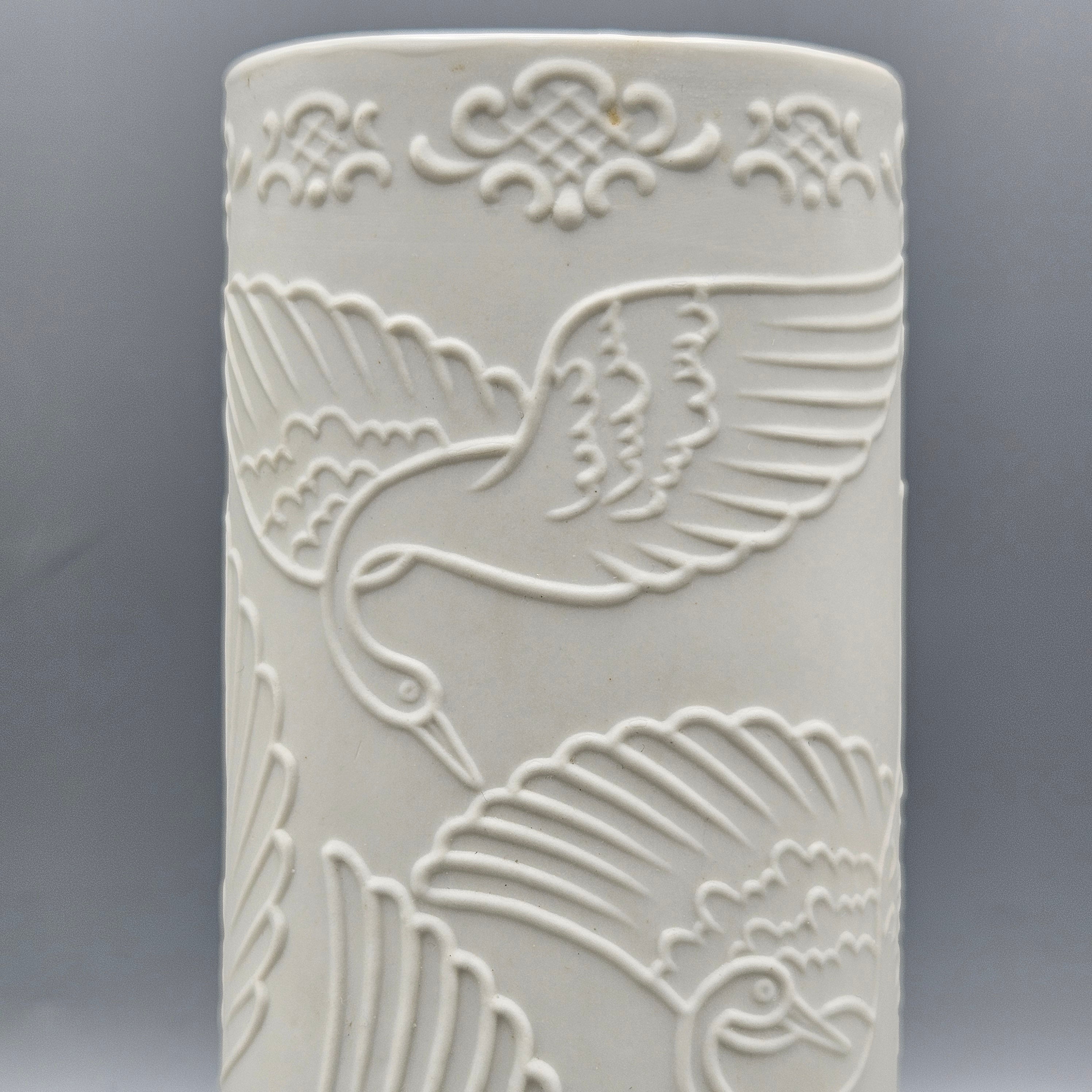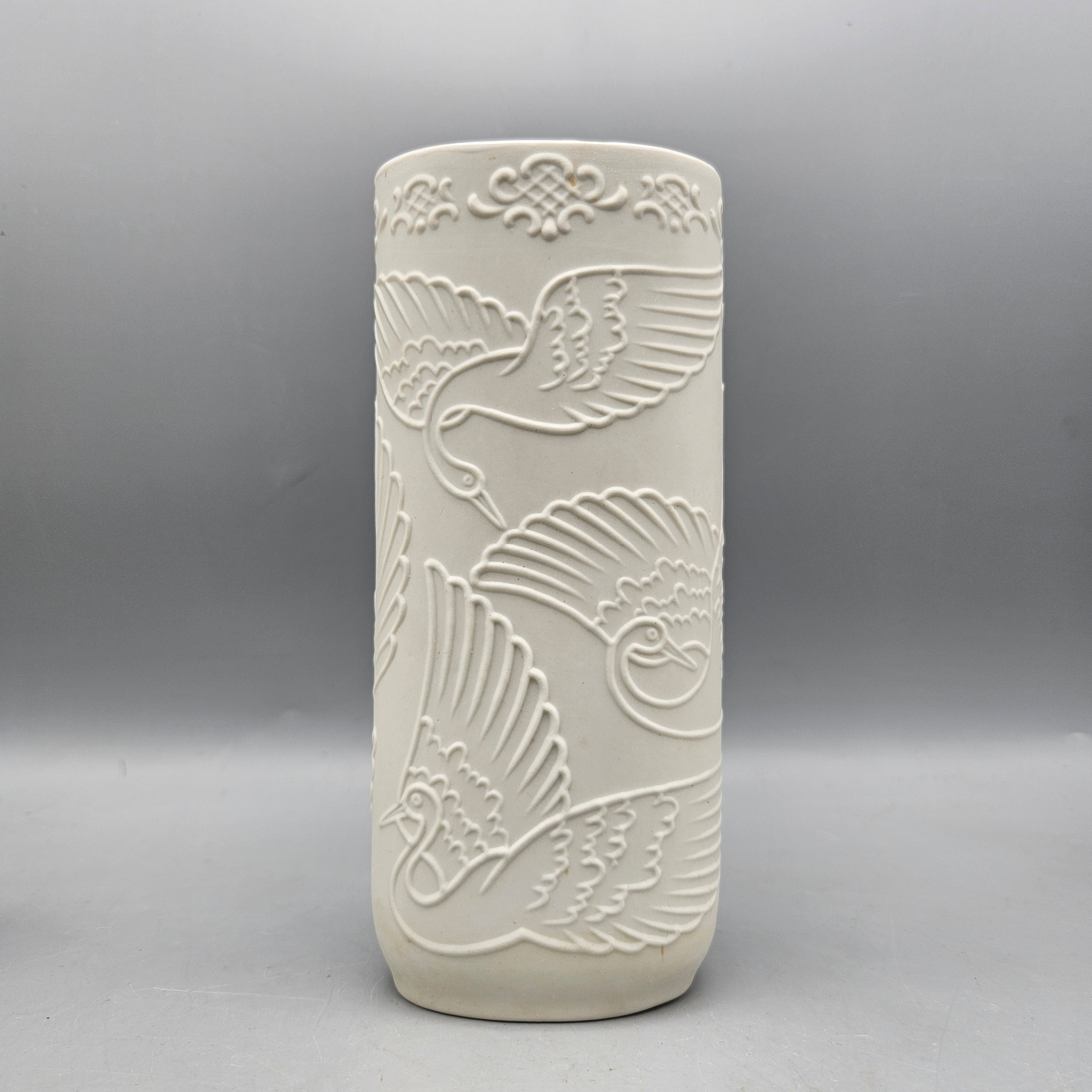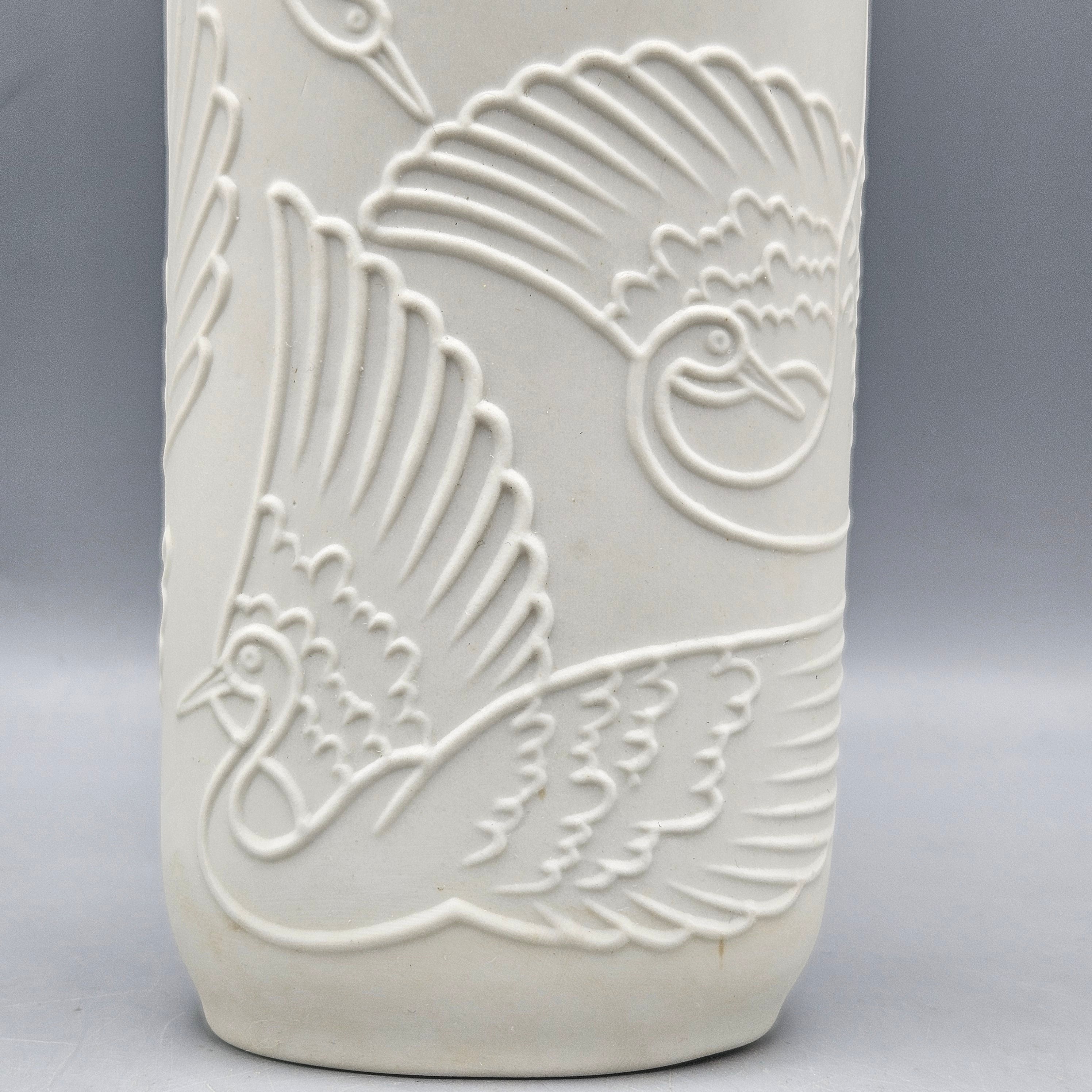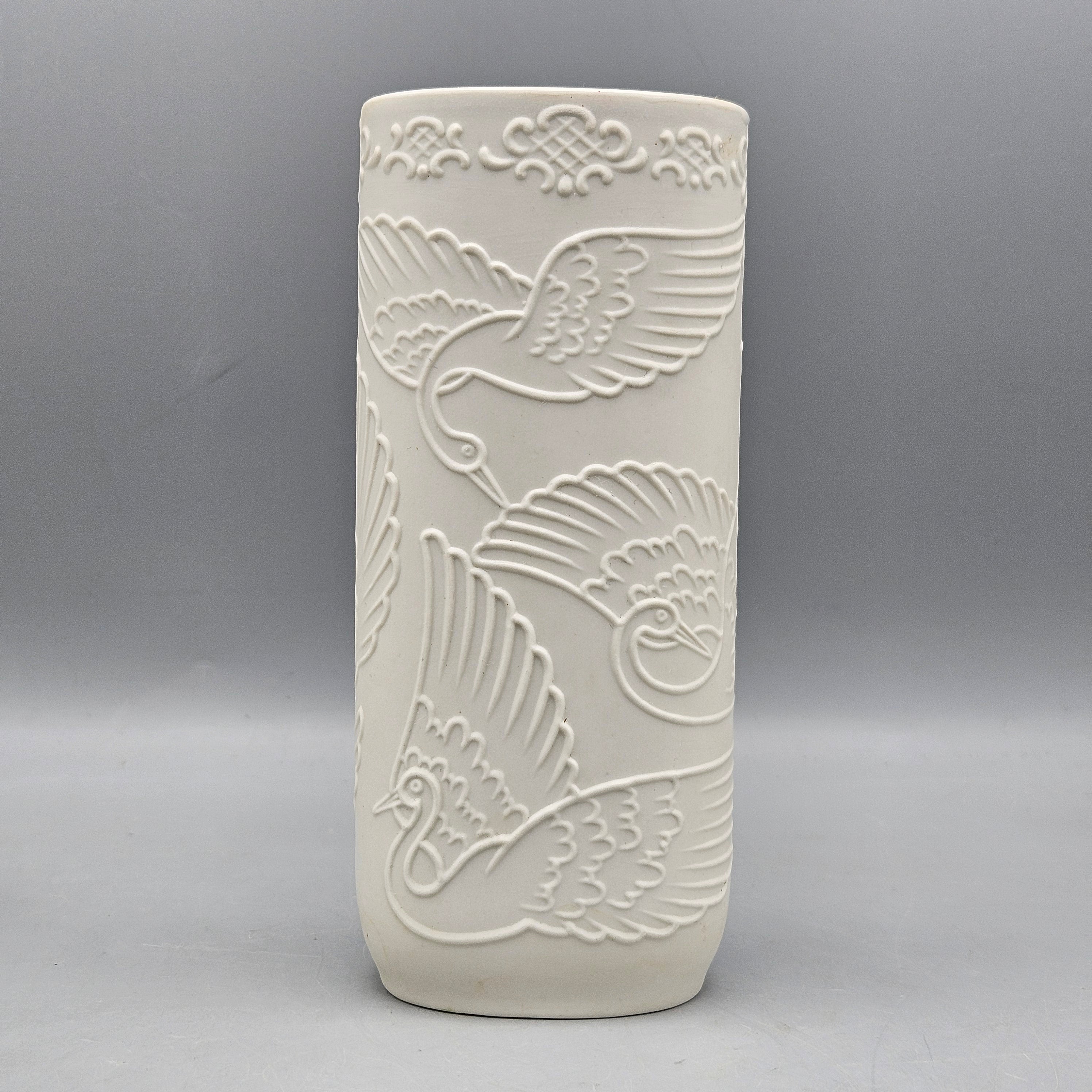 Kaiser Style White Bisque Porcelain Vase with Cranes