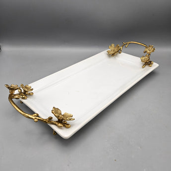 Michael Aram Style White Porcelain Tray with Gold Metal Handles