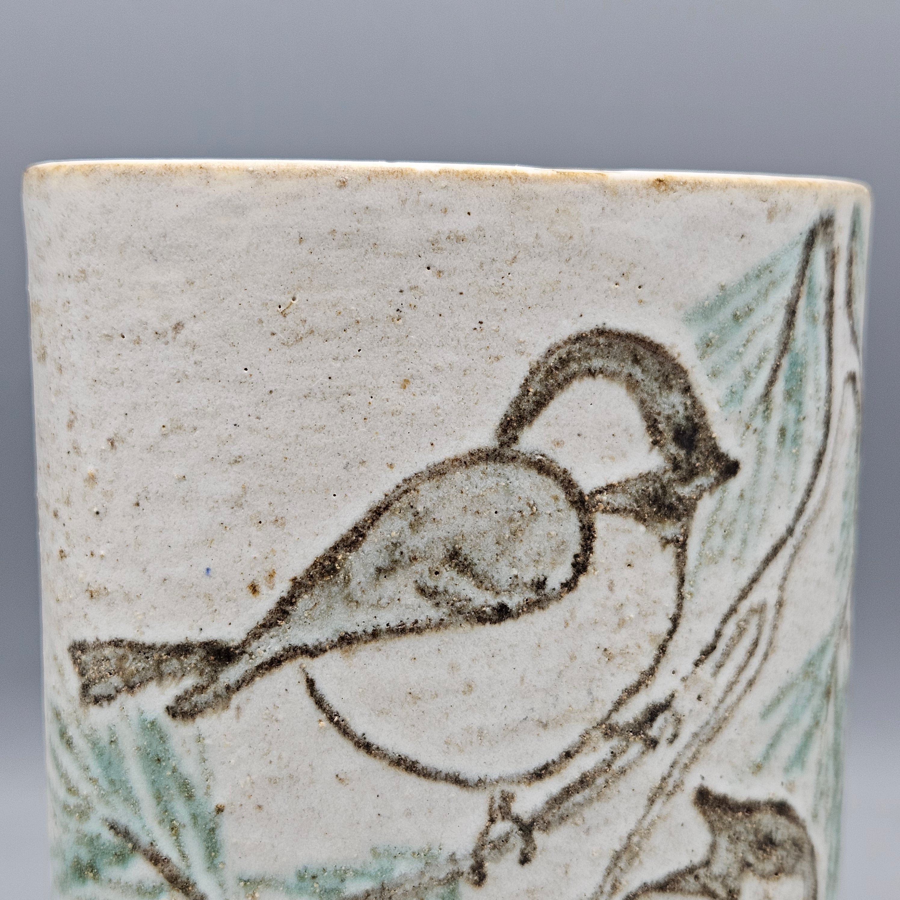 Andersen Design Studio Maine Pottery Stoneware Vase Birds on Branches