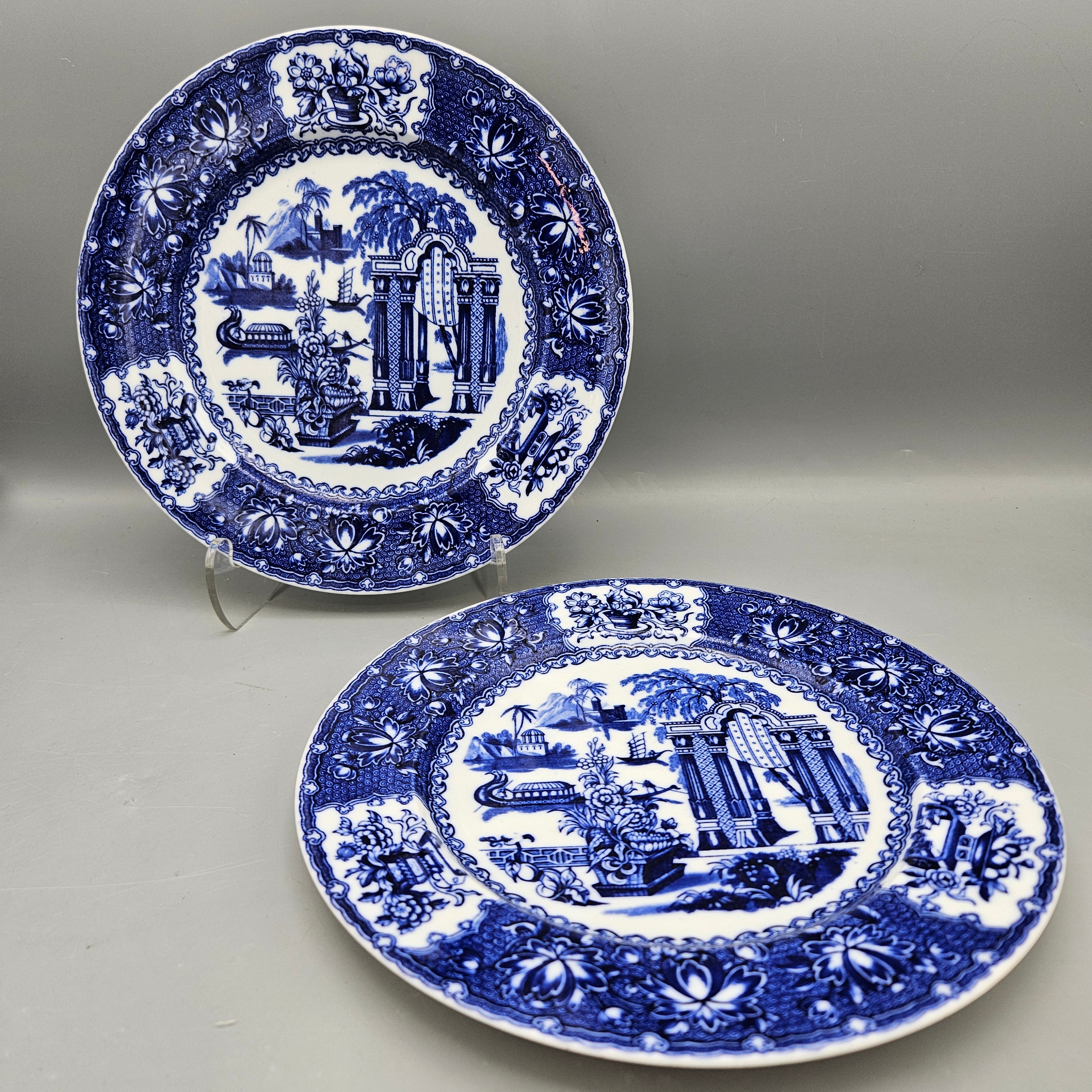 Pair of Copeland Spode Blue And White Plates In The Classic "Blue Willow" Pattern