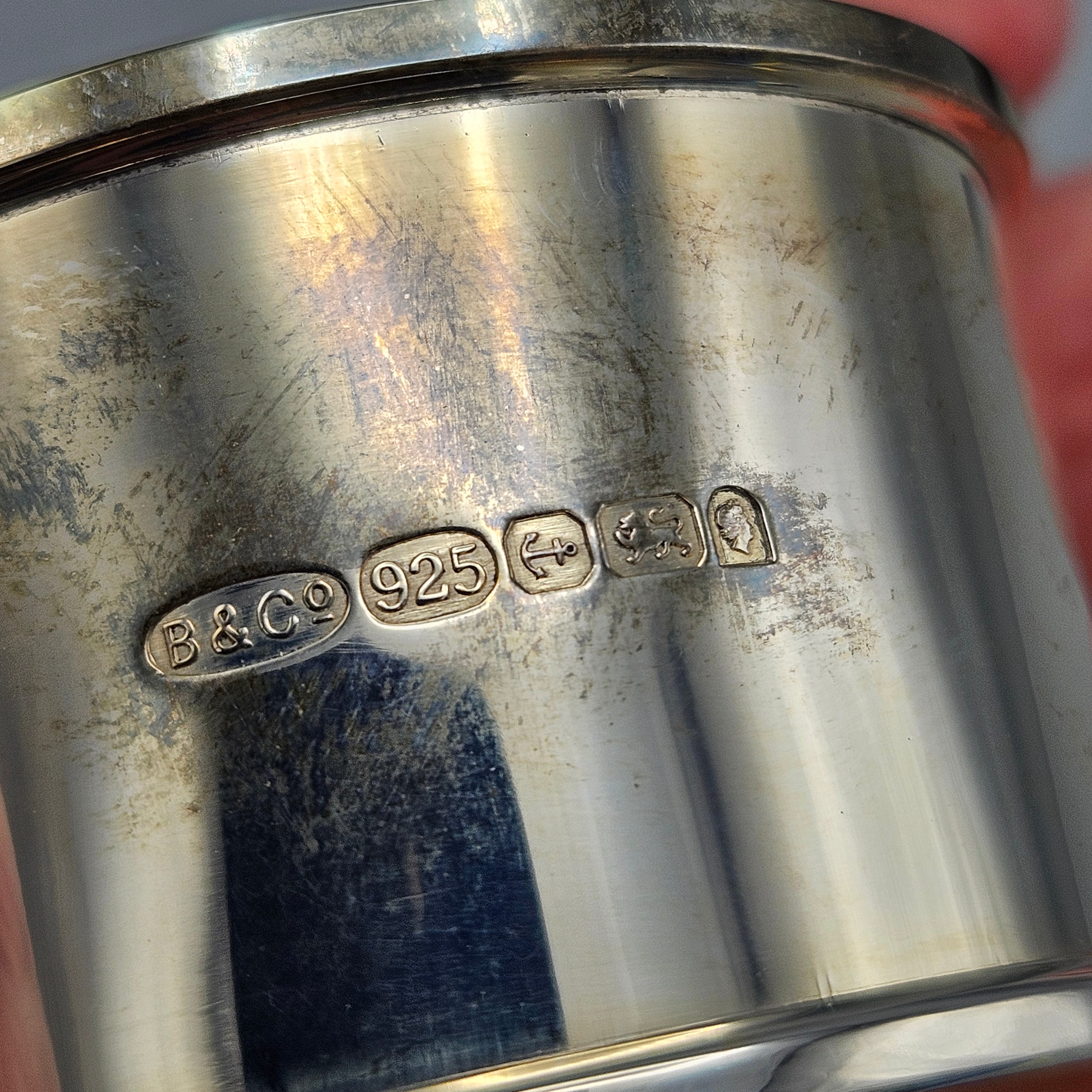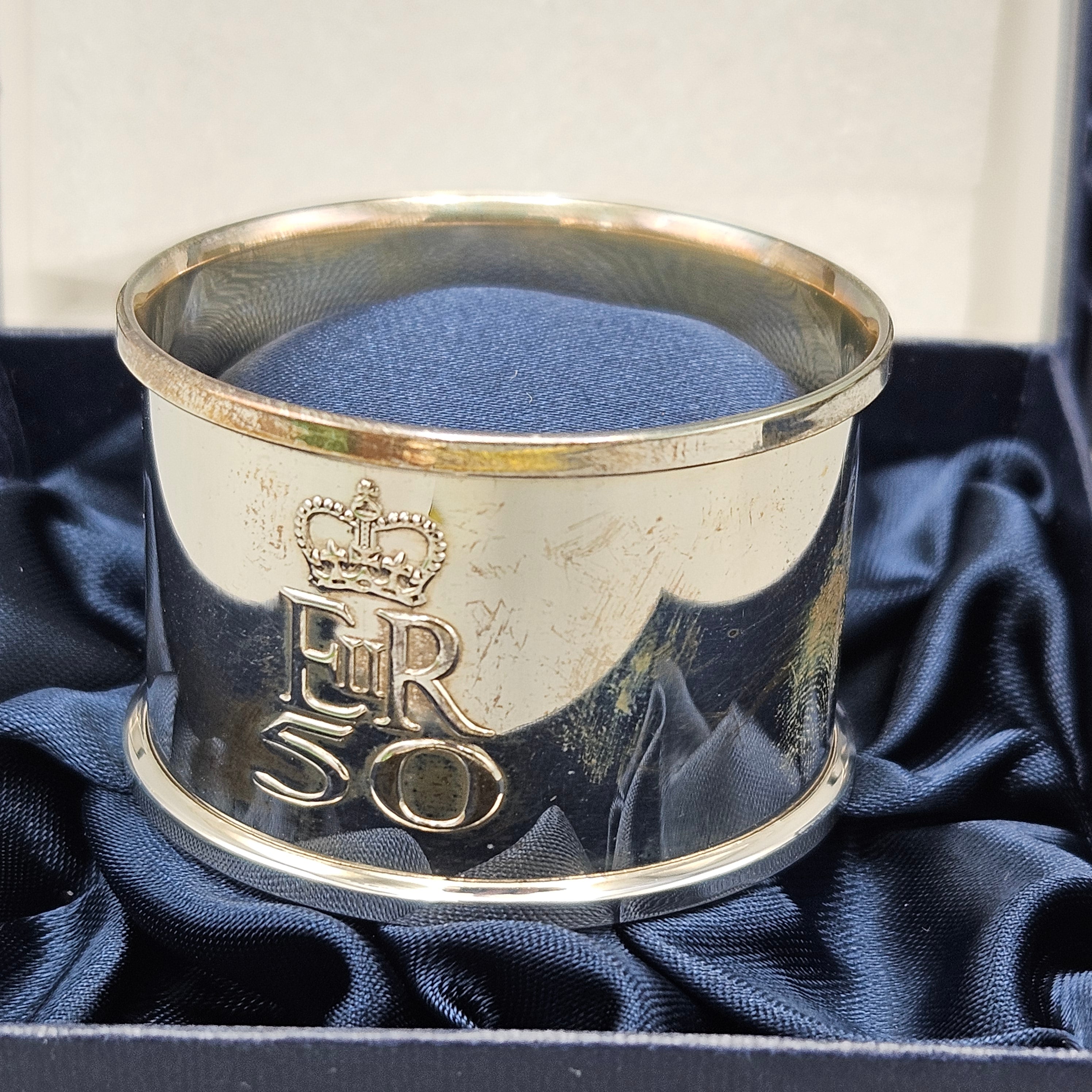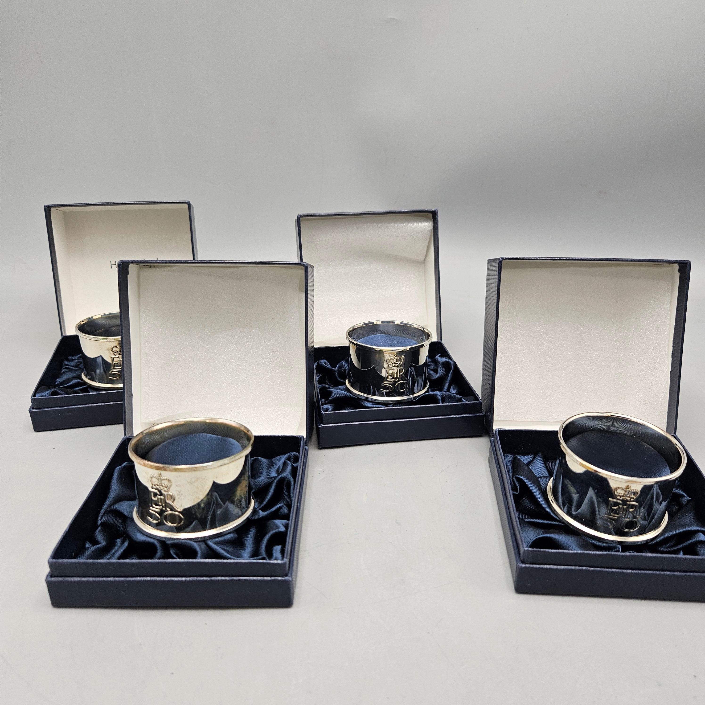 Set of Four Barking & Co English Sterling Silver Queen Elizabeth Golden Jubilee Napkin Rings