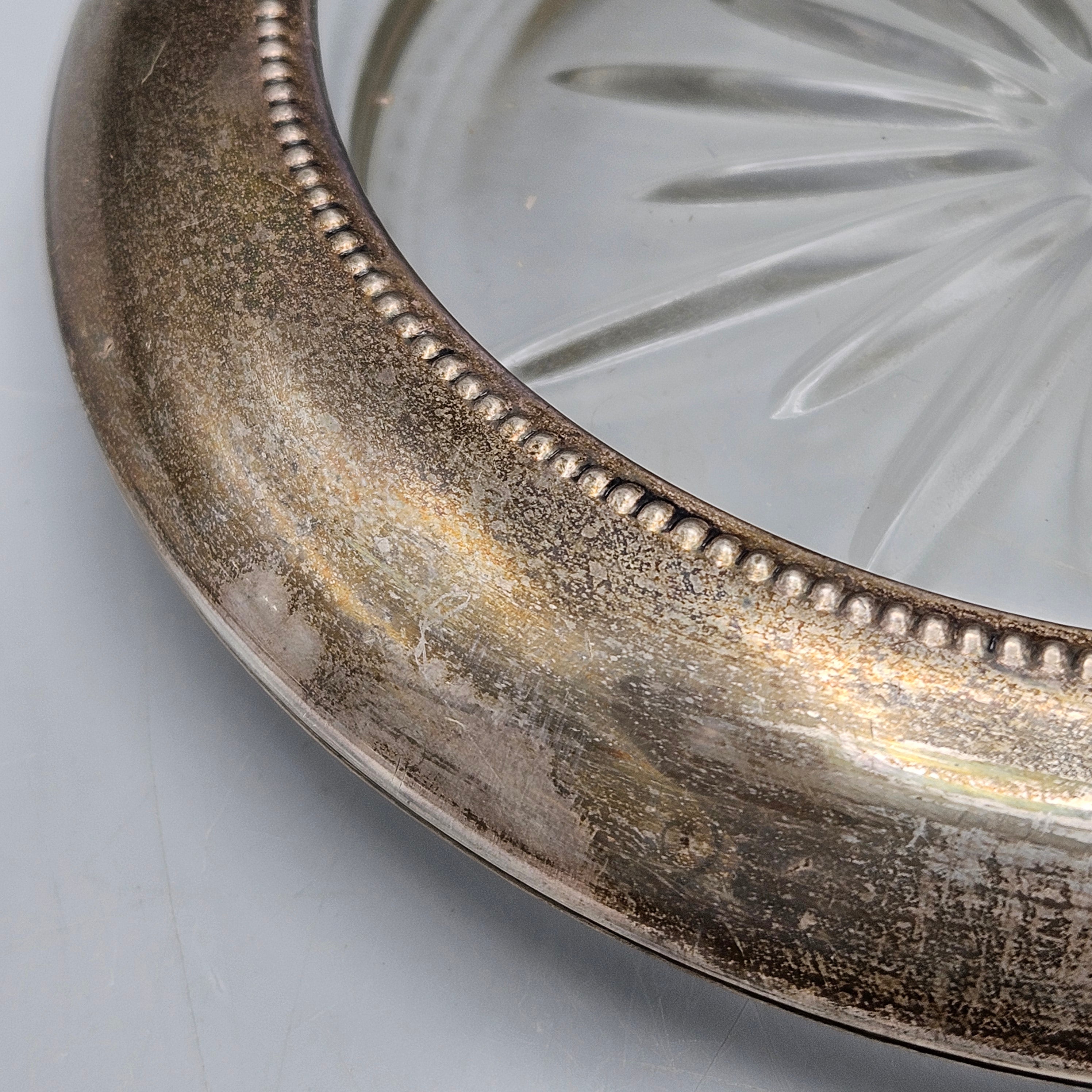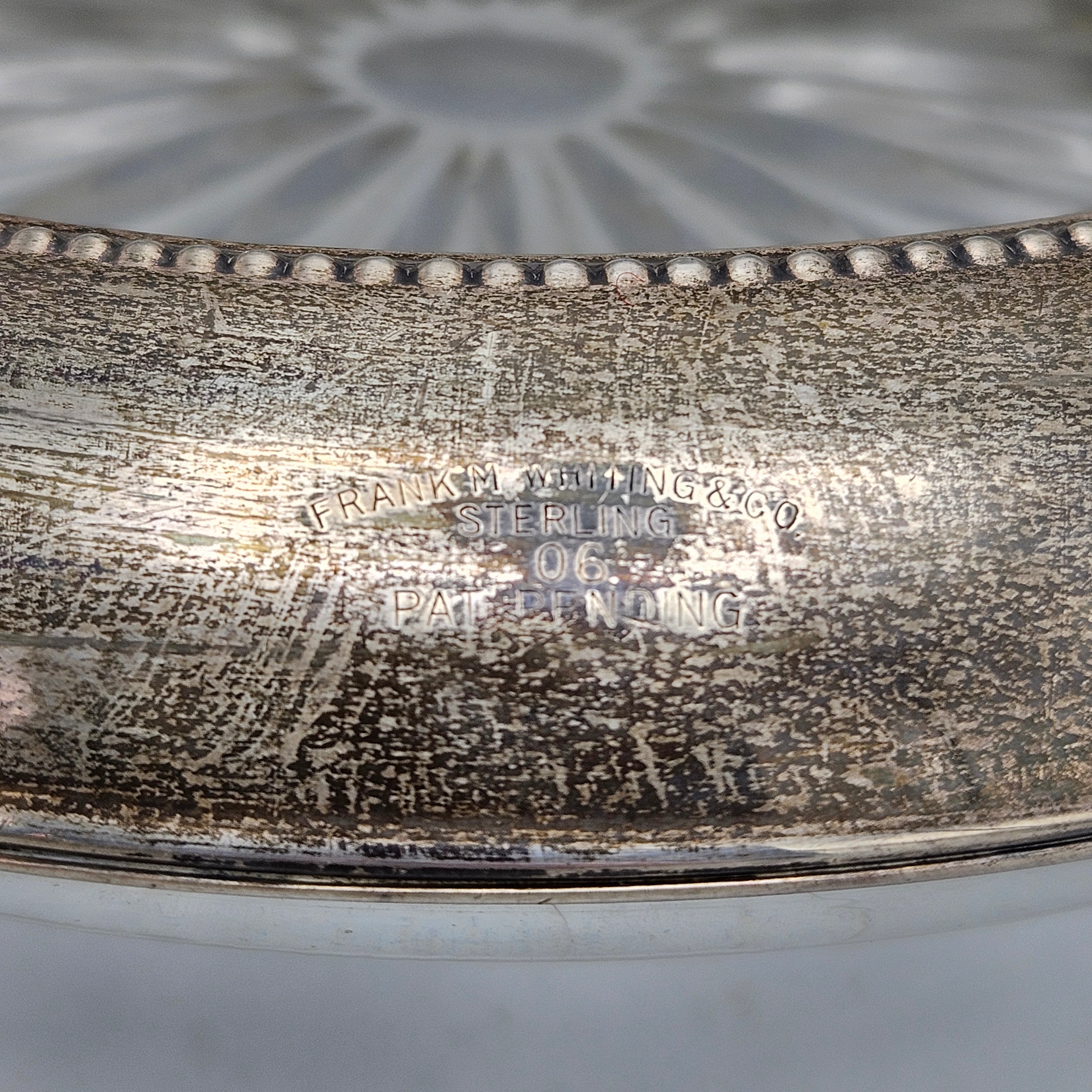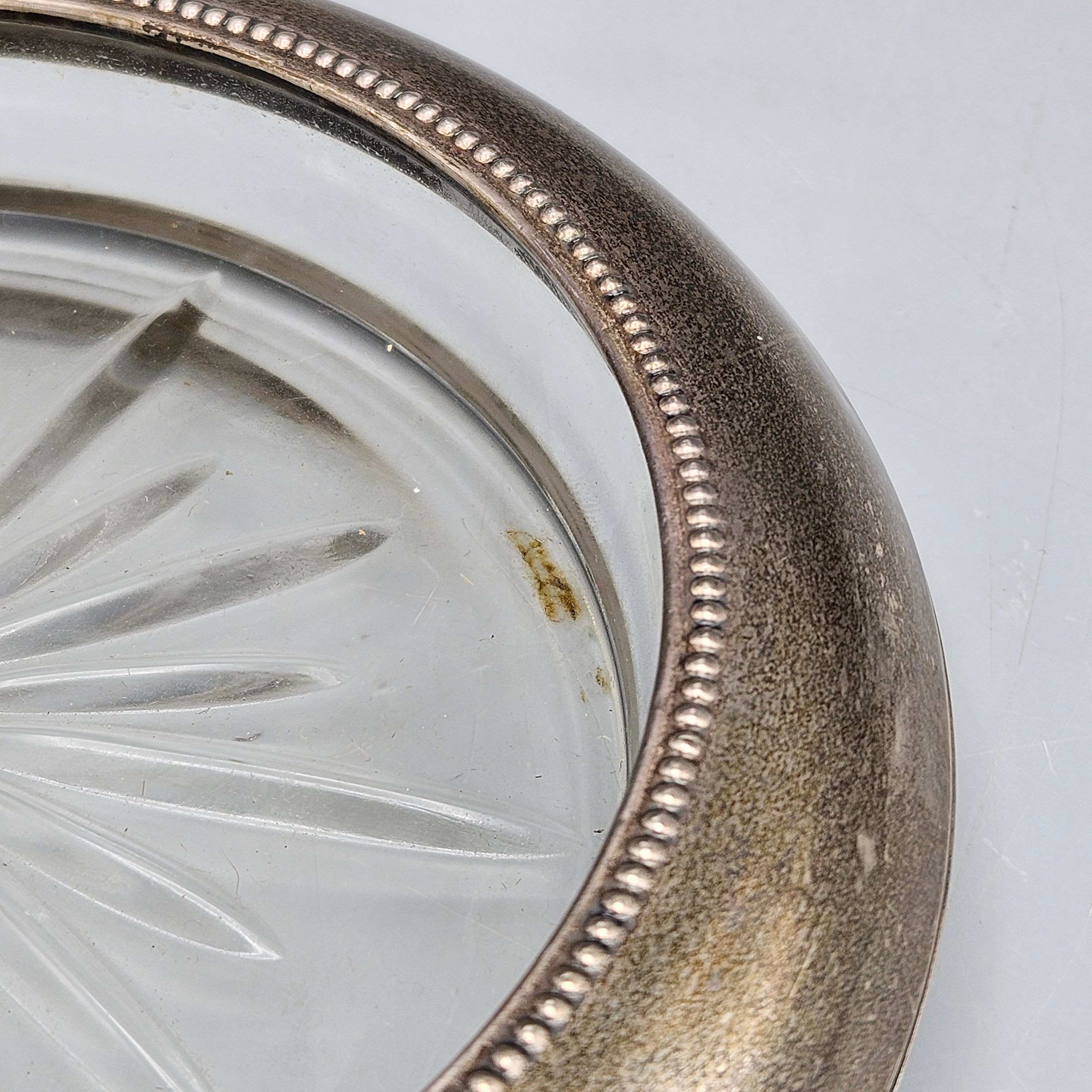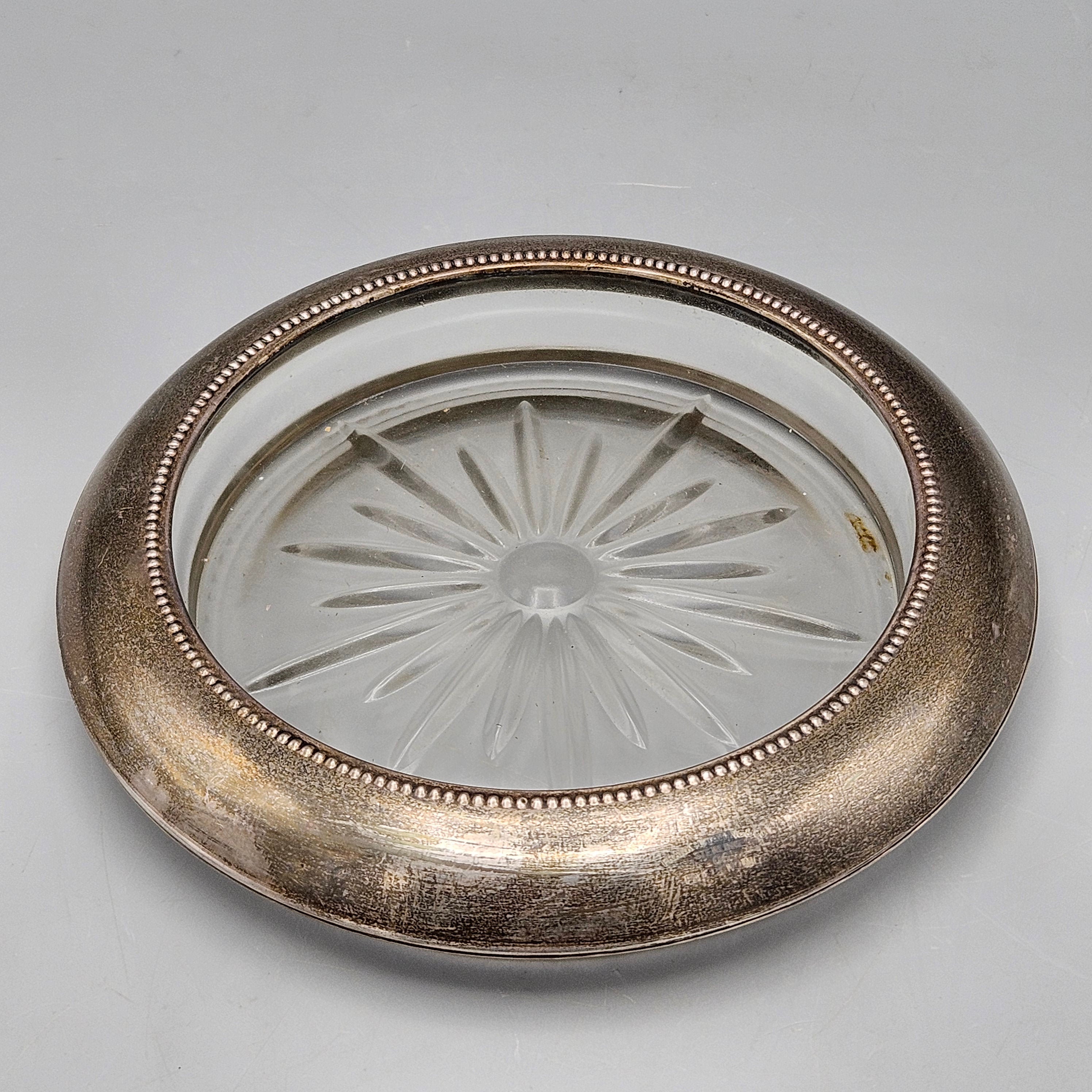 Vintage Whiting Sterling Silver Rimmed Crystal Bottle Coaster