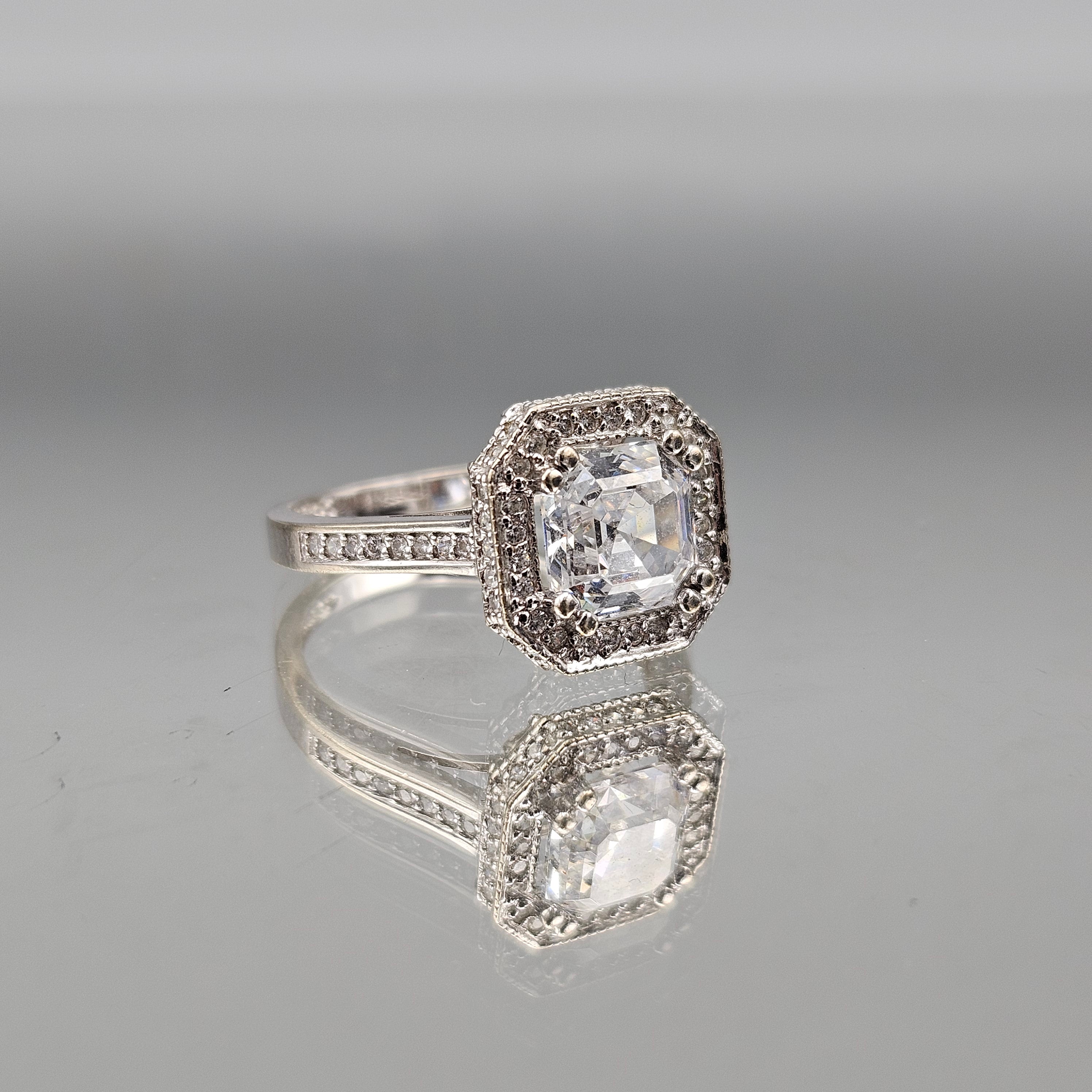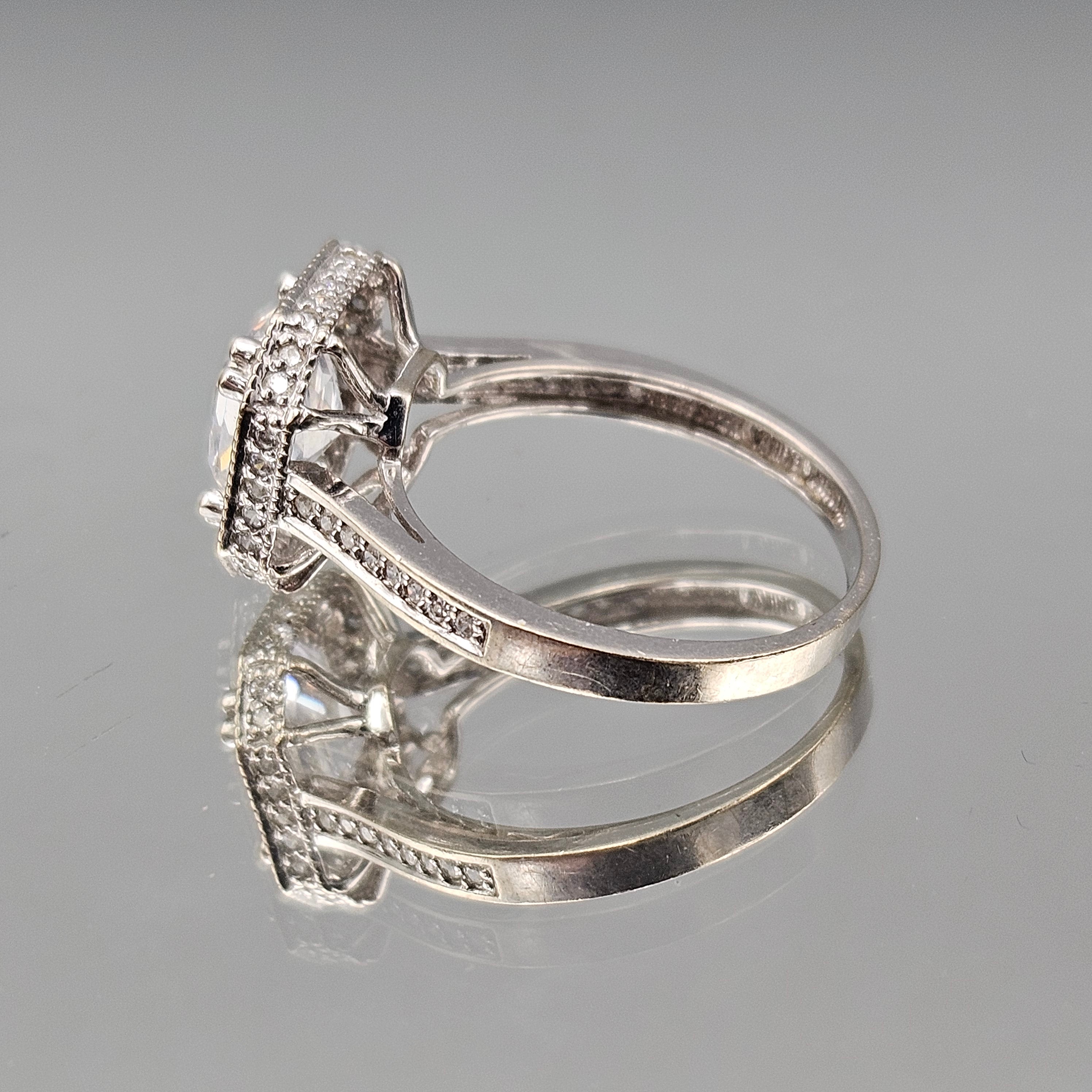 14K White Gold Art Deco CZ Stone Ring - SIze 7.25