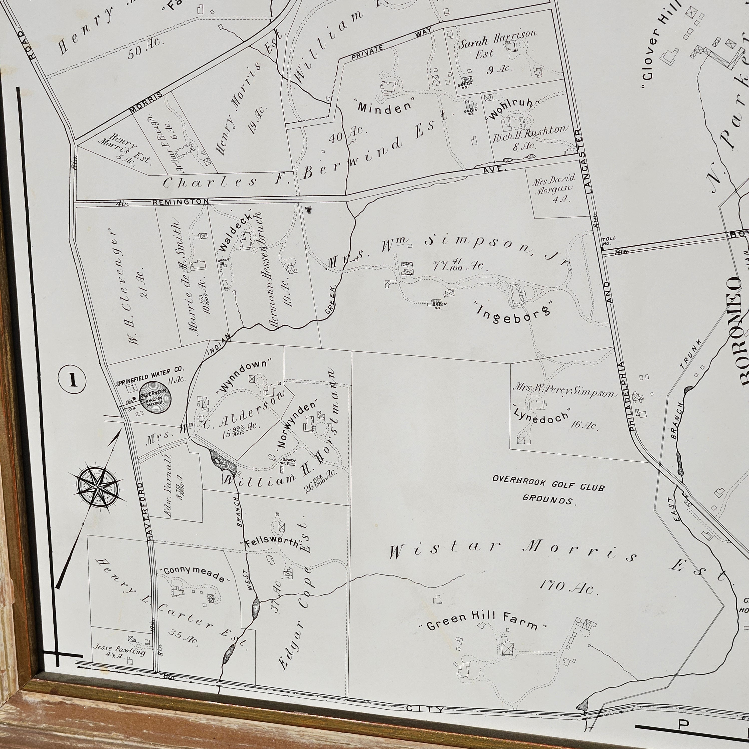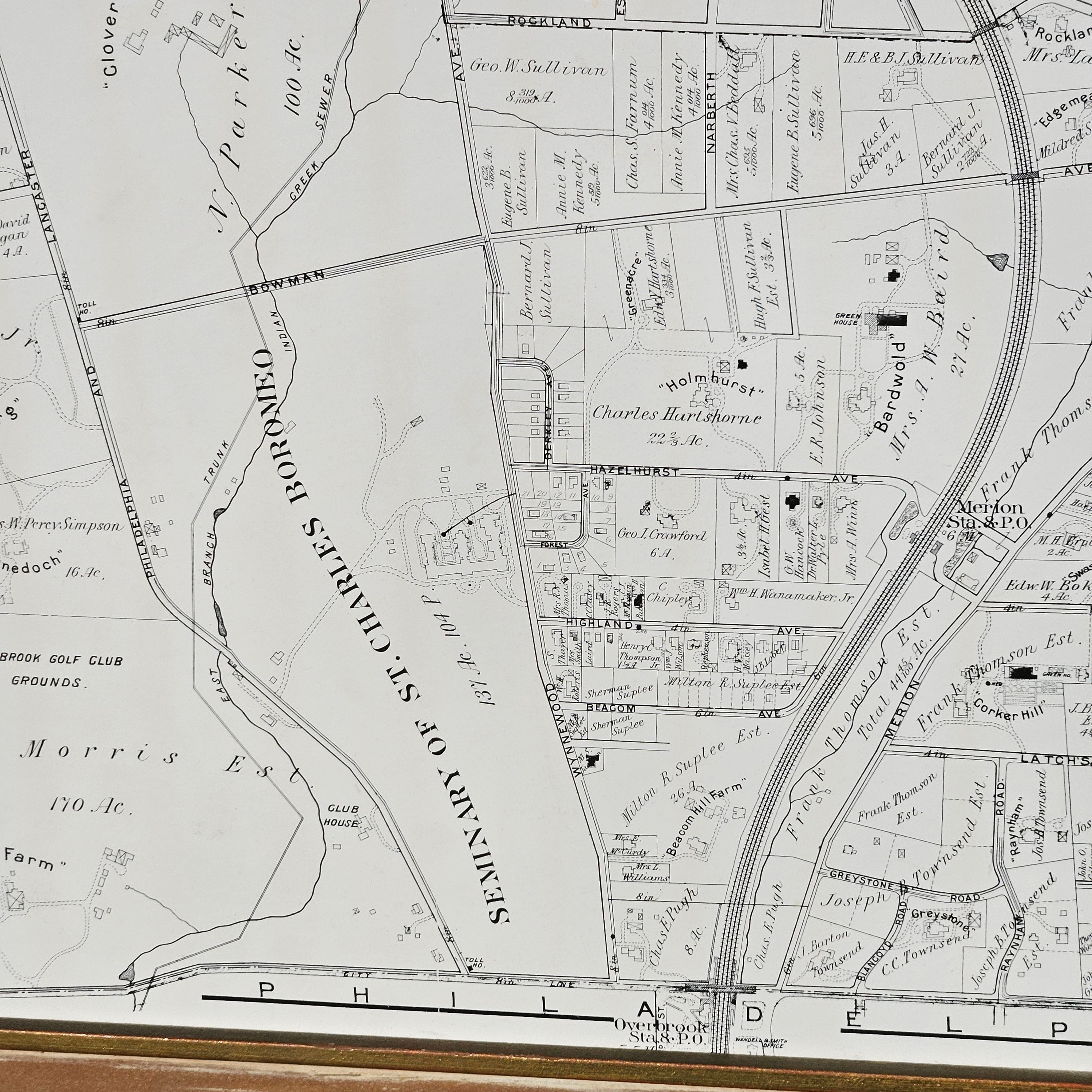 1908 AM Mueller Overbrook to Paoli Pennsylvania Main Line Map - Merion Station, Narberth, Wynnewood
