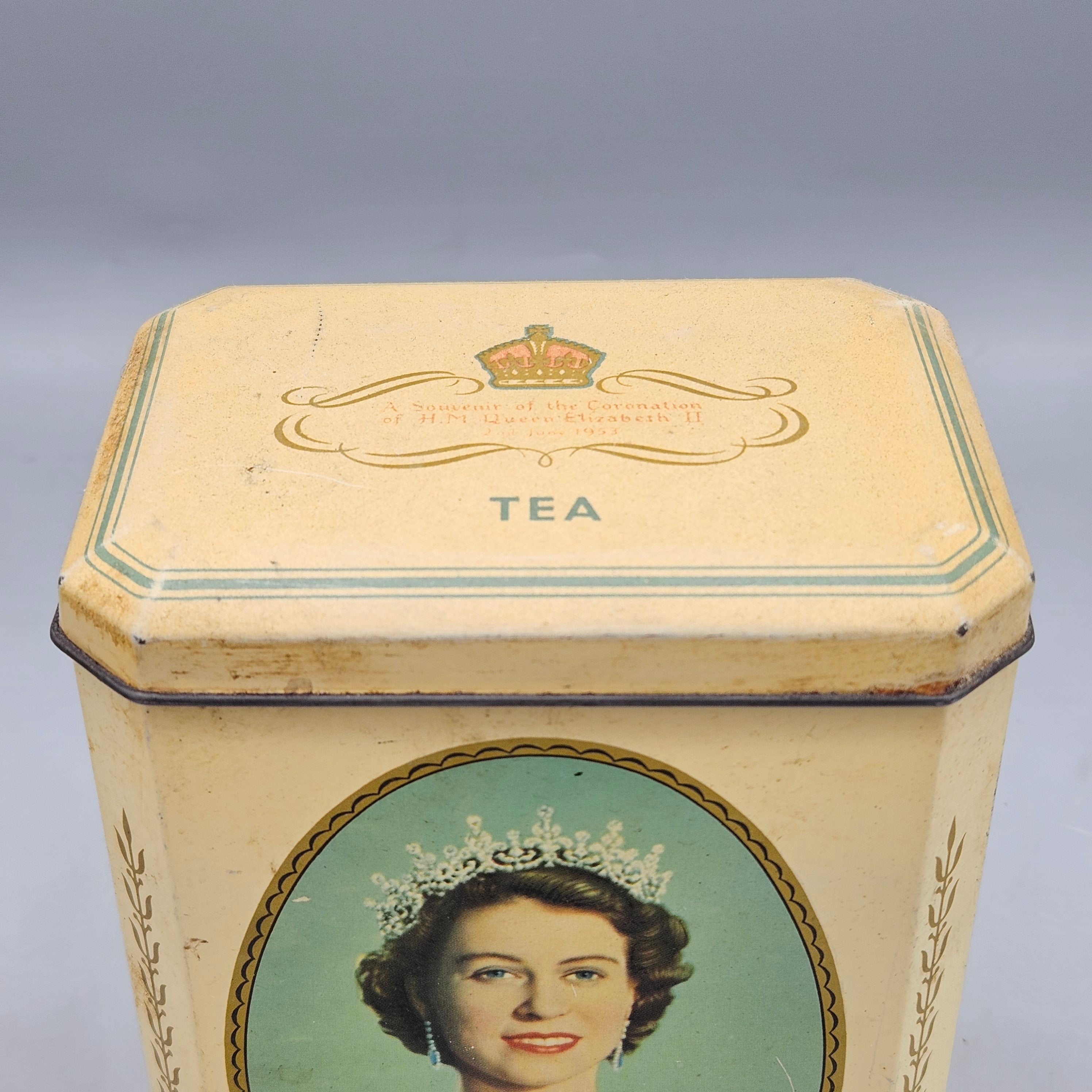 1953 Queen Elizabeth II Coronation Commemorative Tin Tea Caddy