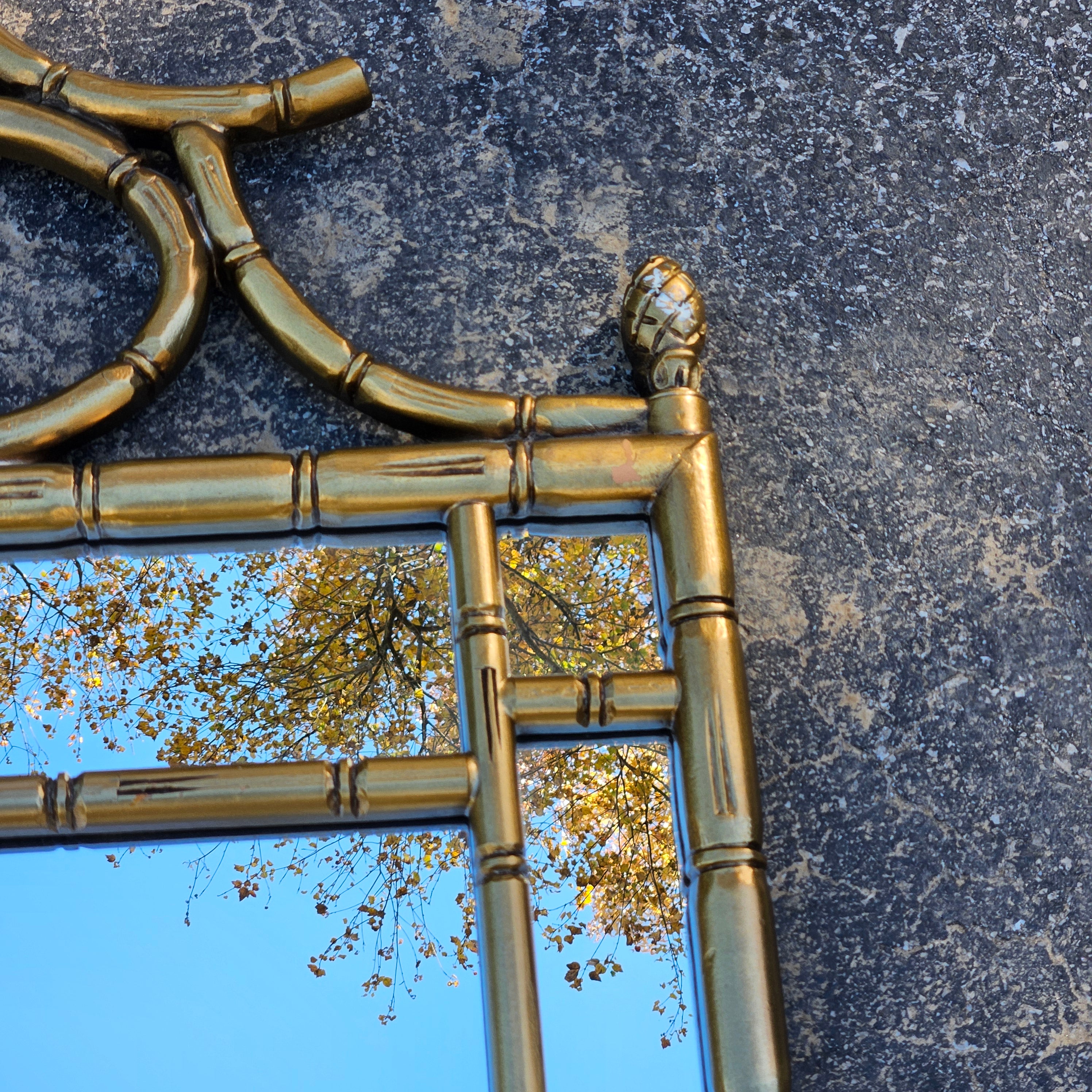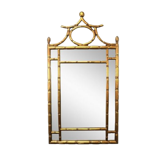 1970s Carved Regency Style Giltwood Italian Faux Bamboo Mirror