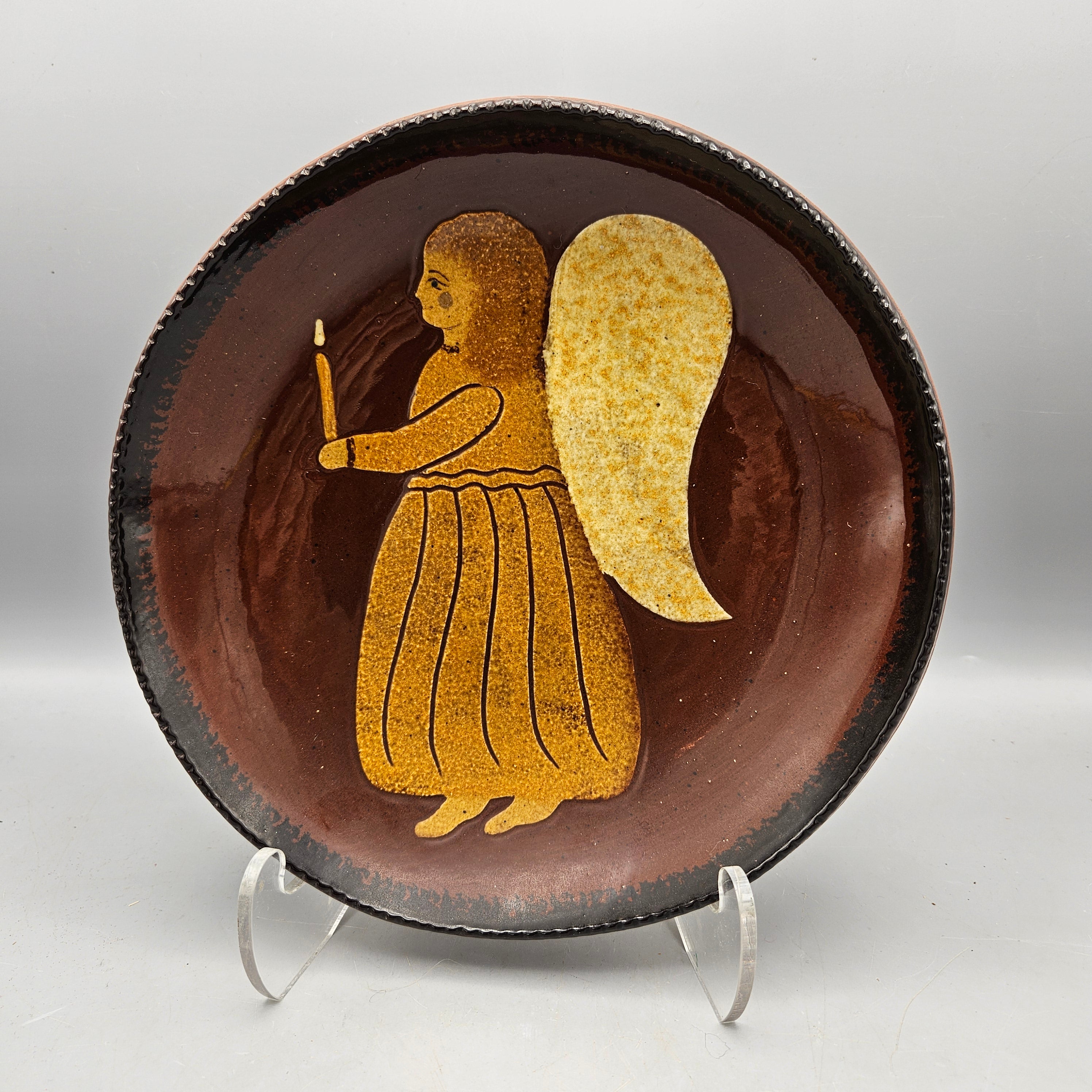 1998 Ned Foltz Redware Pottery Plate with Angel